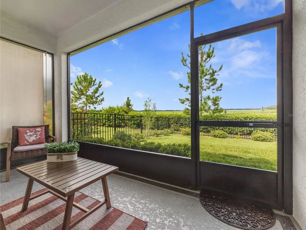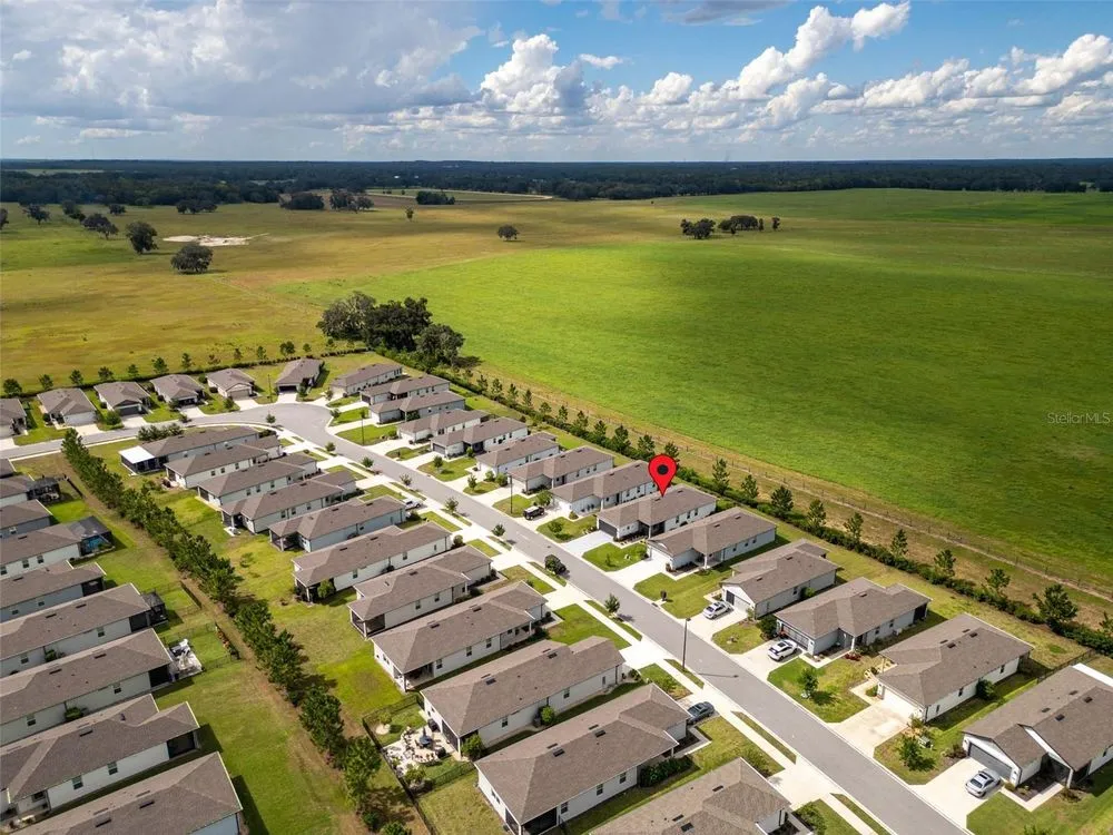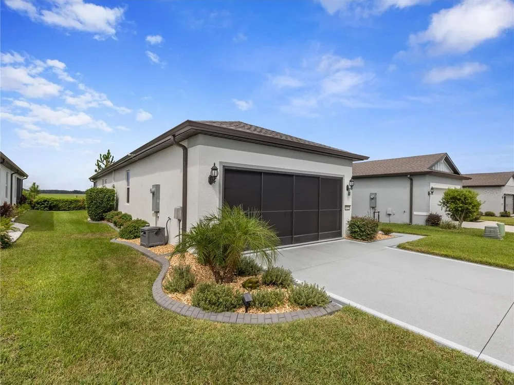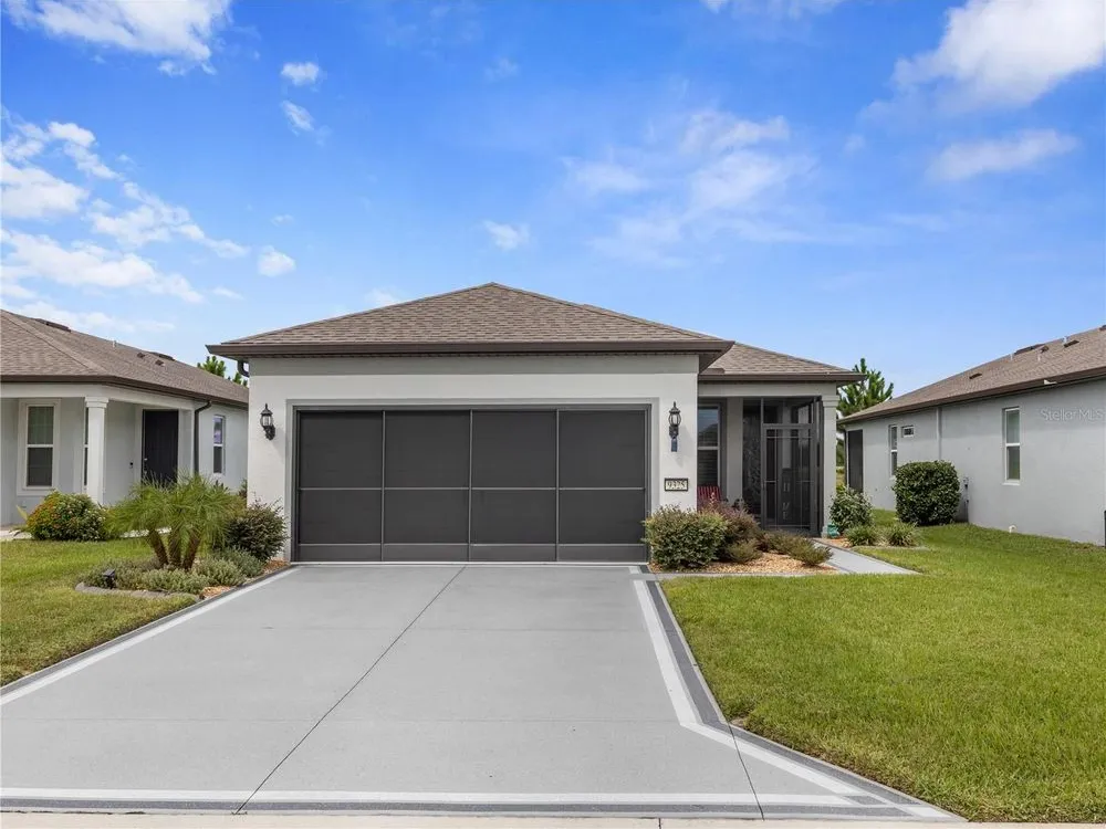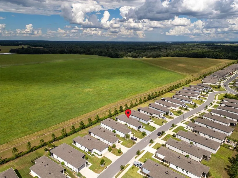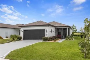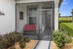 Welcome to this stunning Crestwood model in the highly sought-after 55+ community of Del Webb Stone Creek. This thoughtfully designed home features 2 bedrooms, 2 bathrooms, and a versatile flex room/office, perfect for your lifestyle needs. Step inside to find luxury vinyl flooring flowing seamlessly throughout, adding both style and durability. The gourmet kitchen and bathrooms boast granite countertops, while crown molding adds a touch of elegance throughout the living spaces. The primary suite offers a spa-like retreat with a walk-in tiled shower. Enjoy peaceful mornings and relaxing evenings from the screened-in lanai overlooking the beautiful pasture, or from the screened-in front porch. The fenced backyard provides additional privacy and functionality, perfect for pets or gardening. This home combines comfort, charm, and convenience in one of Ocala’s premier active adult communities.