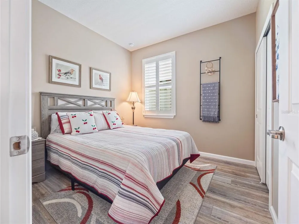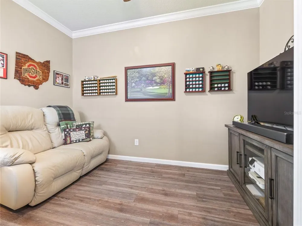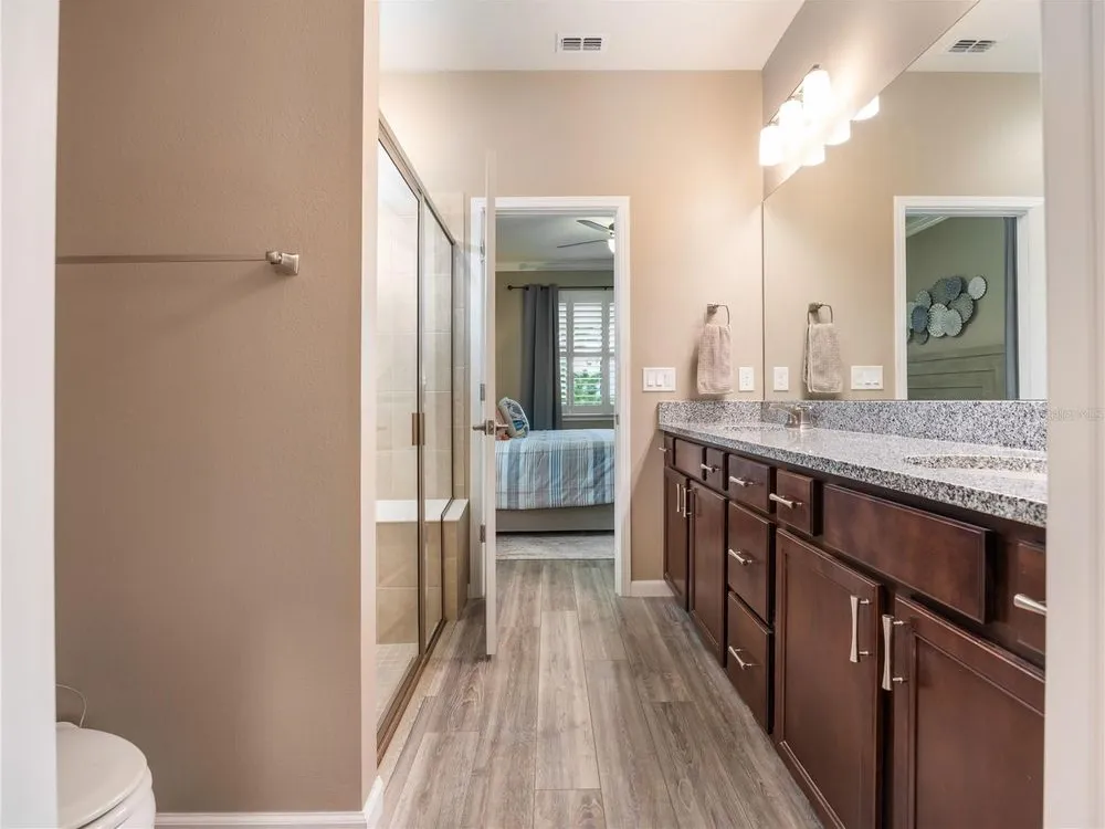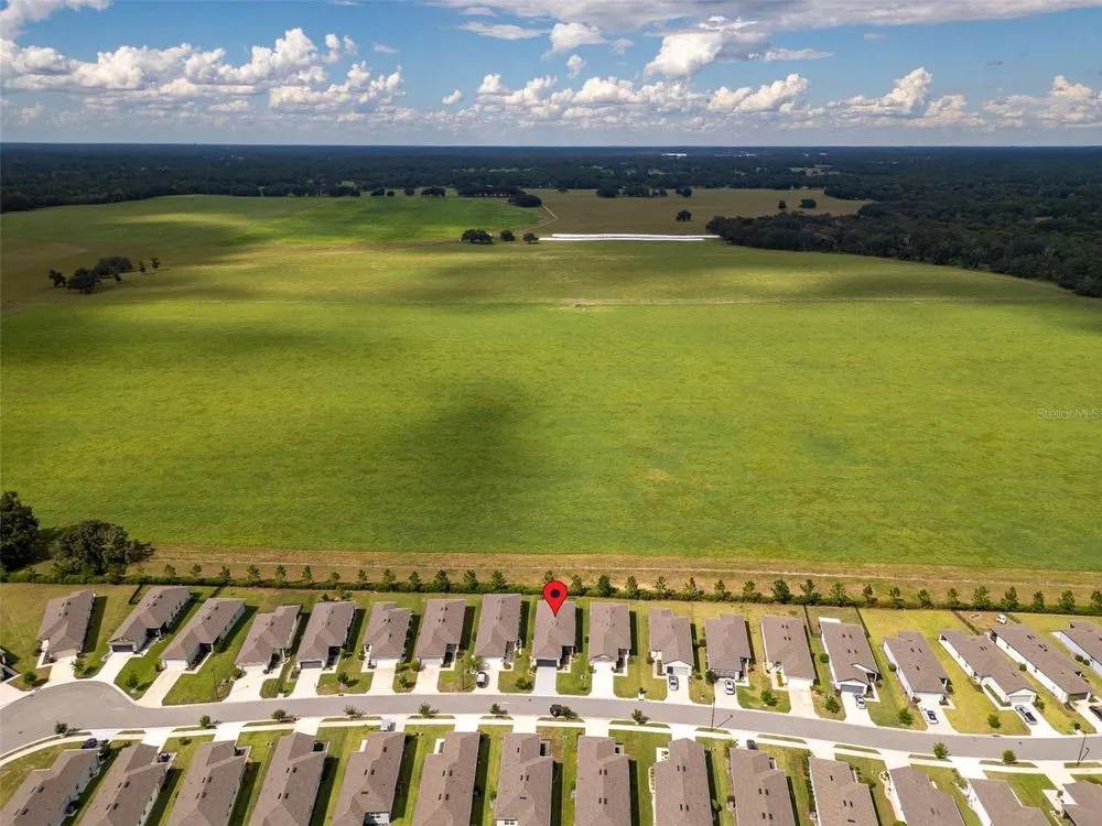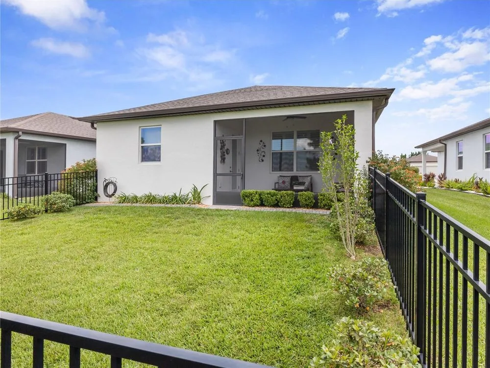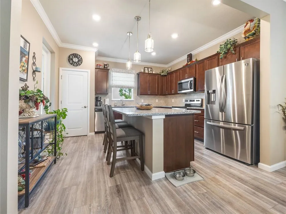 Welcome to this stunning Crestwood model in the highly sought-after 55+ community of Del Webb Stone Creek. This thoughtfully designed home features 2 bedrooms, 2 bathrooms, and a versatile flex room/office, perfect for your lifestyle needs. Step inside to find luxury vinyl flooring flowing seamlessly throughout, adding both style and durability. The gourmet kitchen and bathrooms boast granite countertops, while crown molding adds a touch of elegance throughout the living spaces. The primary suite offers a spa-like retreat with a walk-in tiled shower. Enjoy peaceful mornings and relaxing evenings from the screened-in lanai overlooking the beautiful pasture, or from the screened-in front porch. The fenced backyard provides additional privacy and functionality, perfect for pets or gardening. This home combines comfort, charm, and convenience in one of Ocala’s premier active adult communities.