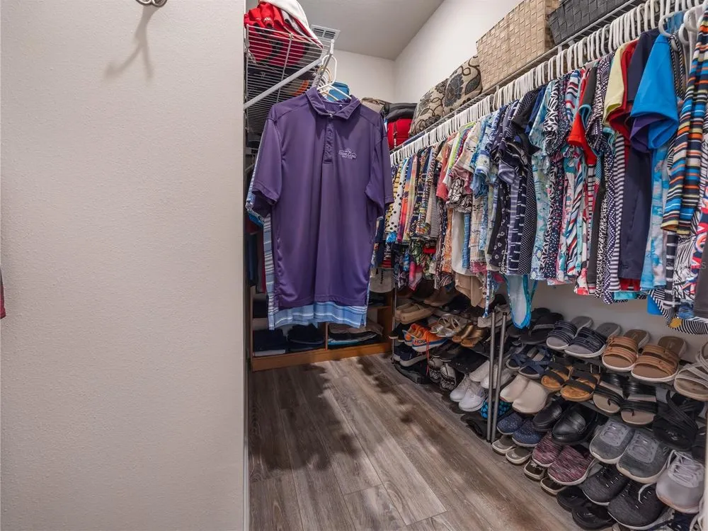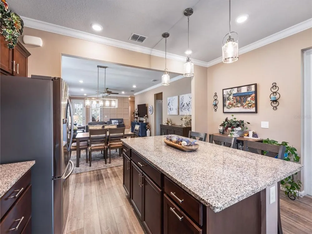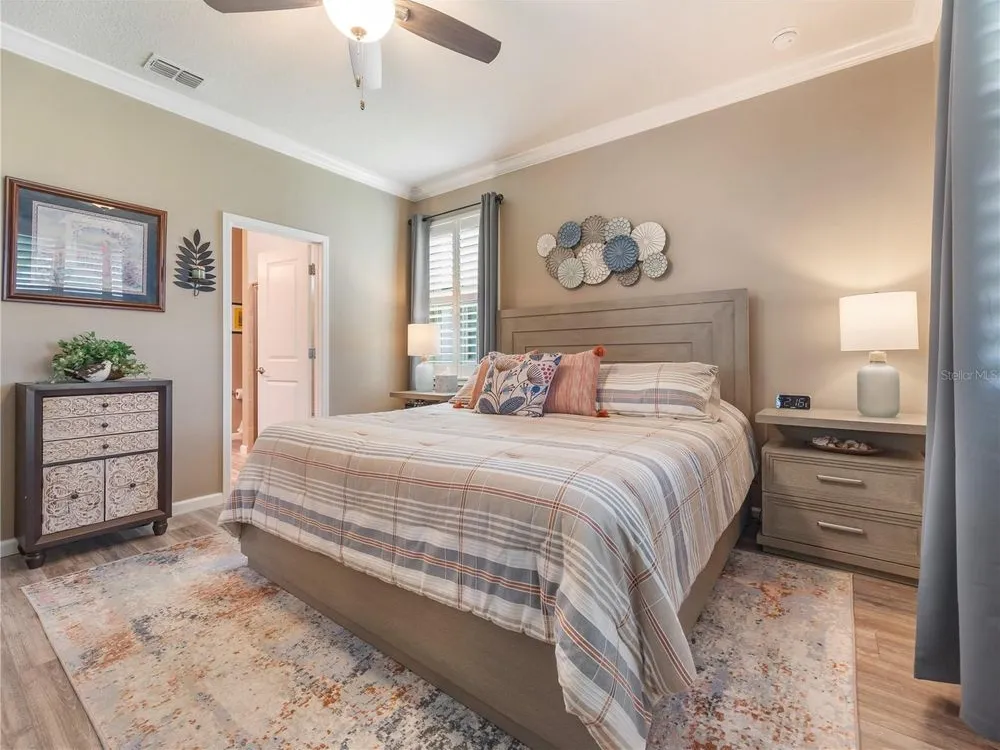 - Ceiling Fan(s), Crown Molding, Kitchen/Family Room Combo, Living/Dining Room, Open Floorplan, Main Level Primary, Stone Counters, Thermostat, Walk-In Closet(s)