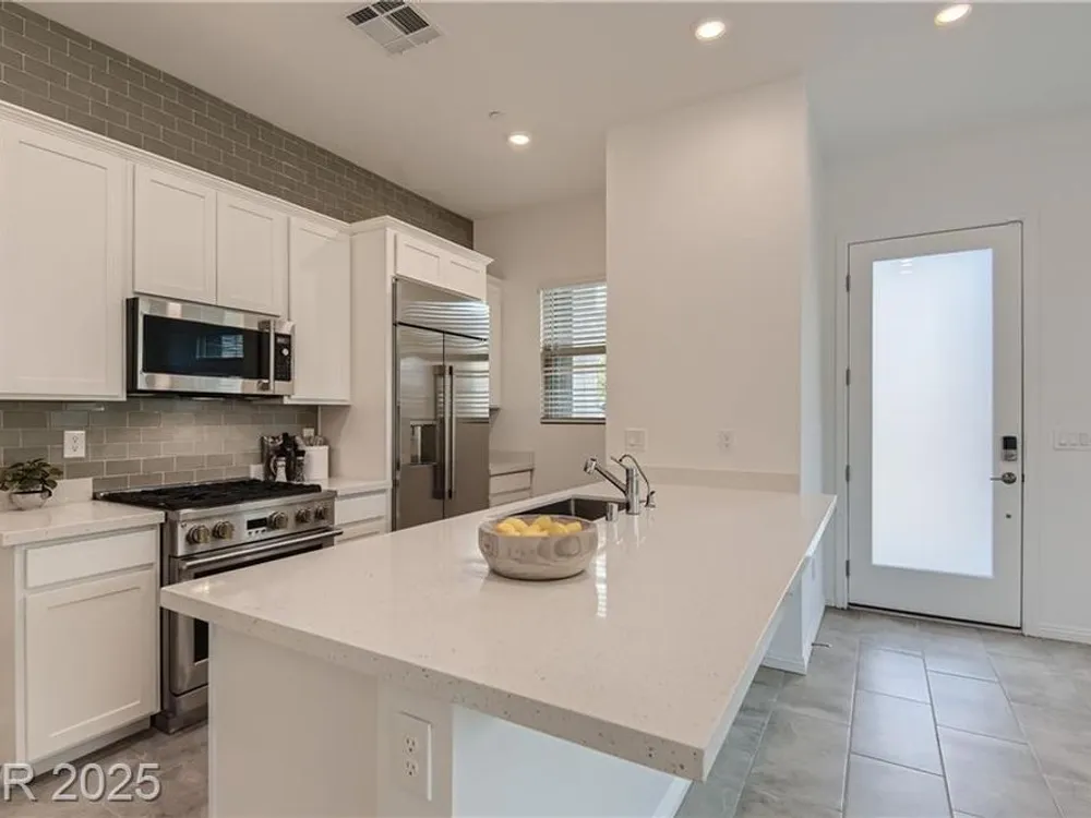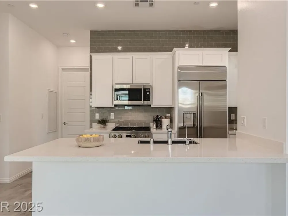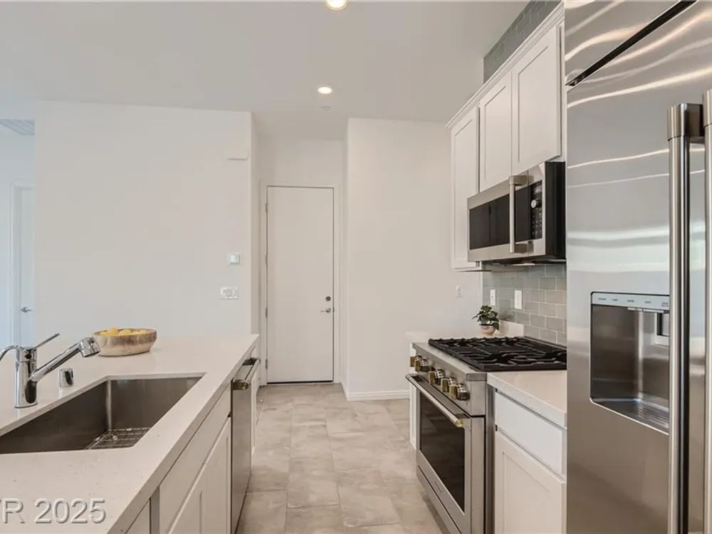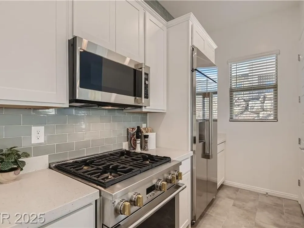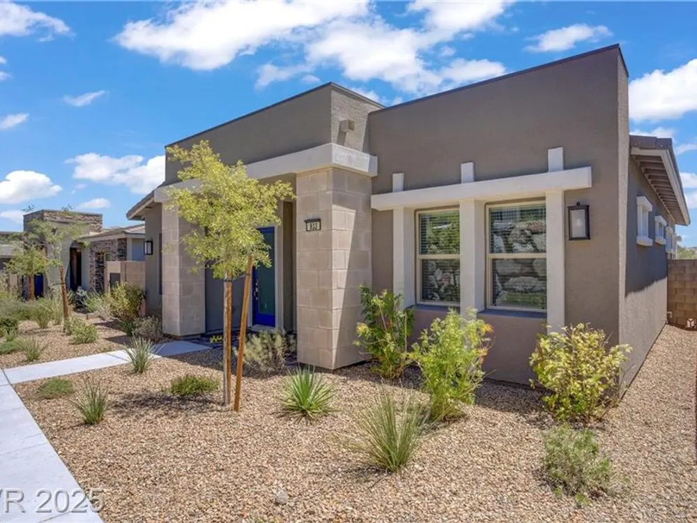 Stunning single story home located in the beautiful 55+ guard gated community of Heritage at Stonebridge in Summerlin. This amazing home boasts modern luxury at its finest, featuring smart home capability, white cabinets, quartz countertops, contemporary tile flooring, GE Monogram stainless steel appliances, custom floor-to-ceiling backsplash in kitchen & laundry room, custom primary closet with additional storage, private gated courtyard, full size street w/full size driveway and more! The wonderful state of the art community amenities include pools/spas, pickleball courts, barbecue area, fitness center and more! Minutes from Downtown Summerlin, Red Rock, fine dining, parks and all that Summerlin has to offer!