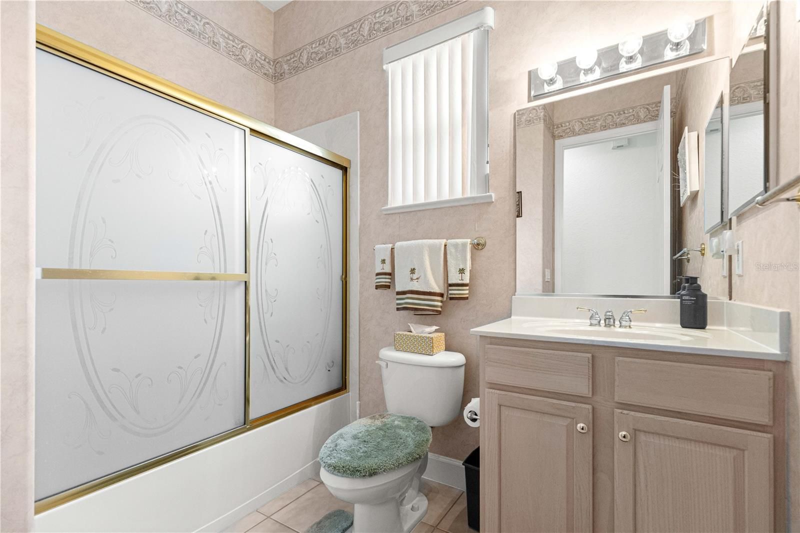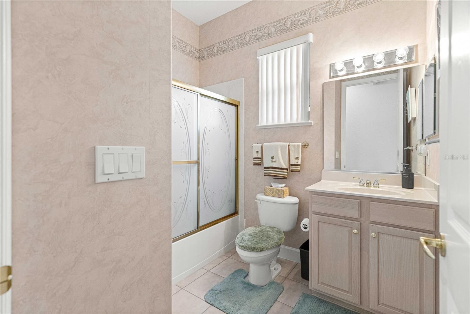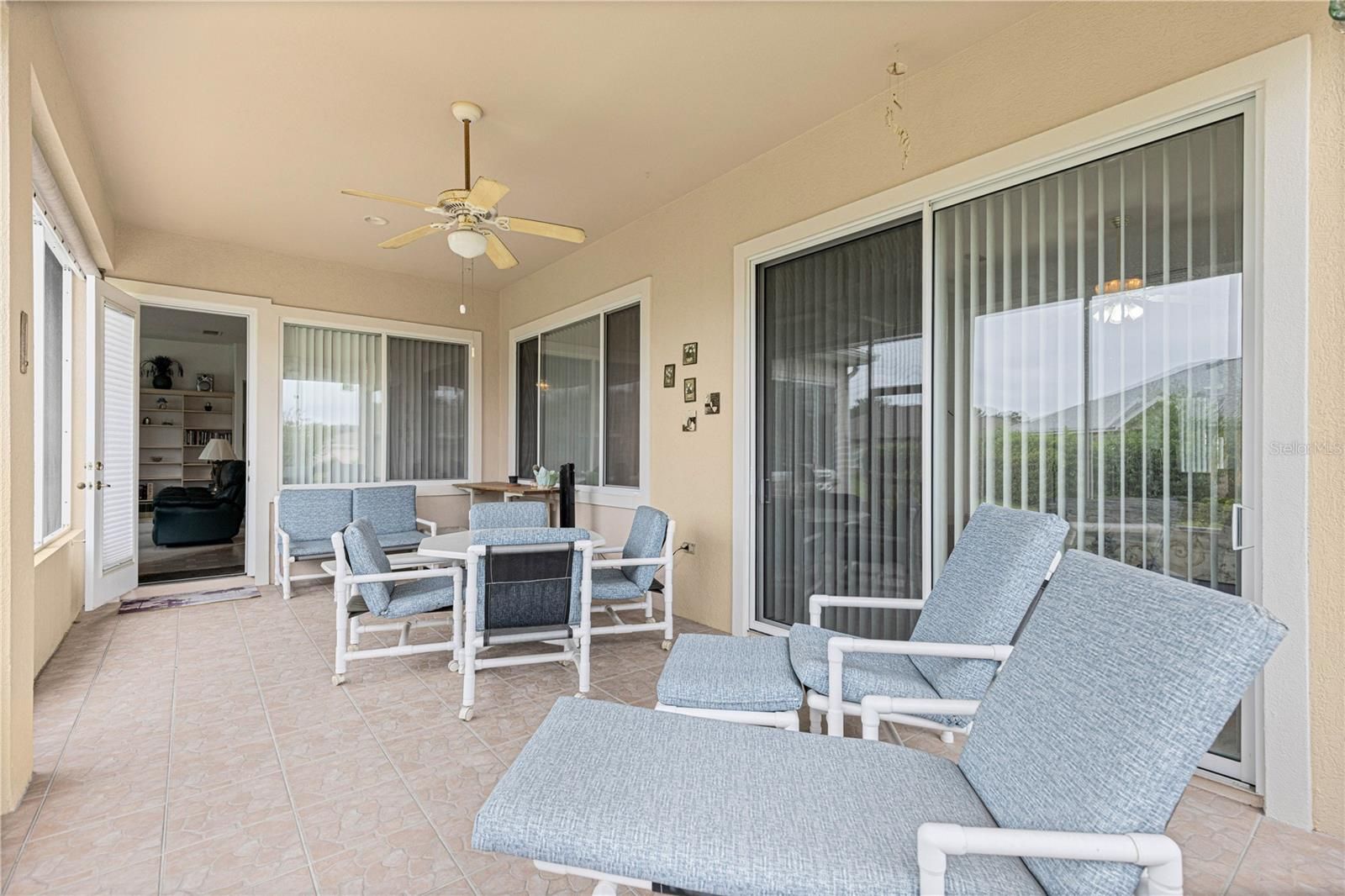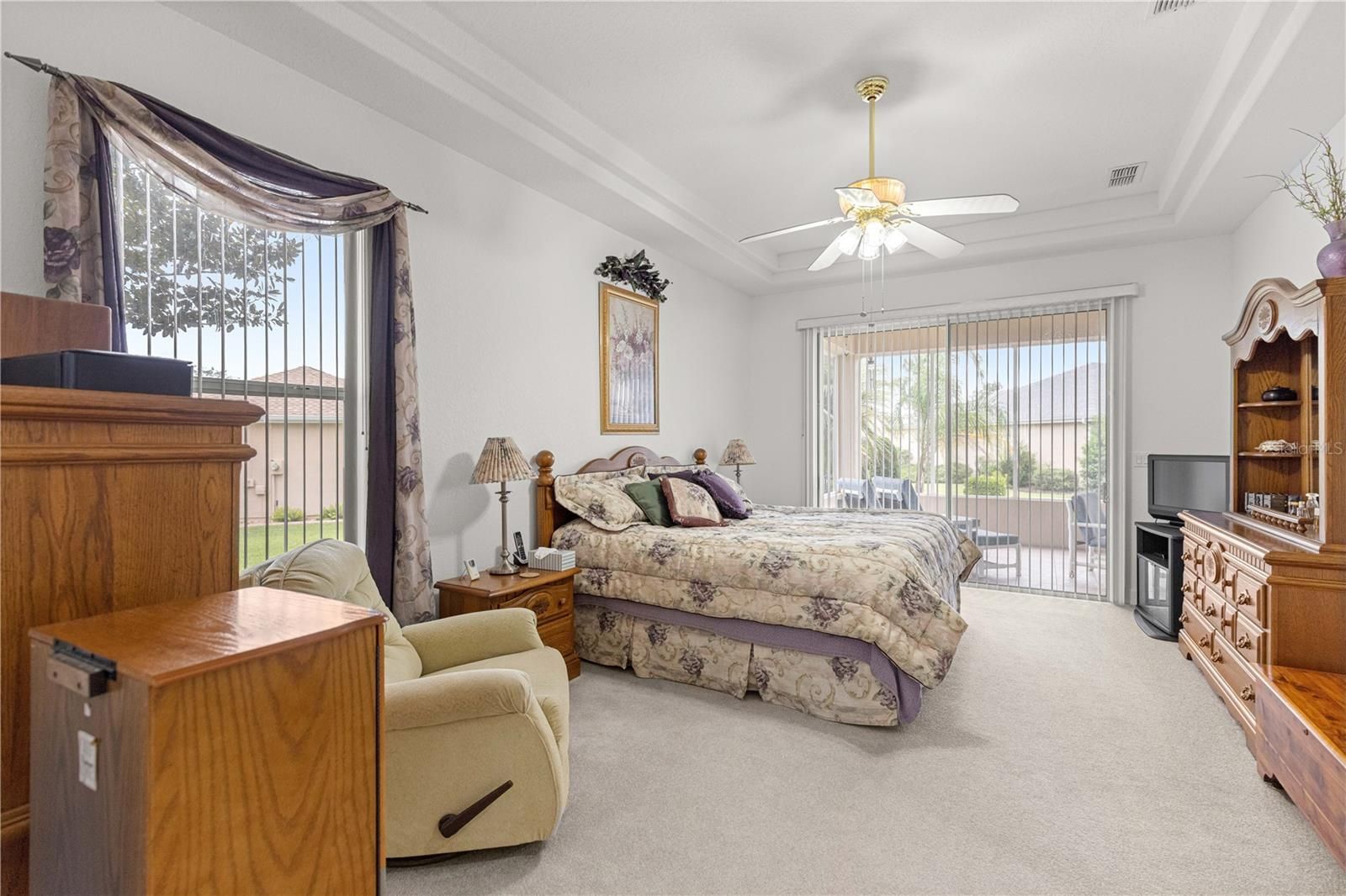 Luxurious Hampton model boasts French glass double French doors leading into a spacious formal dining room and formal living room. Large gourmet kitchen with skylight and built-in oven and gas stove top, open floor plan with great room. Three-bedroom split floor plan, one of the guest bedrooms has a built-in desk area. Primary bedroom has tray ceilings and primary bath is roomy with garden tub and shower, double sinks and window. Inside laundry room with sink and extra cabinets with countertop. All of the doors in this model are 9 ft doors with high ceilings making this home look grand. The 1/2 bath off of the entry is a plus not found in many of the community models. Garage is extended in length and width giving space for a workshop or golf cart parking. Electric screen on garage door. Driveway and sidewalk are brick pavers adding to the upgraded curb appeal of this spacious home with beautiful landscaping. Double sized lanai is screened with a large exterior patio that has exterior piping for a gas grill. A real plus this home comes with a well for irrigation. Roof re-shingled 2014 and HVAC replaced 2014. Home is centrally located in the St. Andrews section, close to the clubhouse, pro-shop, restaurant with easy access to main Del Webb Blvd with cart path and sidewalk. The Del Webb community is loaded with amenities and activities to enjoy your new lifestyle. Furniture available separately. Call for a private showing, a must see.