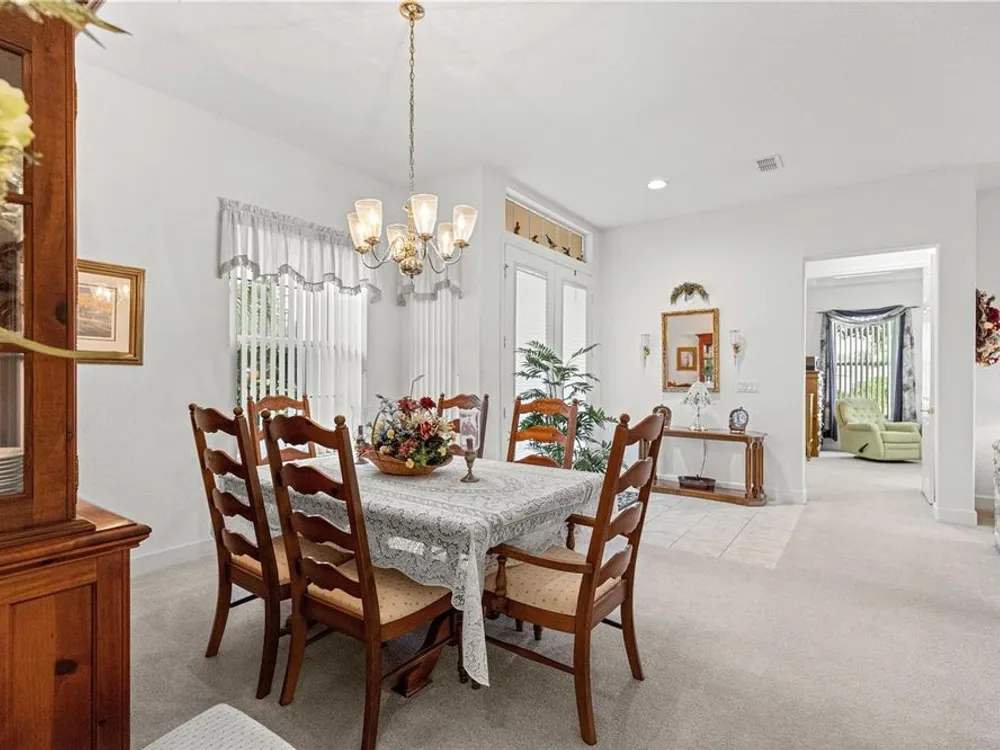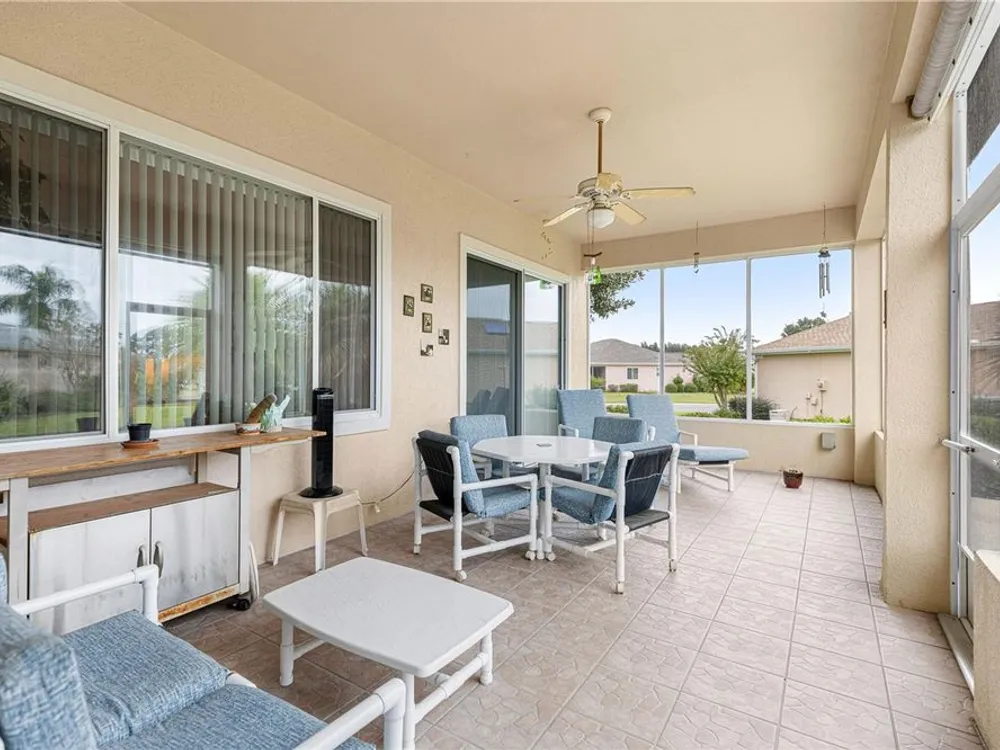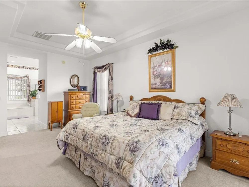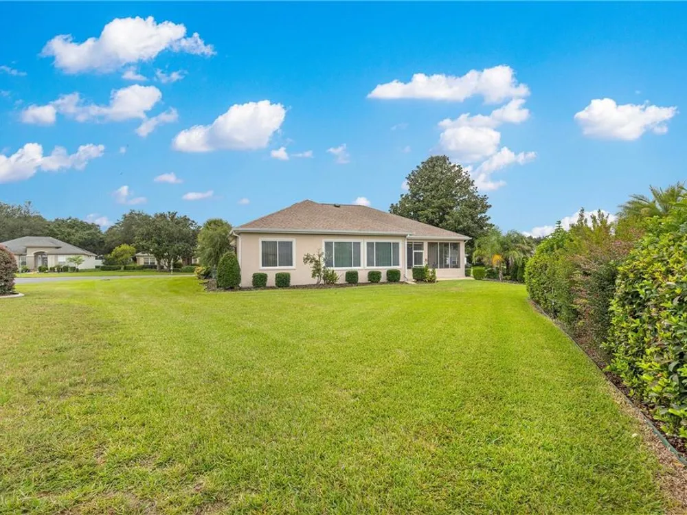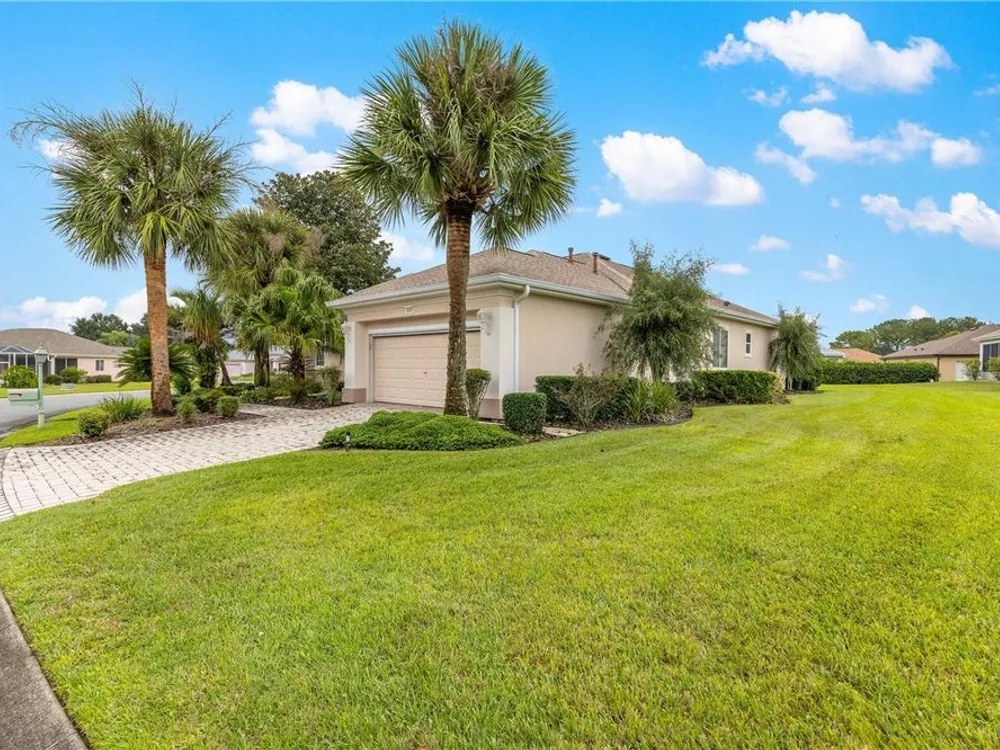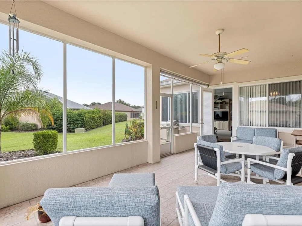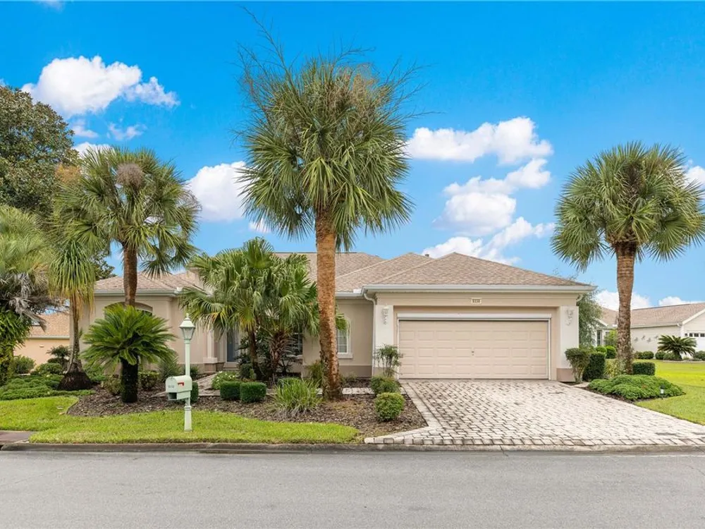 Luxurious Hampton model boasts French glass double French doors leading into a spacious formal dining room and formal living room. Large gourmet kitchen with skylight and built-in oven and gas stove top, open floor plan with great room. Three-bedroom split floor plan, one of the guest bedrooms has a built-in desk area. Primary bedroom has tray ceilings and primary bath is roomy with garden tub and shower, double sinks and window. Inside laundry room with sink and extra cabinets with countertop. All of the doors in this model are 9 ft doors with high ceilings making this home look grand. The 1/2 bath off of the entry is a plus not found in many of the community models. Garage is extended in length and width giving space for a workshop or golf cart parking. Electric screen on garage door. Driveway and sidewalk are brick pavers adding to the upgraded curb appeal of this spacious home with beautiful landscaping. Double sized lanai is screened with a large exterior patio that has exterior piping for a gas grill. A real plus this home comes with a well for irrigation. Roof re-shingled 2014 and HVAC replaced 2014. Home is centrally located in the St. Andrews section, close to the clubhouse, pro-shop, restaurant with easy access to main Del Webb Blvd with cart path and sidewalk. The Del Webb community is loaded with amenities and activities to enjoy your new lifestyle. Call for a private showing, a must see.