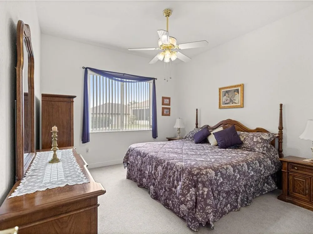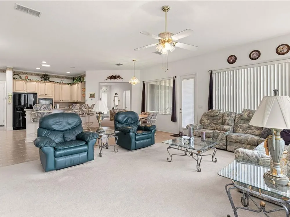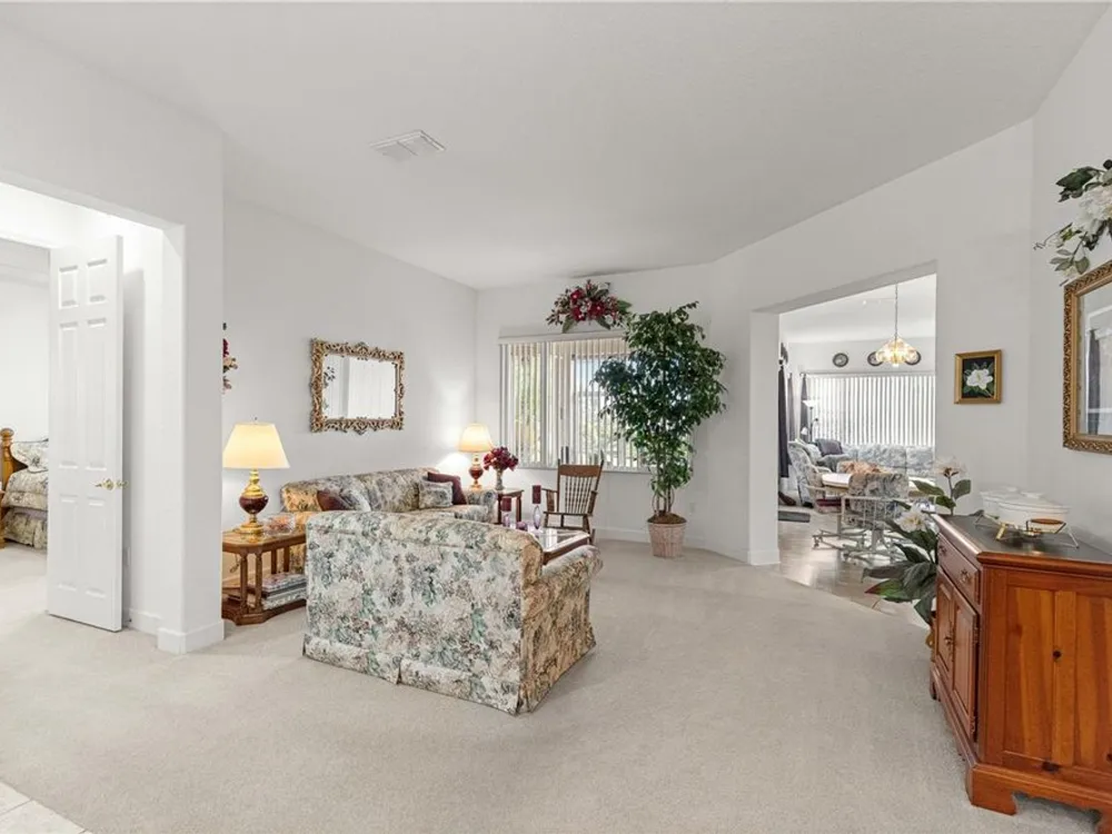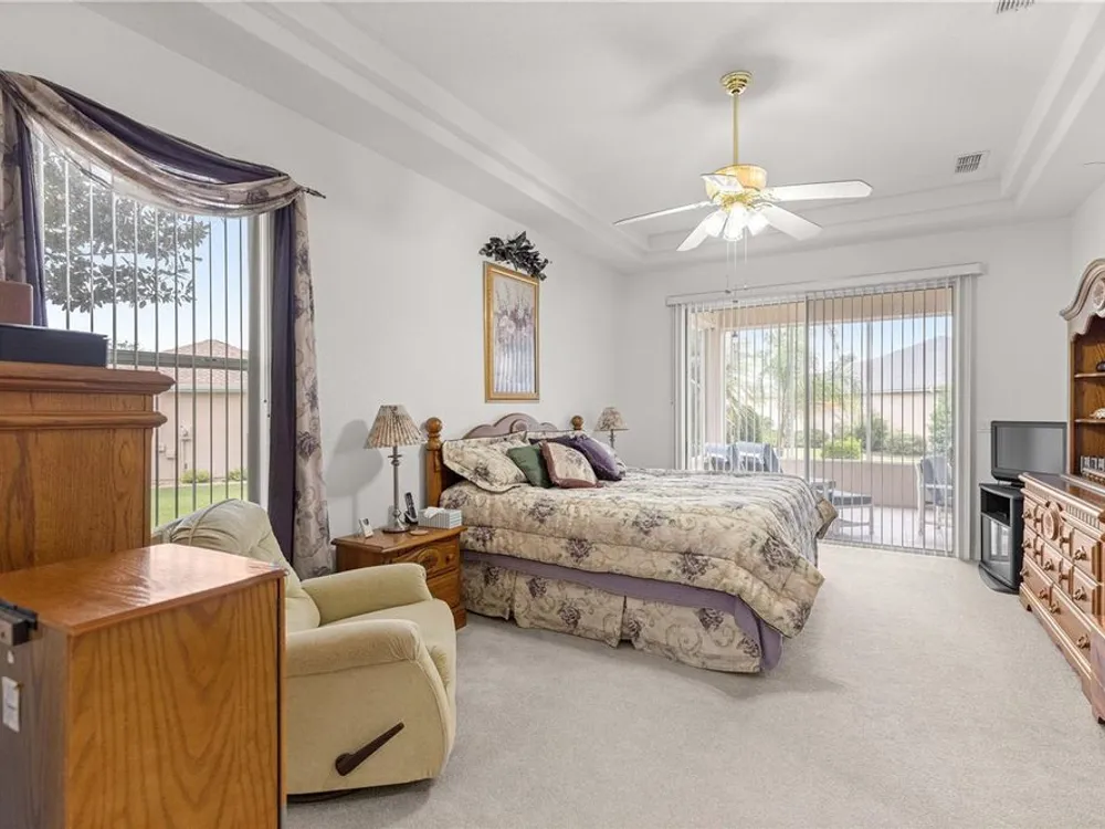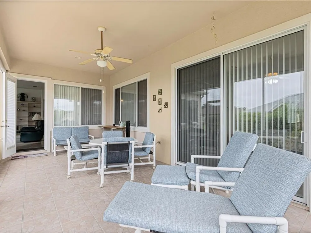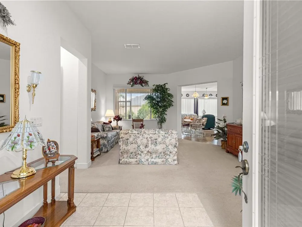 Luxurious Hampton model boasts French glass double French doors leading into a spacious formal dining room and formal living room. Large gourmet kitchen with skylight and built-in oven and gas stove top, open floor plan with great room. Three-bedroom split floor plan, one of the guest bedrooms has a built-in desk area. Primary bedroom has tray ceilings and primary bath is roomy with garden tub and shower, double sinks and window. Inside laundry room with sink and extra cabinets with countertop. All of the doors in this model are 9 ft doors with high ceilings making this home look grand. The 1/2 bath off of the entry is a plus not found in many of the community models. Garage is extended in length and width giving space for a workshop or golf cart parking. Electric screen on garage door. Driveway and sidewalk are brick pavers adding to the upgraded curb appeal of this spacious home with beautiful landscaping. Double sized lanai is screened with a large exterior patio that has exterior piping for a gas grill. A real plus this home comes with a well for irrigation. Roof re-shingled 2014 and HVAC replaced 2014. Home is centrally located in the St. Andrews section, close to the clubhouse, pro-shop, restaurant with easy access to main Del Webb Blvd with cart path and sidewalk. The Del Webb community is loaded with amenities and activities to enjoy your new lifestyle. Call for a private showing, a must see.