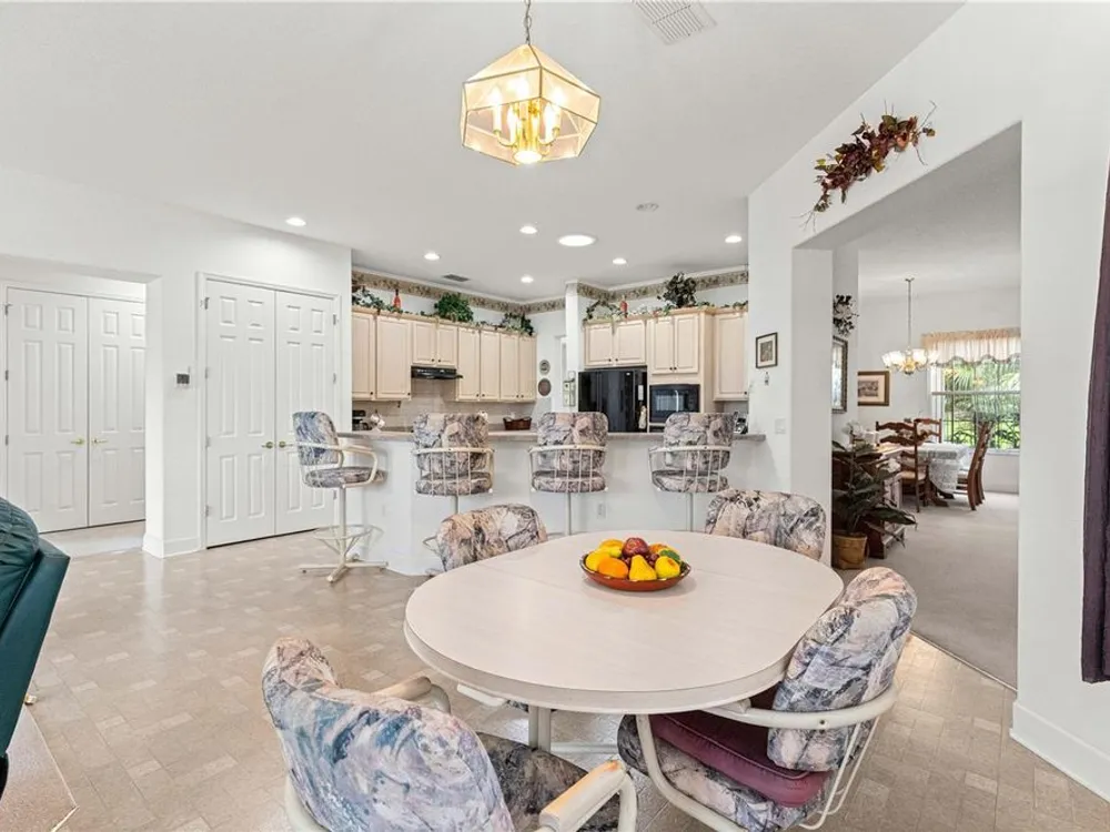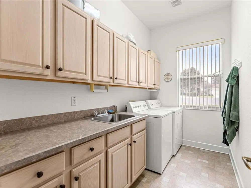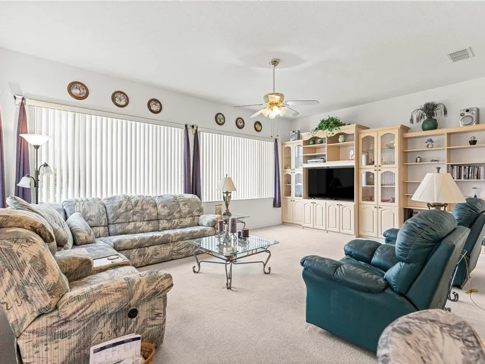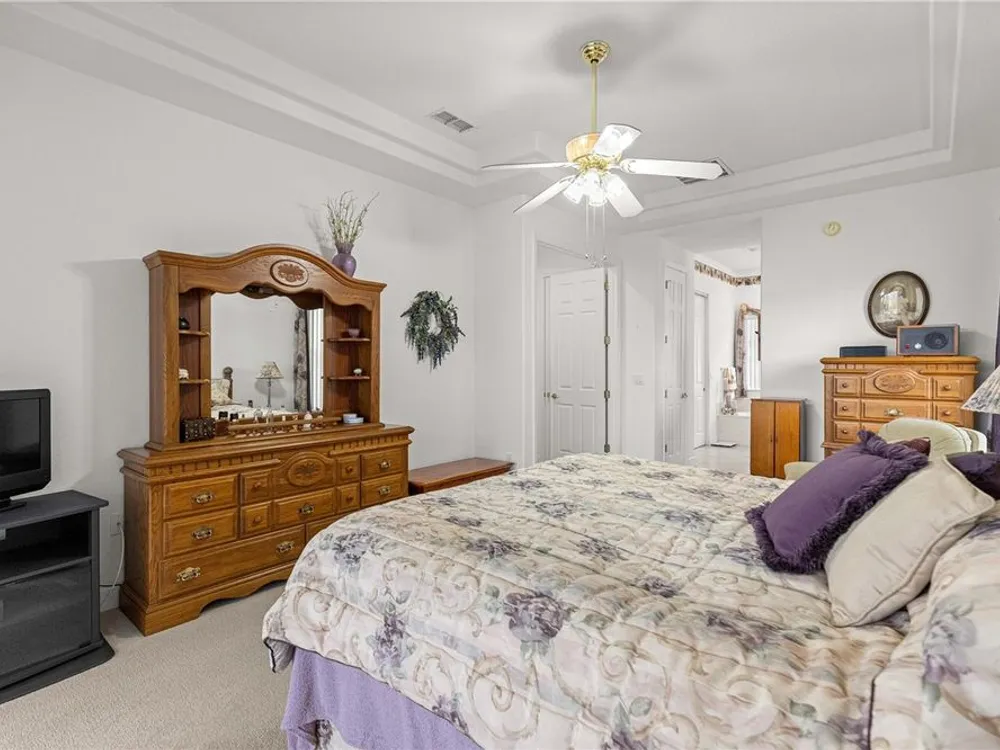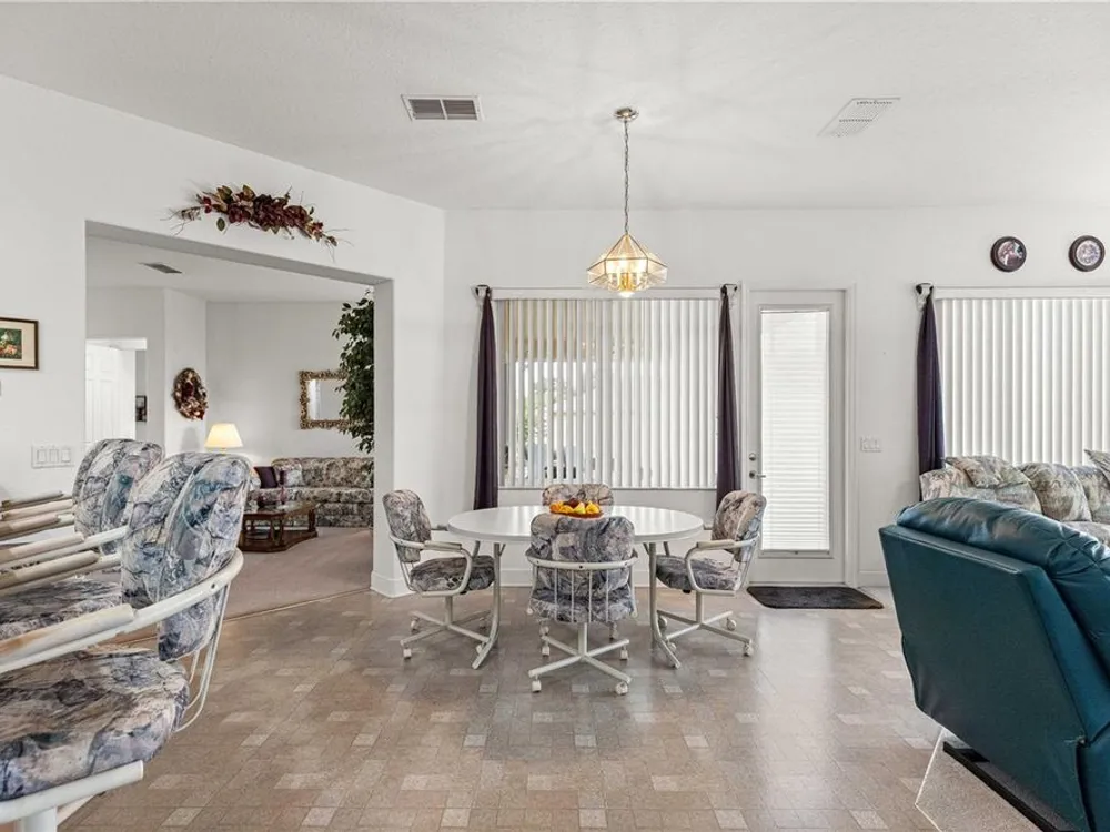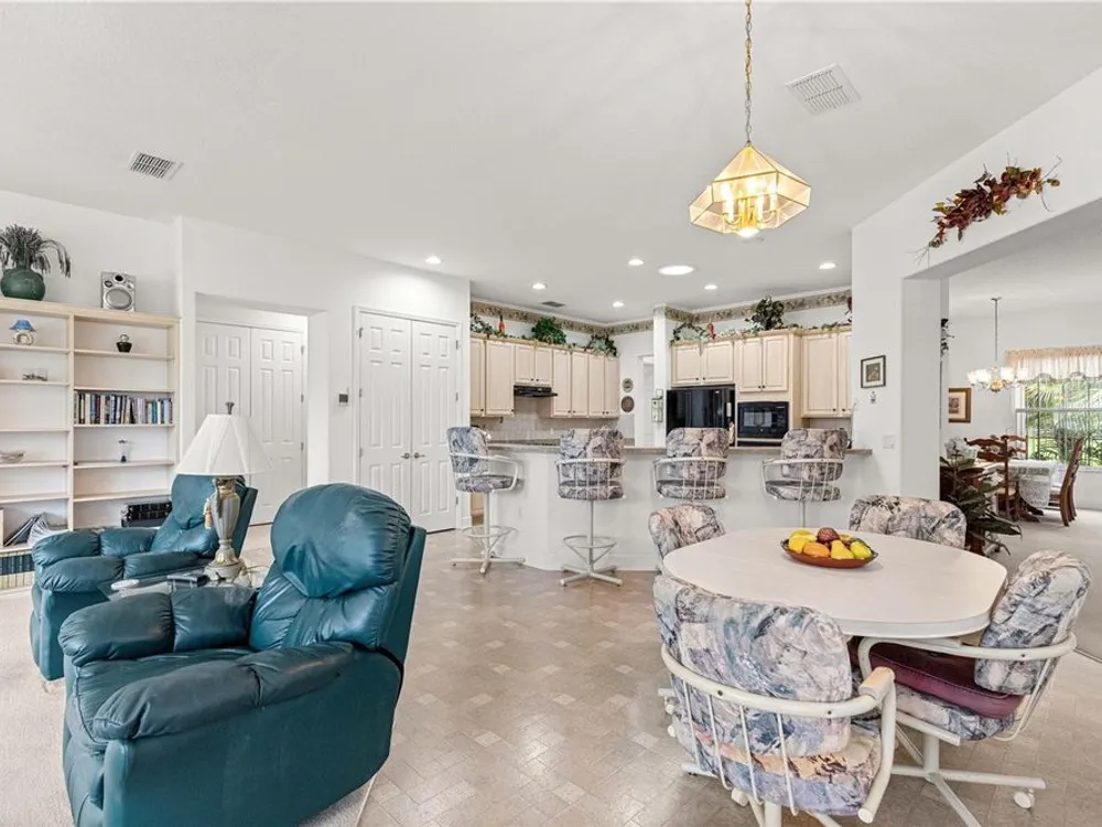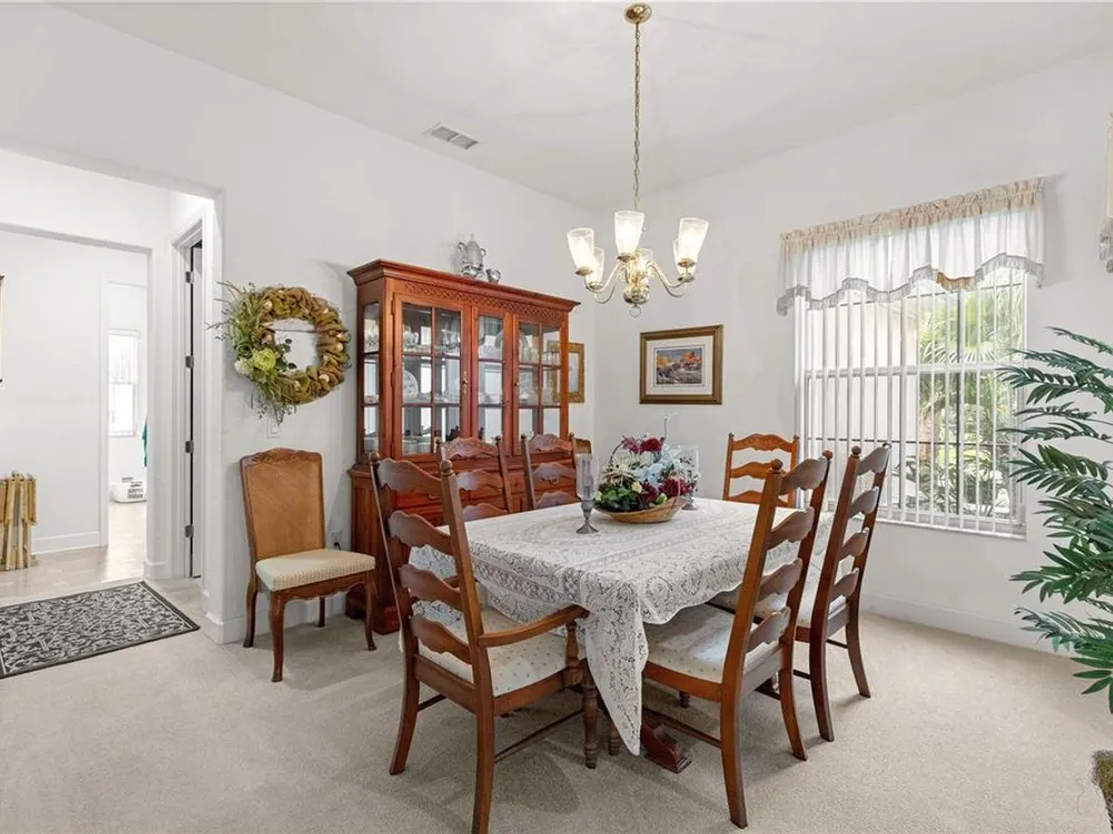 Luxurious Hampton model boasts French glass double French doors leading into a spacious formal dining room and formal living room. Large gourmet kitchen with skylight and built-in oven and gas stove top, open floor plan with great room. Three-bedroom split floor plan, one of the guest bedrooms has a built-in desk area. Primary bedroom has tray ceilings and primary bath is roomy with garden tub and shower, double sinks and window. Inside laundry room with sink and extra cabinets with countertop. All of the doors in this model are 9 ft doors with high ceilings making this home look grand. The 1/2 bath off of the entry is a plus not found in many of the community models. Garage is extended in length and width giving space for a workshop or golf cart parking. Electric screen on garage door. Driveway and sidewalk are brick pavers adding to the upgraded curb appeal of this spacious home with beautiful landscaping. Double sized lanai is screened with a large exterior patio that has exterior piping for a gas grill. A real plus this home comes with a well for irrigation. Roof re-shingled 2014 and HVAC replaced 2014. Home is centrally located in the St. Andrews section, close to the clubhouse, pro-shop, restaurant with easy access to main Del Webb Blvd with cart path and sidewalk. The Del Webb community is loaded with amenities and activities to enjoy your new lifestyle. Call for a private showing, a must see.