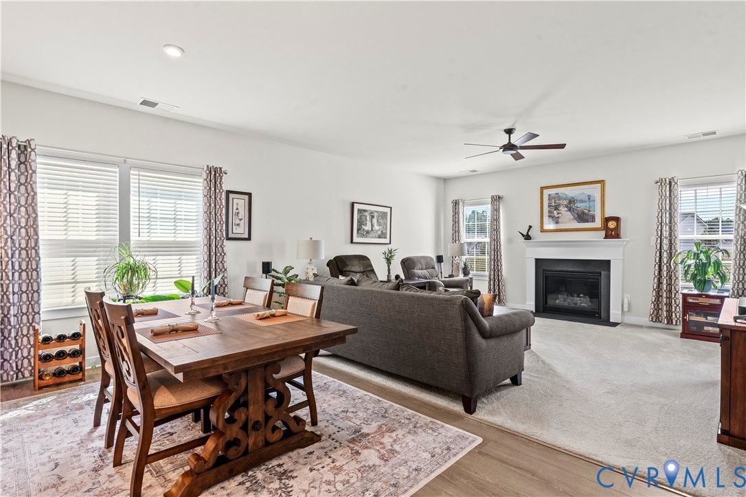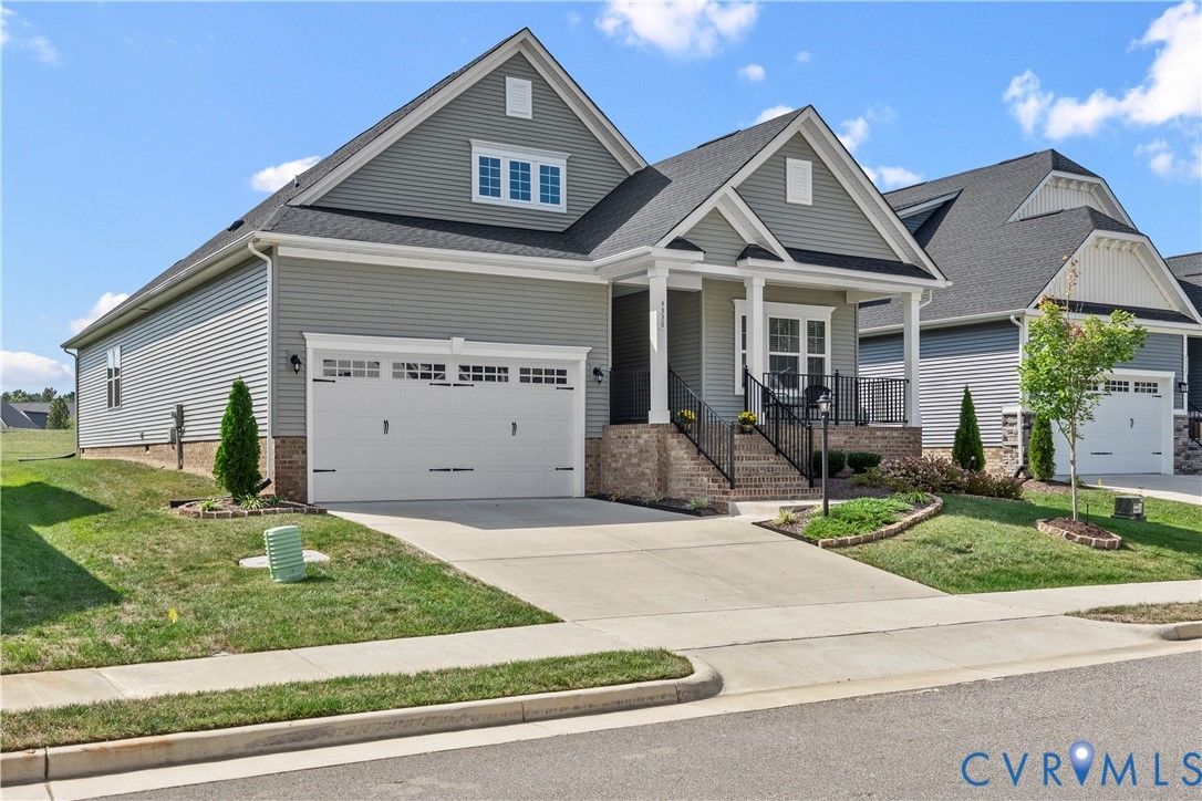 Welcome home to this desirable 3 bedroom, 2 bathroom, one-level living home in the desirable Kenbrook (55+) section of Harpers Mill! This home exudes curb appeal with fresh landscaping, a 2-car garage, and a full covered front porch. Step inside to an inviting foyer where you’ll notice thoughtful upgrades including durable LVP flooring. Just off the foyer, a flexible bedroom space is perfect for a home office, den, or guest room. The gourmet kitchen is a true centerpiece, featuring quartz countertops, a large center island with bar seating, stainless steel appliances, a gas cooktop, upgraded tile backsplash, under-cabinet lighting, and a deep single-basin sink. A cozy dining area flows seamlessly into the spacious family room, complete with a gas fireplace and access to outdoor living. The private owner’s suite offers a peaceful retreat with a walk-in closet, spa-like Roman shower with frameless glass door, dual vanity, and tile flooring. A generous third bedroom with plush carpet, double-door closet, and access to a full bath provides comfort for family or guests. Enjoy year-round relaxation in the screened-in porch with ceiling fan, composite decking, and beautiful backyard views. Kenbrook residents enjoy included yard maintenance along with exclusive access to neighborhood amenities including a state-of-the-art clubhouse, pickleball courts, pool, nature trails, and sidewalks. This 55+ community has private amenities while enjoying all that the Harpers Mill neighborhood includes.