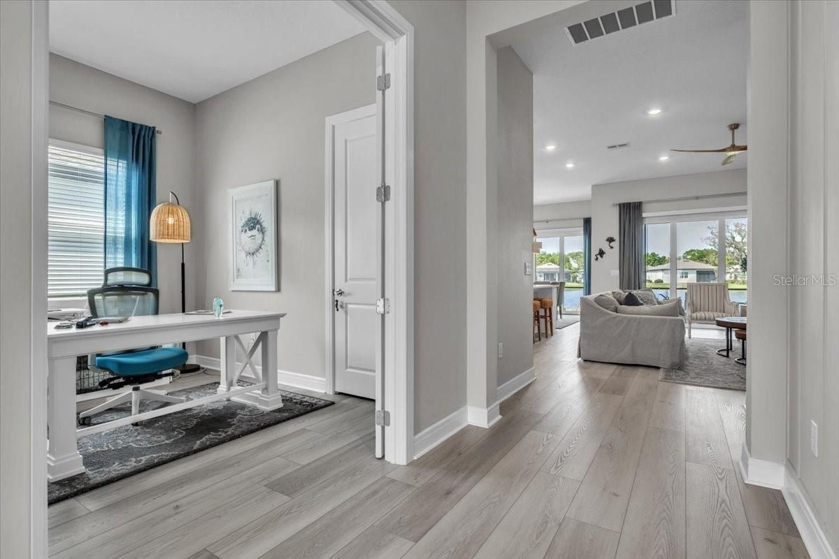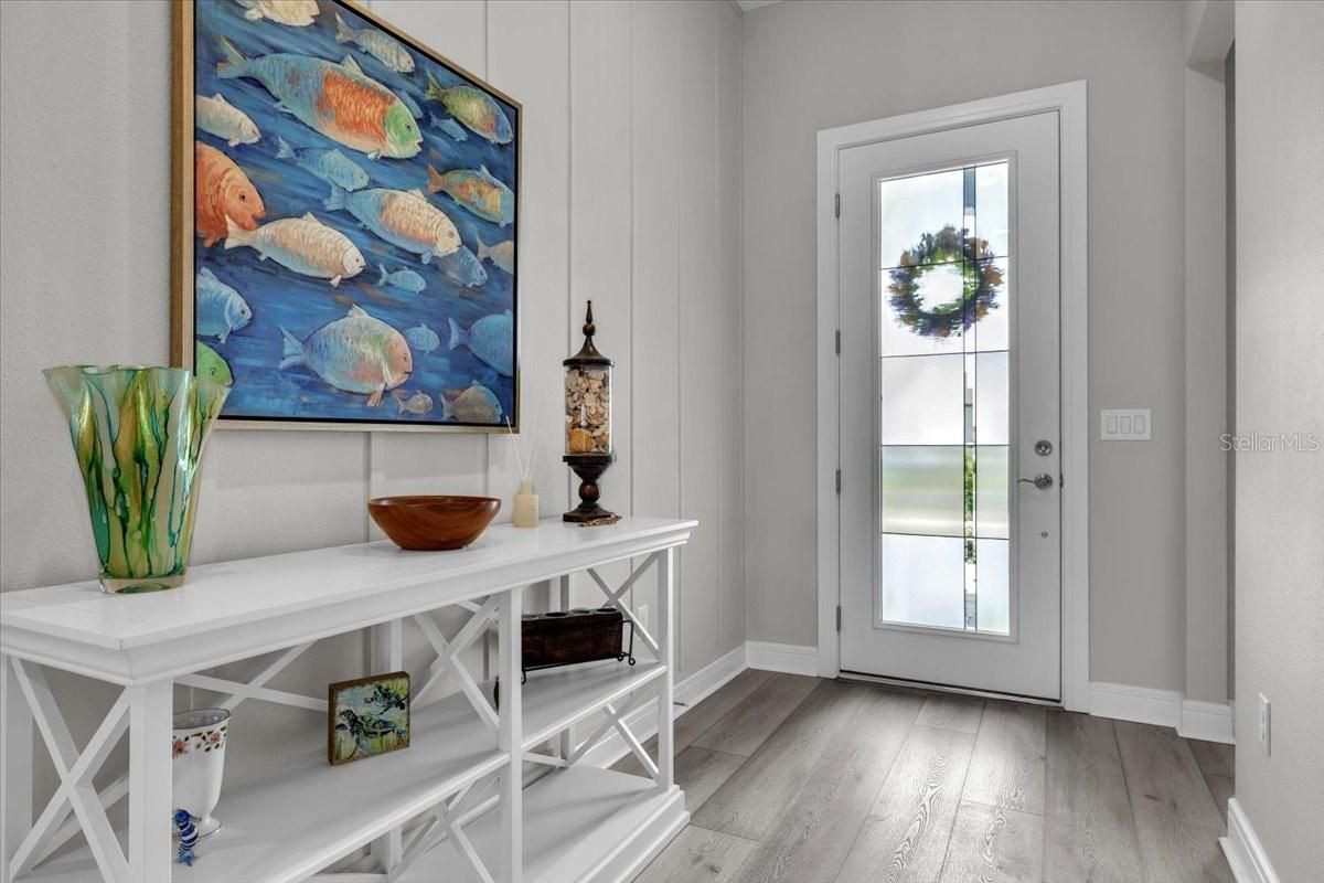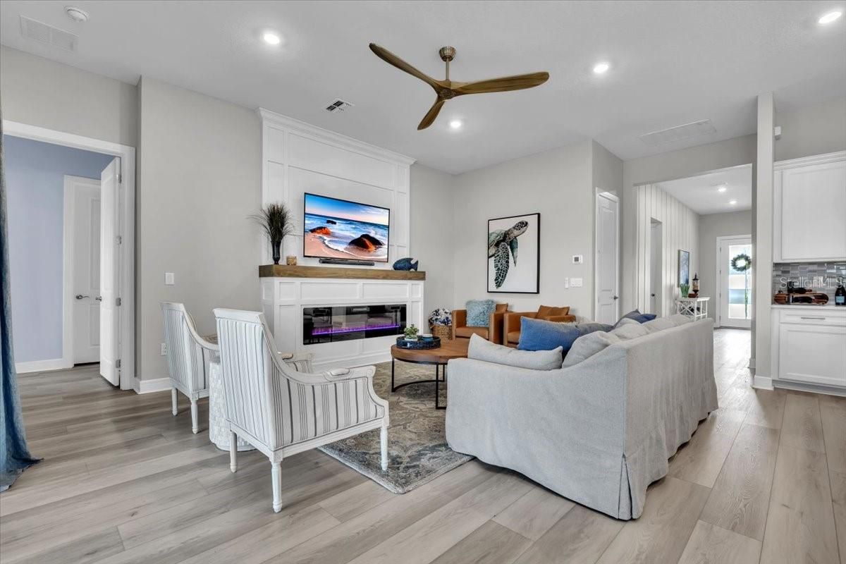 Stunning Prestige Model in Premier 55+ Del Webb Community with Serene Water Views Welcome to this beautifully upgraded Prestige model home located in a highly sought-after Del Webb 55+ community, where resort-style living meets everyday comfort. This spacious 3-bedroom, 2.5-bath residence offers a thoughtfully designed layout filled with natural light, elegant finishes, and modern upgrades throughout. Step inside to discover a bright and airy open-concept floor plan enhanced by luxury vinyl plank flooring throughout, fresh interior paint, volume ceilings, 8-foot doors, and upgraded baseboards. Custom feature walls with exquisite woodwork add warmth and character, creating a truly designer-inspired feel. The chef’s kitchen is both stylish and functional, featuring built-in wall oven and microwave, cooktop stove, stunning stone countertops, and upgraded soft-close cabinetry with convenient pull-outs. This space flows seamlessly into the expansive great room, where a custom electric fireplace with a beautiful mantle serves as the perfect focal point for relaxing or entertaining. The tranquil owner’s suite is a private retreat, offering a spacious en-suite bath and an oversized walk-in closet complete with a unique laundry pass through door that leads directly to the laundry room—a thoughtful and convenient touch. Additional highlights include a generously sized interior storage closet with built-in shelving, providing ample organization space. Step outside to your fully screened lanai and take in the peaceful water views, where you can unwind, enjoy nature, and watch local wildlife in a serene setting. Garage has epoxy flooring, Water softener and reverse osmosis in the kitchen. Located in a vibrant and welcoming community, residents enjoy an array of resort-style amenities, including a heated pool, pickleball and tennis courts, a state-of-the-art fitness center, clubhouse, on-site restaurant, and a full calendar of social events and activities. This home offers the perfect blend of luxury, comfort, and active adult living—your Florida lifestyle awaits! Quick and easy access to I-75, 30 minutes to St. Pete, 30 min to sarasota, Close to shopping, outlets, restaurants and beaches.
