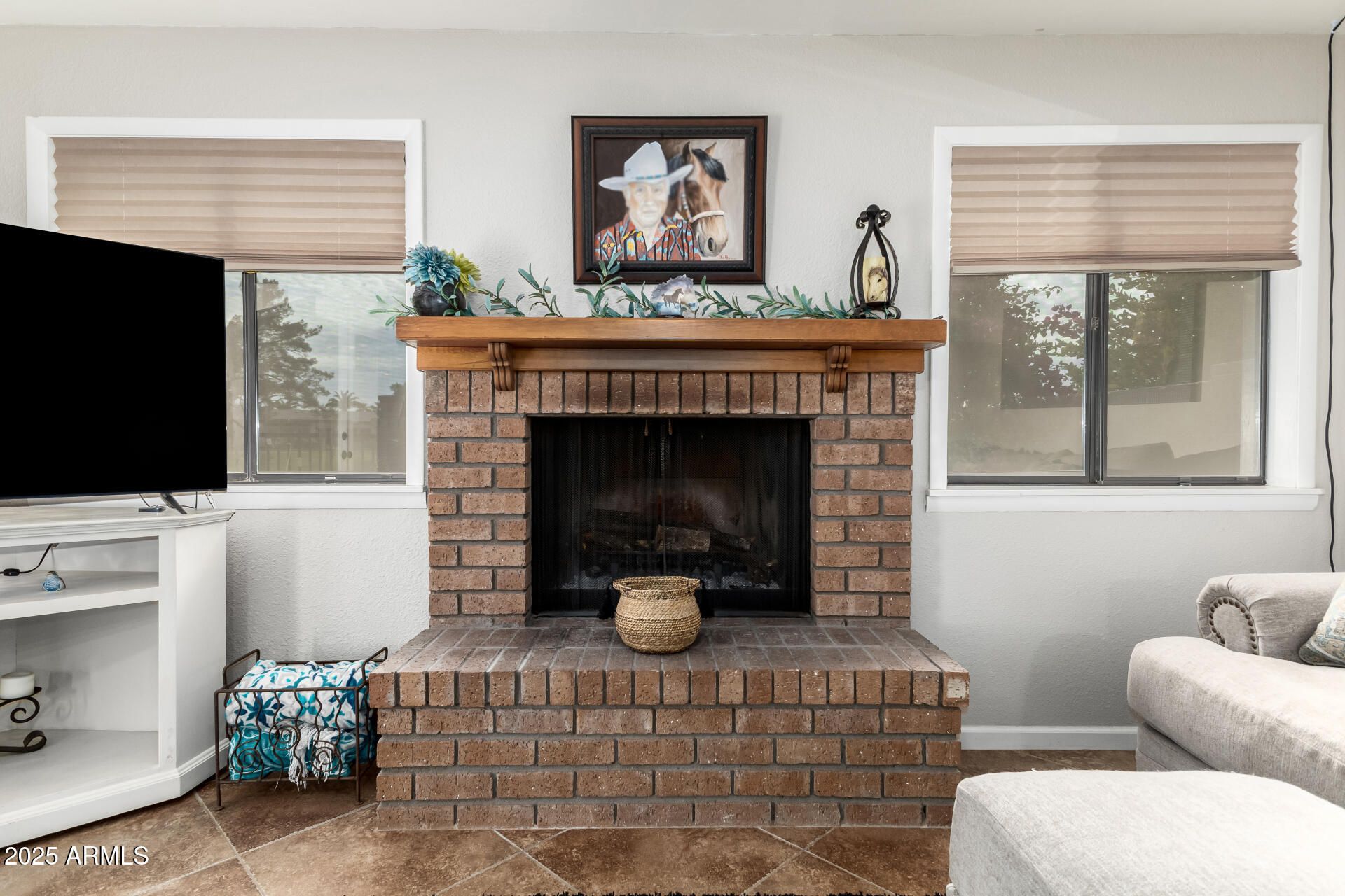 Location, Location, location! Enjoy tranquil LAKEFRONT living from the expansive covered patio with breathtaking water views. Designed for relaxation and entertaining, the patio overlooks the serene lake and lush greenbelt. The unobstructed view creates a true indoor-outdoor lifestyle. This private retreat offers the perfect backdrop for morning coffee, evening cocktails and everything in between. There's a NEW A/C installed in 2025 and NEW SHINGLE ROOF (front half in 2022, back half in 2025). Add in the fresh exterior paint and easy maintenance landscaping making it a perfect recipe for keeping you free to enjoy pickleball, tennis, swimming or golf in your spare time. The community has so many amenities. The lovely interior features tile floors throughout, and the hard-to-find 3rd bedroom. The warm and inviting living space is filled with natural light and the family room features a charming brick fireplace with a raised hearth creating a cozy focal point for relaxing or entertaining. An expanded kitchen w/ pantry features espresso cabinetry, stainless steel appliances, generous counter space, a double basin stainless steel sink, clean finishes with modern hardware, and warm tones make this kitchen both practical and stylish. The dishwasher was installed in 2024, and a new garbage disposal was just installed. This home has been nicely maintained and is 100% move in ready. The garage is so big you can fit 2 cars AND a golf cart. Pinch yourself, this is absolutely the one! Please watch your step when touring this home as there is a sunken family room.