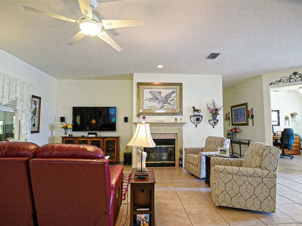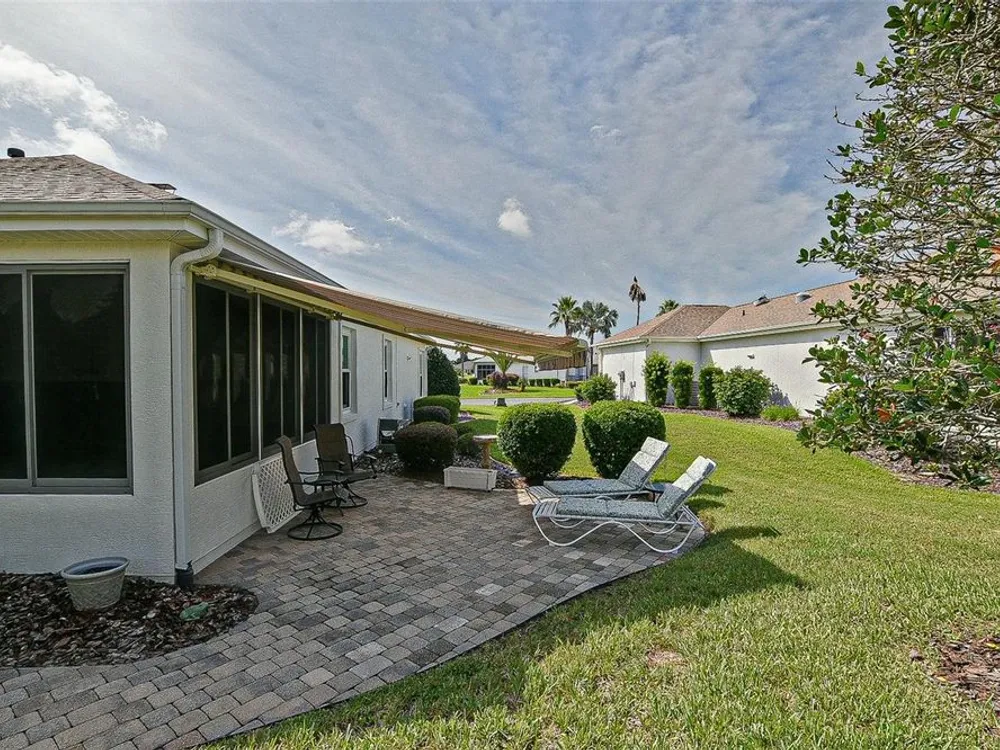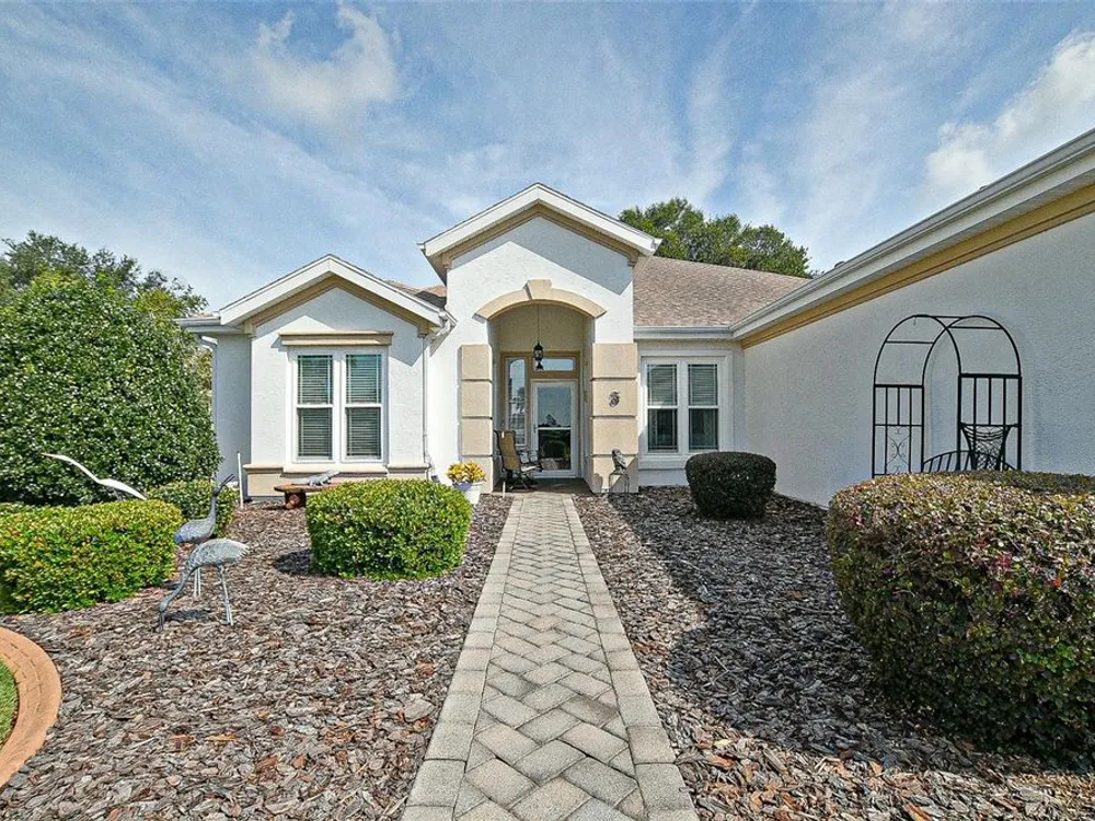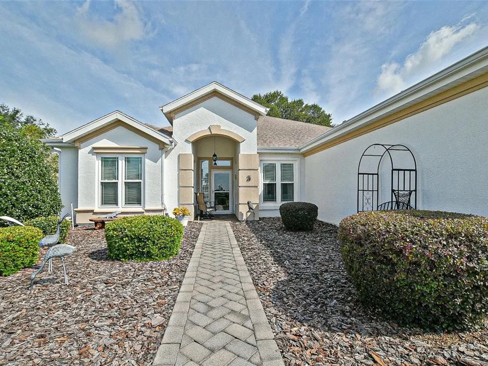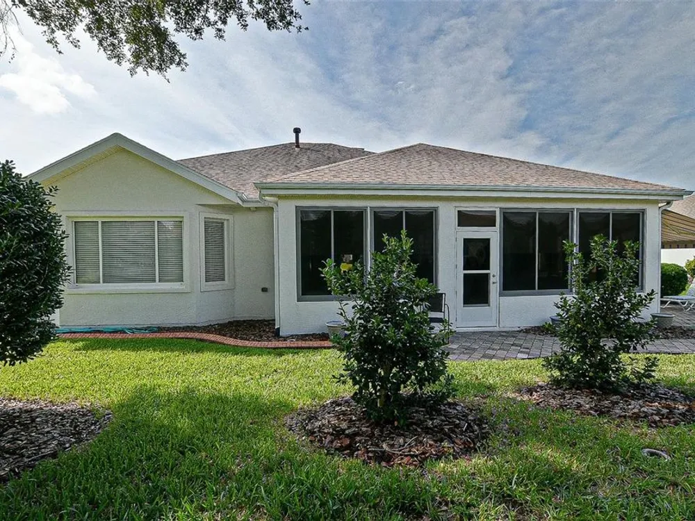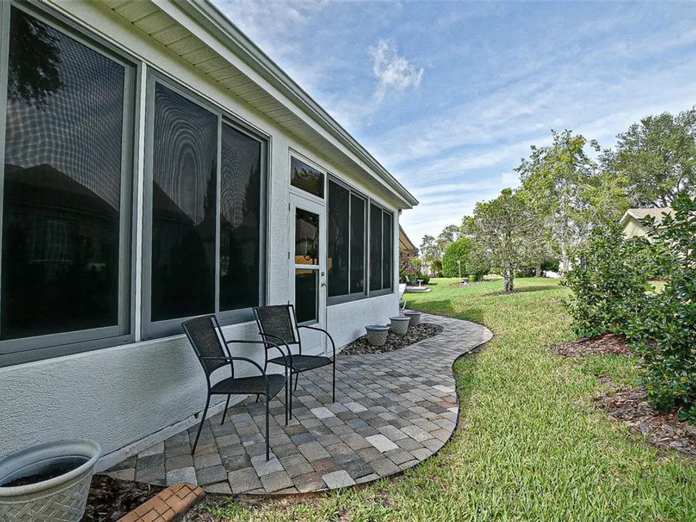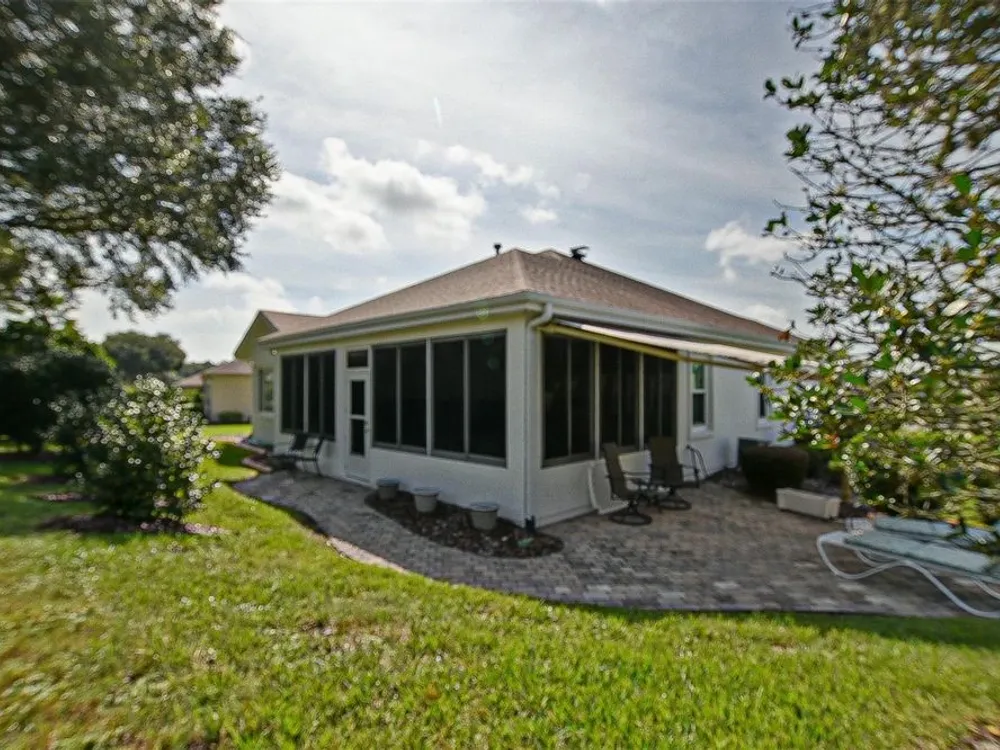 Move in ready and highly popular Santa Rosa floor plan, boasts 2 bedrooms, 2 baths and a den plus an enlarged (432 sf) Florida room enclosed, insulated, with knee wall, and under heat and air with French doors off of the living room. Driveway and sidewalk pavers were redone and sealed in 2022 and storm door added (2021) Enter the spacious living room, that has a gas fireplace with eyeball light and mantel and large formal dining room. Remodeled spacious kitchen with KraftMaid wood cabinets, with pull out shelving and soft close doors and stainless-steel appliances. Two pantry cabinets and under cabinet lighting. Quartz countertops on counters and center island. Tiled backsplash and 14-gauge stainless steel under counter sink round out this beautiful kitchen with dinette area and loads of windows for natural light. The primary bedroom is super large and has a bay window and add to that the primary bath is remodeled with walk in, roll in shower and new cabinets in 2021. 5 surround sound speakers throughout the home and a welcoming guest bedroom plus a den round out the features of this beautiful home. New double hung windows installed in 2021 with a lifetime warranty transferrable to new owners. Extended deep (29 ft) garage with garage door insulation and vents, 2 solar attic fans and garage vent fan. The back patio has pavers and a walkway plus a 14 ft electric retractable Sun Setter awning to enjoy the large back yard. All of this plus a Generac whole house generator (2020) Roof re-shingled (2020) HVAC (2016) Hot water heater (2019). Come view this beautiful move in ready home today and start enjoying the lifestyle of Del Webb's Spruce Creek Golf and Country Club.