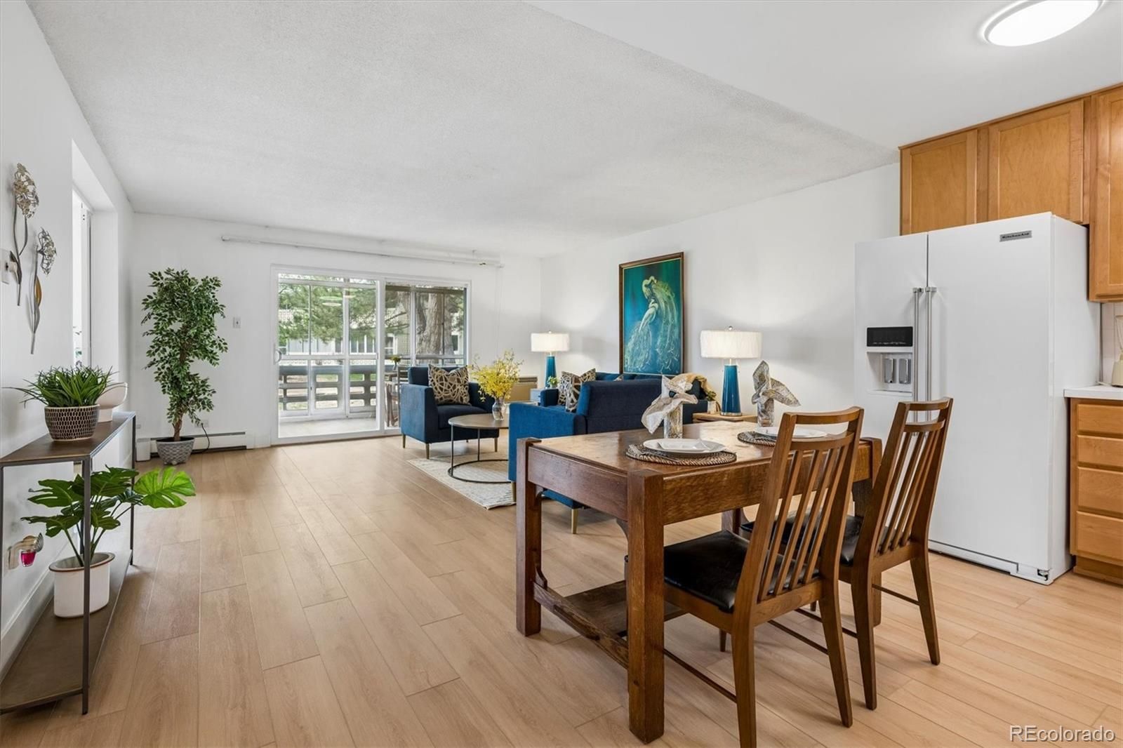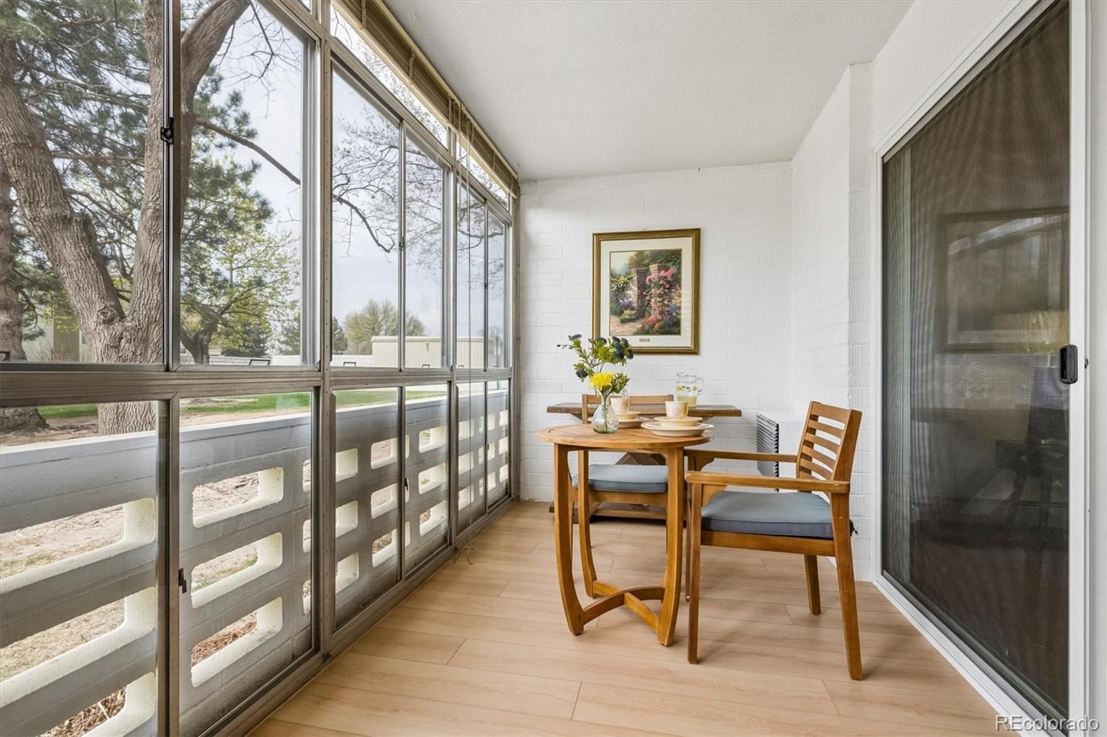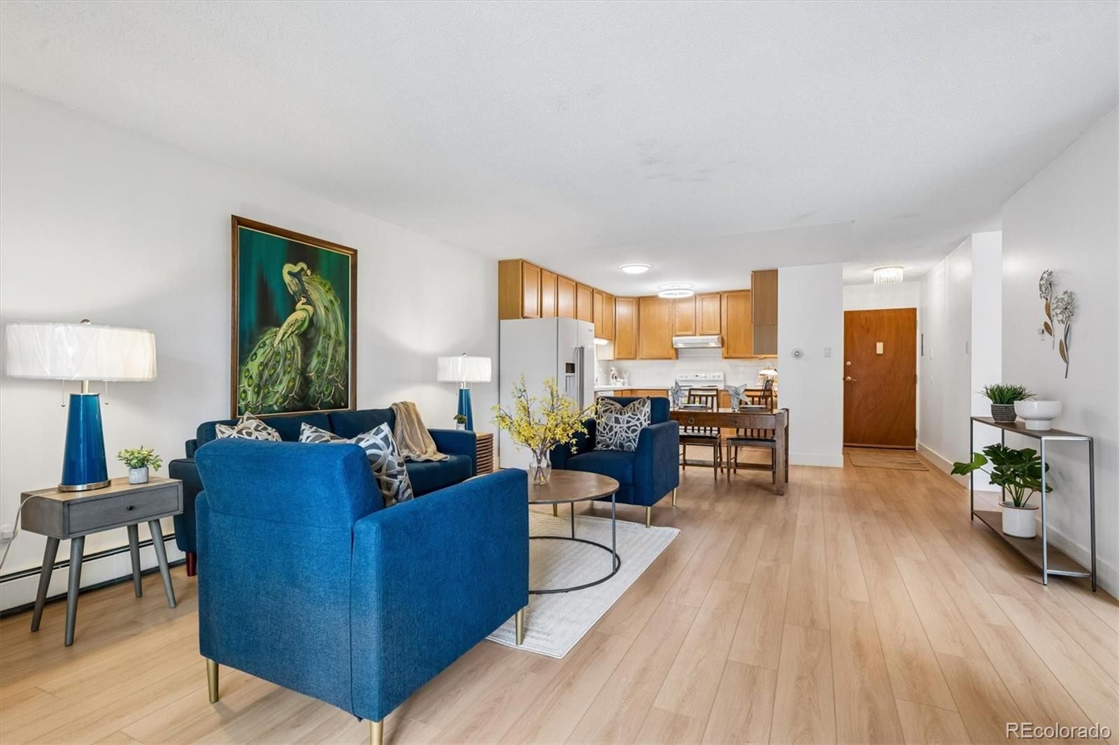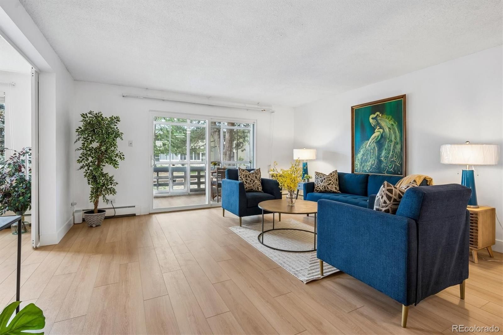 Welcome home to this beautifully updated 2-bedroom, 2-bath first-floor condo ideally located near the building entrance with convenient access to Garage #139 (Lot-20). Offering approximately 1,200 square feet, this light-filled home blends comfort, style, and ease of living in a serene setting. Enjoy peaceful golf course views framed by lush flower beds, mature trees, and natural grasses—creating a tranquil outdoor backdrop. The walk-out lanai provides direct access to green space, perfect for easy dog walking or enjoying Colorado’s beautiful seasons. Inside, the open-concept kitchen features warm honey maple shaker-style cabinetry, a new full pantry, and flows seamlessly into the dining and living areas—ideal for both everyday living and entertaining. The home has been thoughtfully refreshed with new paint, baseboards, and durable Coretec Pro Plus luxury vinyl flooring throughout. Additional upgrades include: New electrical outlets and switches New Plumbing Valves in the kitchen and bathrooms Newer windows in the primary bedroom and dining room New HOA-compliant lanai sliding door New double doors for added flexibility between dining/bedroom spaces Updated bathrooms with new sinks, faucets, lighting, and a new shower enclosure Living room and bedroom A/C units for added comfort This well-maintained home offers the perfect combination of modern updates, functional layout, and a prime location within a vibrant community. Don’t miss this opportunity to enjoy low-maintenance living with beautiful views, convenient garage access, and thoughtful upgrades throughout!