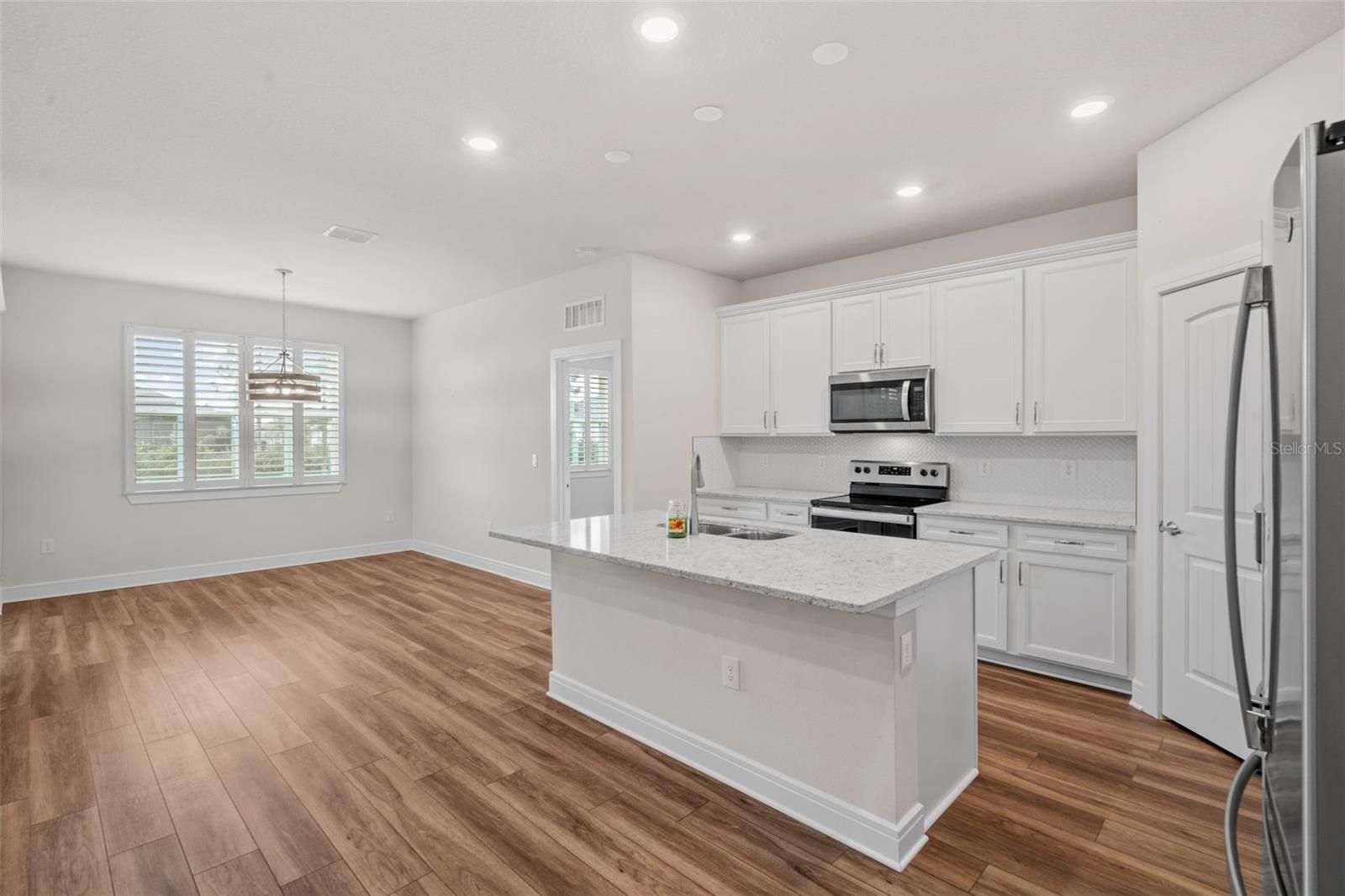 This spacious three-bedroom two-bathroom home waits for its next owner...With an open concept (Cedar Model) this house could be ideal for families who want to host a holiday or social get-together. This house is as close to being new as one could ask for. At only four years old, this home comes with a host of upgrades: screened in lanai, recessed lighting, Plantation Shutters throughout, soft water system, luxury vinyl, gutters for drainage, and custom cabinetry in the third bedroom and the primary bedroom's walk-in closet. Located in the Saratoga subdivision within the Stone Creek community, you have virtually every amenity you could ask for: a championship golf course, golf cart paths throughout the community, pickle ball court, swimming pools, fitness center, spa, and restaurants, along with a variety of extracurricular activities to keep you occupied.