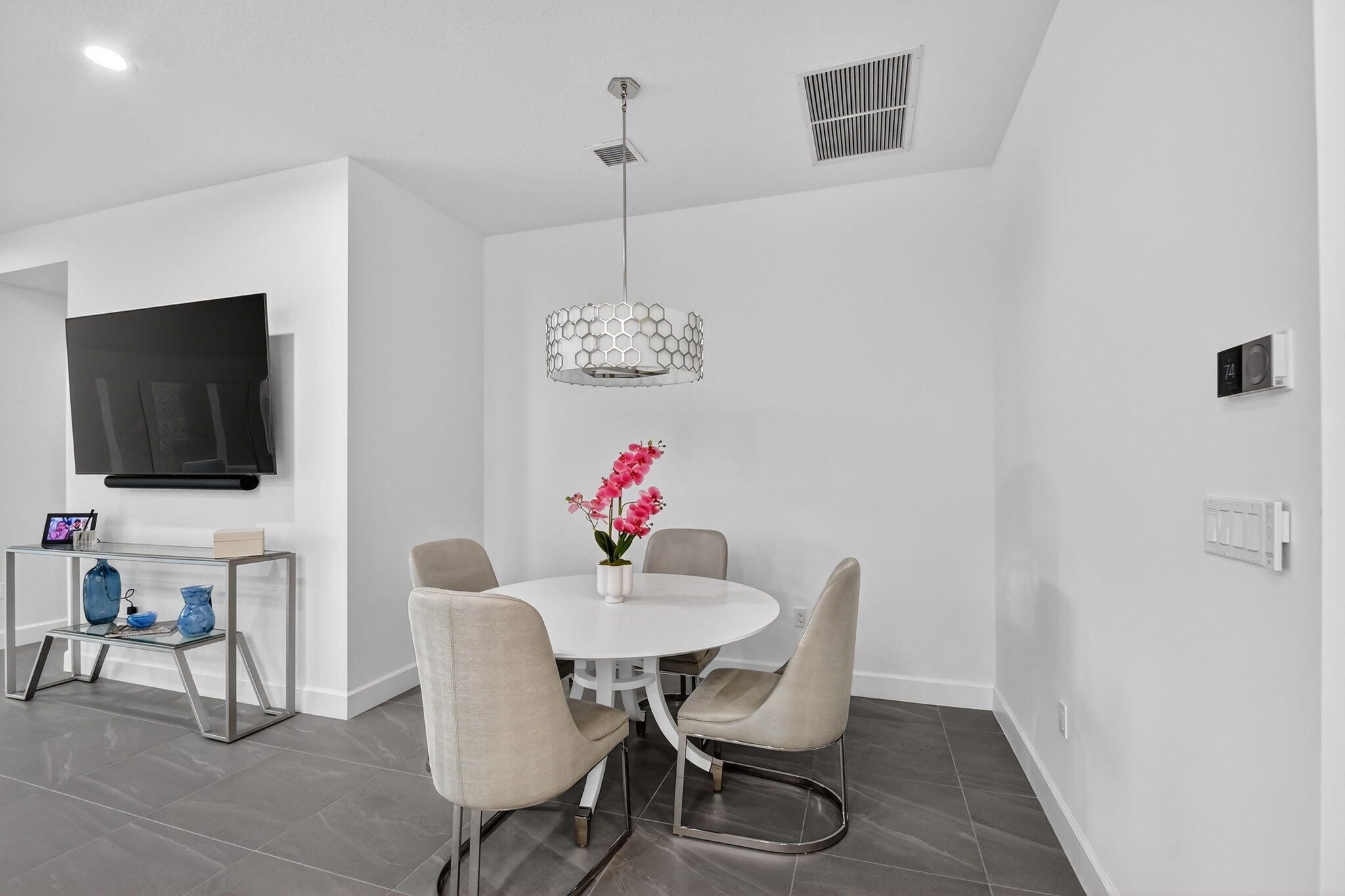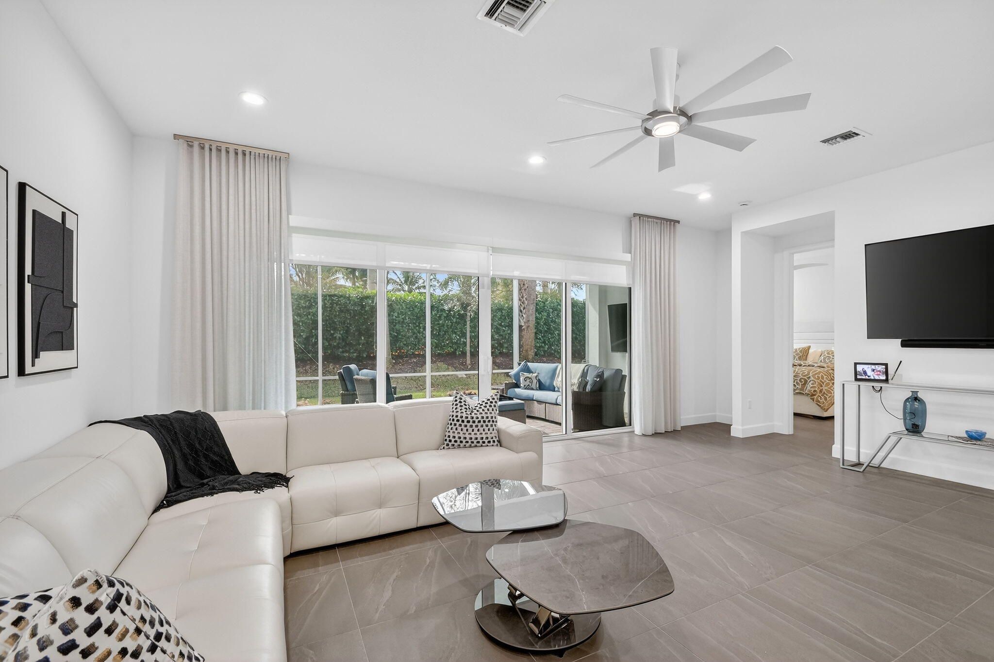 BETTER THAN NEW!!! Experience luxury living in Valencia Sound, one of Boynton Beach's premier 55+ community. This barely lived-in Sapphire model home offers 3 bedrooms and 2 bathrooms with extensive upgrades throughout. Striking contemporary stacked-stone exterior, upgraded landscaping, and a wide walkway welcome you inside to a bright, open floor plan with elegant 24'' x 24'' smoke-gray tile and a gallery-like feel. The upgraded kitchen features quartz countertops, gas cooking, upgraded appliances, and a glass-tile backsplash. The spacious primary suite includes two custom walk-in closets and a beautifully upgraded bath with extra cabinetry and quartz counters. Enjoy true indoor-outdoor living with an expanded screened lanai, nearly doubling your living space, complete with a large screen TV, ceiling fans, and an outdoor kitchen with grill and refrigerator. Features of this home include: impact windows, recessed lighting throughout, custom window treatments (motorized shades & plantation shutters), upgraded Daikin A/C, custom closets, built-in desk and entertainment unit, upgraded lighting, smart home features (keyless entry, Ring camera, smart switches), Tesla charger, gutters, and more. Move-in ready and impeccably upgraded and just a short walk to the clubhouse! This is really a must-see! Experience resort-style living without the country club fees at Valencia Sound, one of GL Homes' premier 55+ communities. This vibrant lifestyle community offers endless opportunities for recreation and socializing, centered around a stunning 38,000+ sq. ft. clubhouse. Amenities include a full-service restaurant with indoor and outdoor dining, an outdoor bar, and a lively sports bar/lounge featuring billiards, music, dancing, and happy hours. Outdoor amenities include a resort-style pool with cabanas and ample seating, a lap pool, resistance pool, hot tub, and kiddie pool. Residents also enjoy three card rooms, an art studio with classes, a cooking studio, and a grand ballroom for shows and events, along with countless clubs and activities to suit every interest. For sports enthusiasts, the community features 11 lighted pickleball courts, 6 lighted tennis courts, 4 lighted bocce courts, a pro shop, and a full calendar of sporting events. Valencia Sound is conveniently located just a short drive to downtown Delray Beach, Boca Raton, Wellington, and West Palm Beach, offering easy access to dining, beaches, golf, theaters, shopping, and parks.