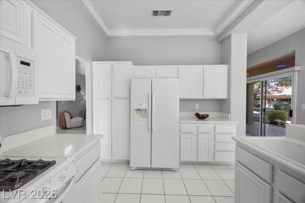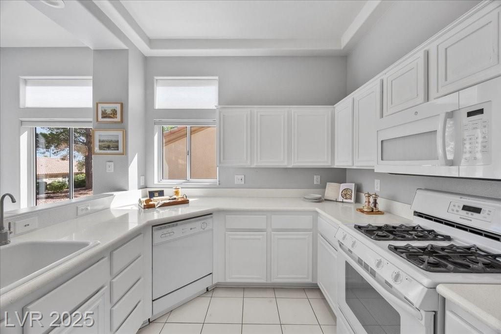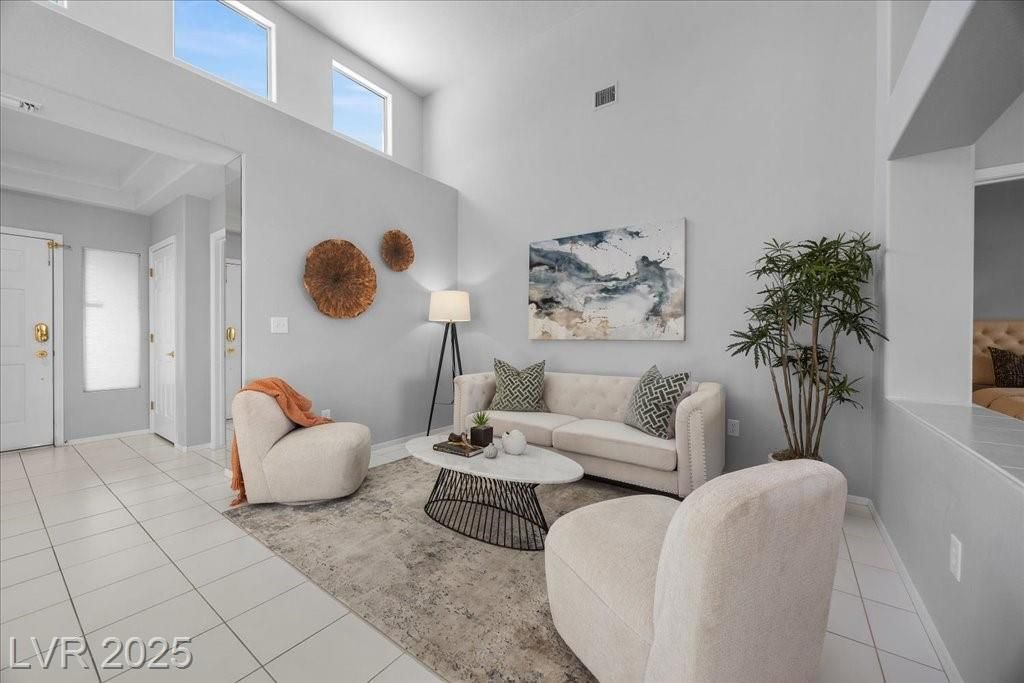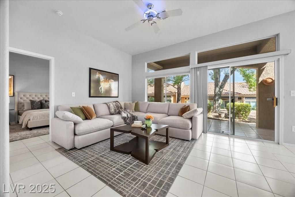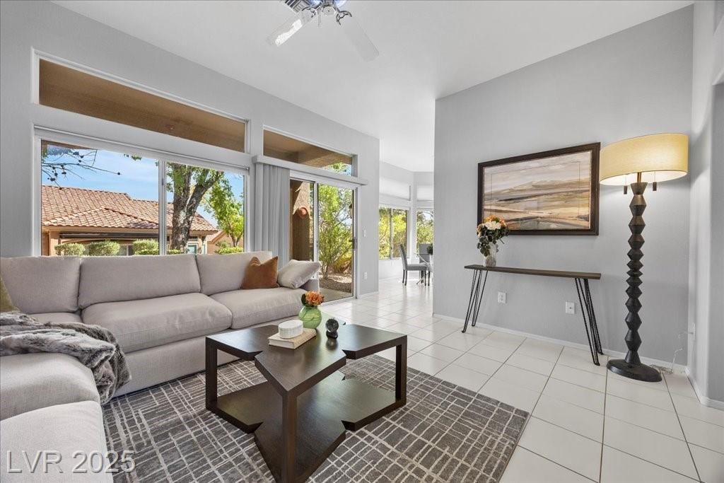 Start Your Next Chapter in Sun City Summerlin. Welcome to this Grafton model, where a private, pet-friendly courtyard sets the tone for comfort and connection. Inside, the split floor plan offers privacy with 2 bedrooms and 2 baths, both with walk-in showers. A bright kitchen, soaring ceilings, and abundant windows create a light-filled atmosphere, while the spacious primary suite includes a large walk-in closet. An additional flex room provides versatility, perfect for an office, mudroom, storage, or a small cardio space. Step outside and discover a 55+ community designed for active living—golf, pools, fitness centers, and countless clubs—live your best life at 9352 Villa Ridge Drive.