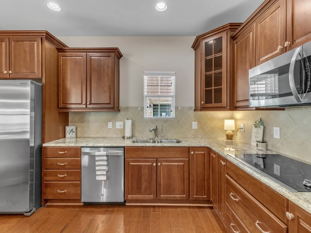 - Built-In Electric Oven, Built-In Electric Range, Dishwasher, Microwave, Oven, Stainless Steel Appliance(s), Water Heater