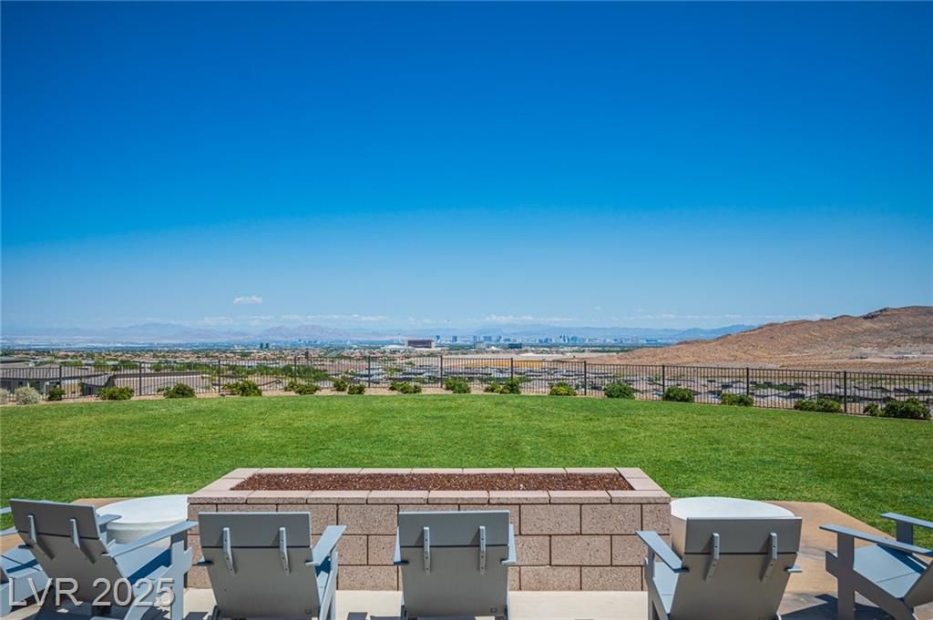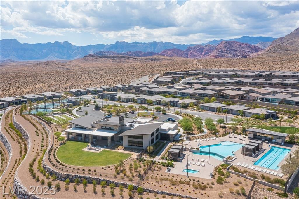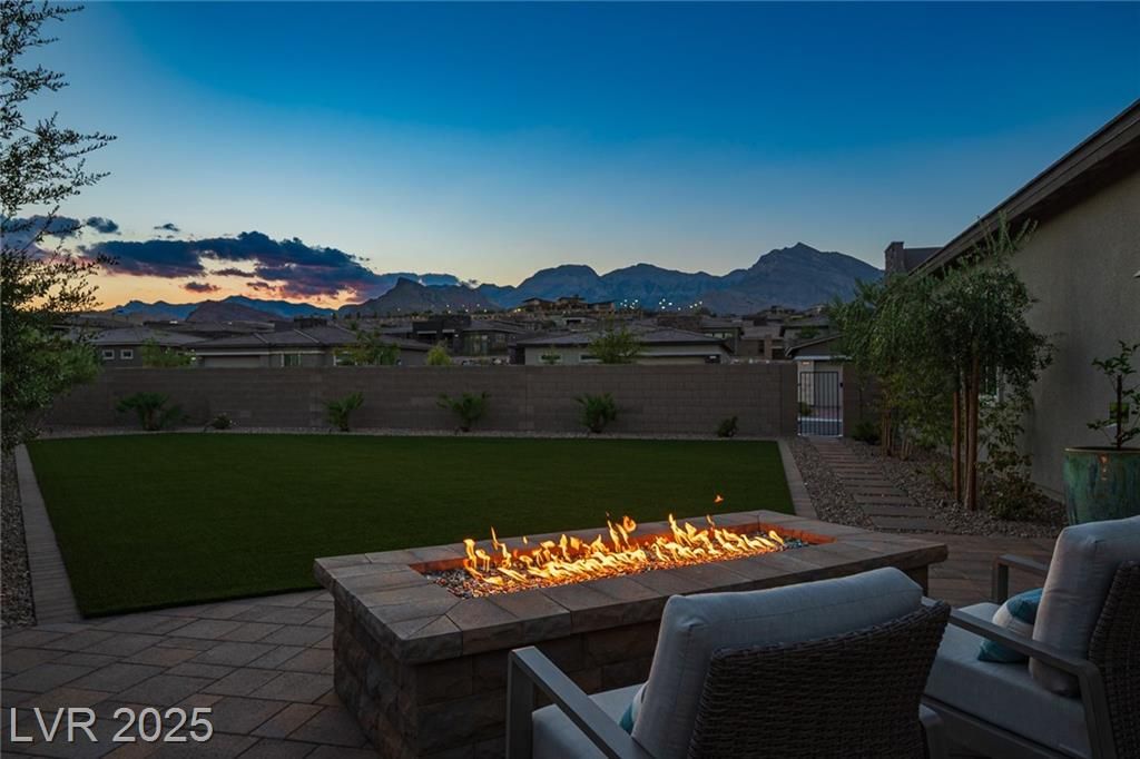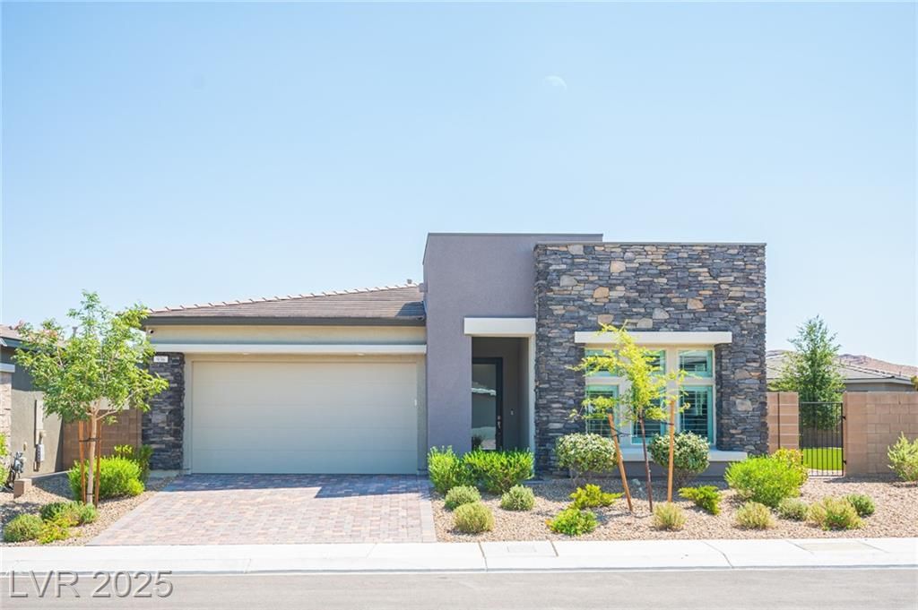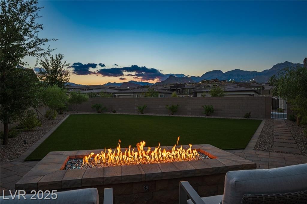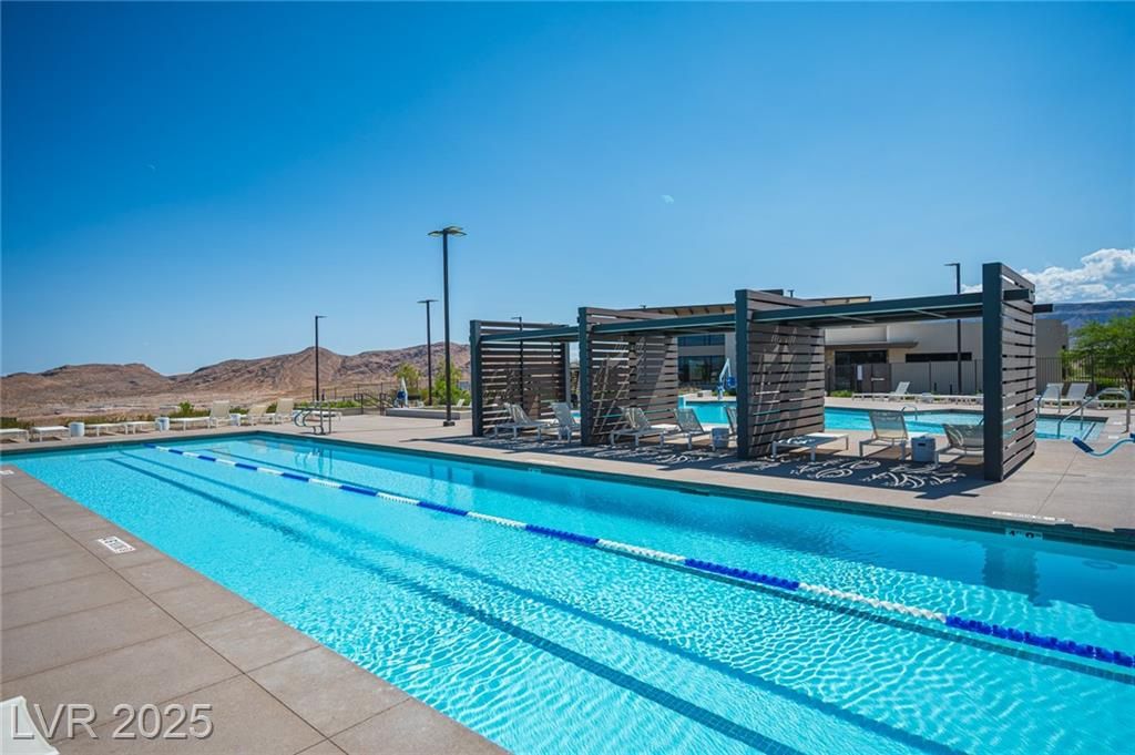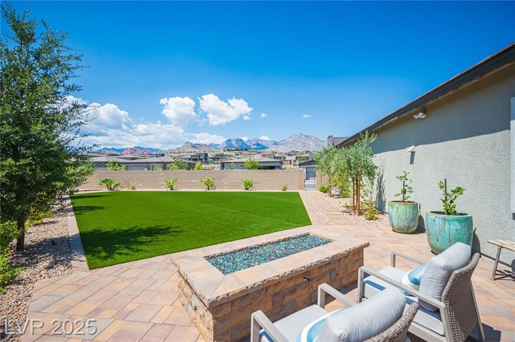 Welcome to the good life in Heritage at Stonebridge, Summerlin’s premier 55+ guard-gated community where active living meets elegant comfort. This upgraded single-story stunner is situated on a premium pool-size lot with mountain views, turf landscaping, extended pavers, and a cozy firepit—your new favorite sunset spot! Inside, you’ll find over $130K in upgrades, including quartz counters, Monogram appliances, a built-in wine fridge/bar area, plus a flexible layout with 3 bedrooms—one ideal as an office—2 baths, and a modern open-concept design perfect for entertaining. The primary suite offers a walk-through closet with direct access to the laundry room. Love the decor? It could be yours too! The garage has an epoxy-finished floor & hanging storage. Heritage isn’t just a neighborhood—it’s a lifestyle. Enjoy Strip views from the clubhouse, resort-style pools, pickleball, fitness center, and a vibrant social calendar— minutes from Red Rock Canyon, Downtown Summerlin & Red Rock Resort.