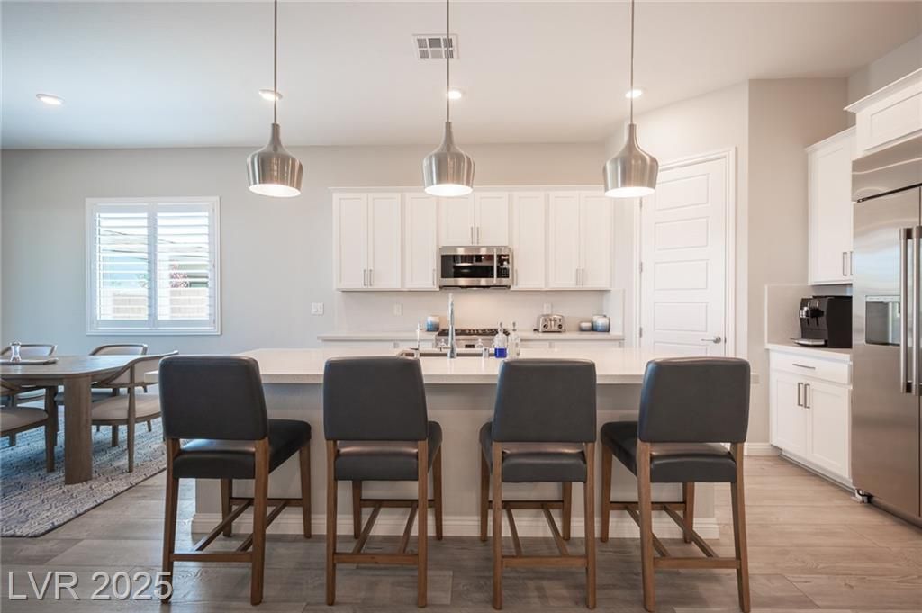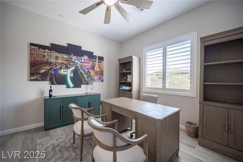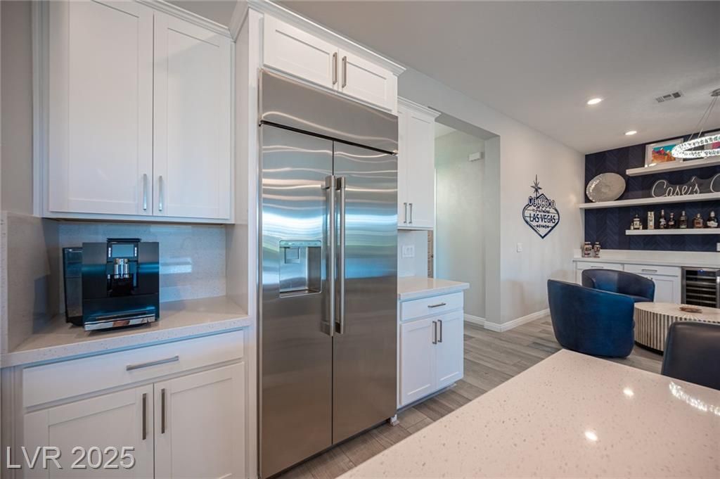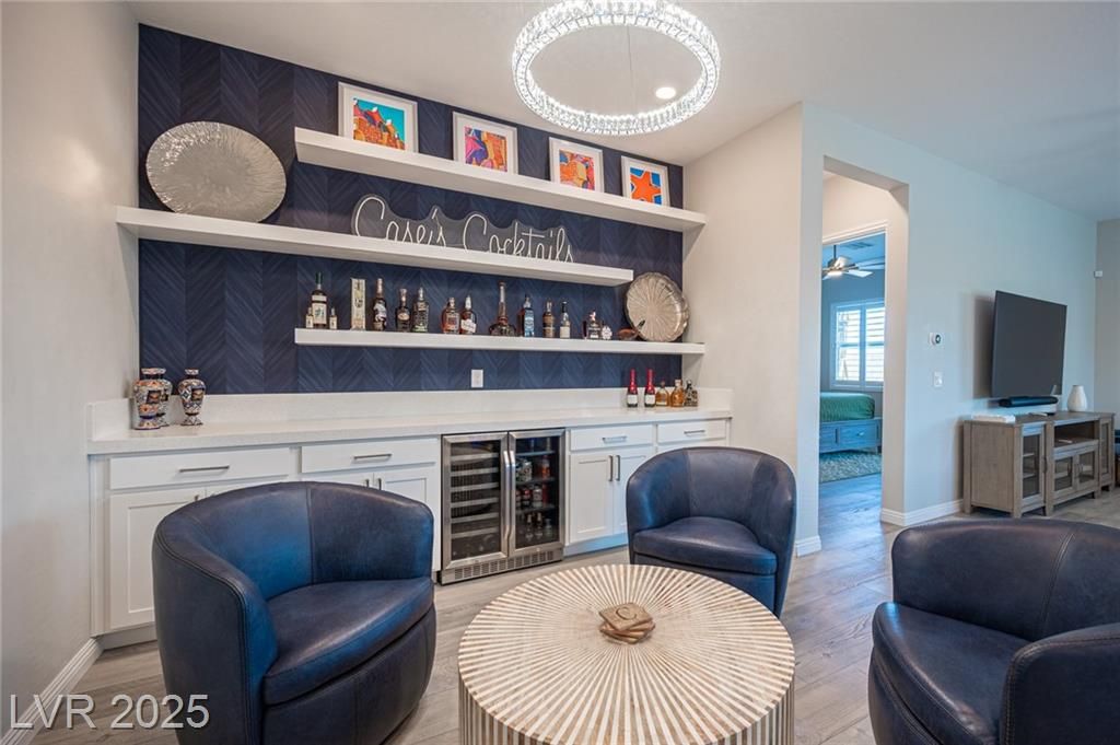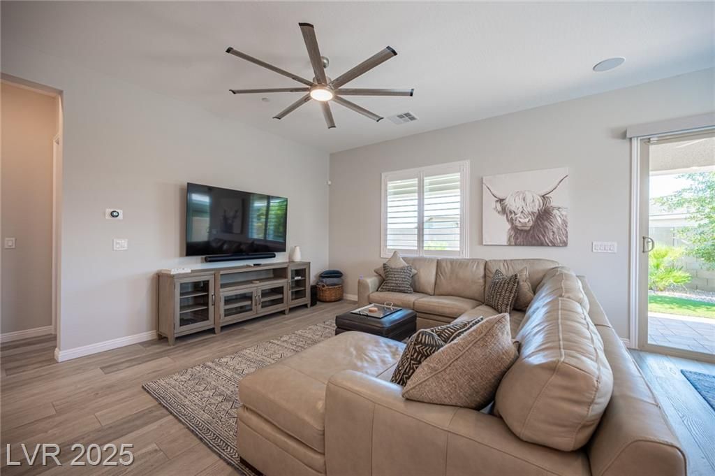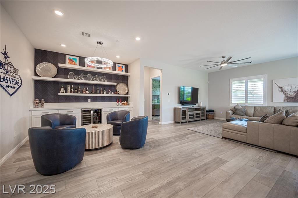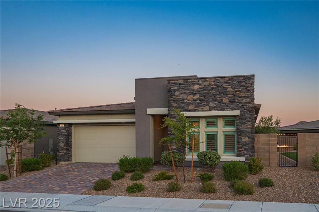 Welcome to the good life in Heritage at Stonebridge, Summerlin’s premier 55+ guard-gated community where active living meets elegant comfort. This upgraded single-story stunner is situated on a premium pool-size lot with mountain views, turf landscaping, extended pavers, and a cozy firepit—your new favorite sunset spot! Inside, you’ll find over $130K in upgrades, including quartz counters, Monogram appliances, a built-in wine fridge/bar area, plus a flexible layout with 3 bedrooms—one ideal as an office—2 baths, and a modern open-concept design perfect for entertaining. The primary suite offers a walk-through closet with direct access to the laundry room. Love the decor? It could be yours too! The garage has an epoxy-finished floor & hanging storage. Heritage isn’t just a neighborhood—it’s a lifestyle. Enjoy Strip views from the clubhouse, resort-style pools, pickleball, fitness center, and a vibrant social calendar— minutes from Red Rock Canyon, Downtown Summerlin & Red Rock Resort.