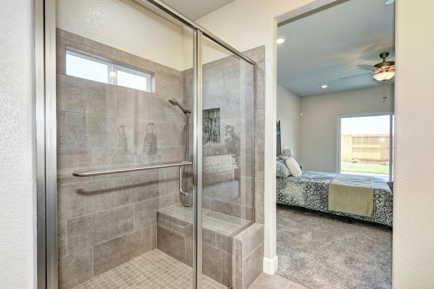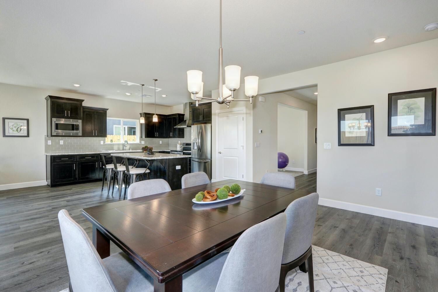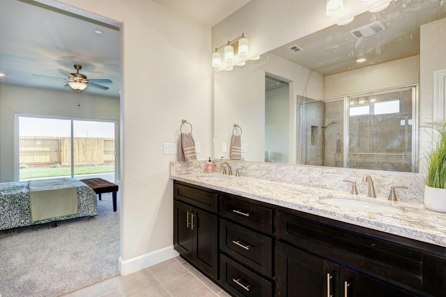 New Energy Efficient Single Story Home. This is the favorite floor-plan of many home buyers. Large suite upfront for guests, flex room (can be used as office, den, or another bedroom), open dinning & great room, beautiful owner's suite, and covered patio. Price INCLUDES fully landscaped backyard, granite counters, custom shaker cabinets, stainless steel appliances, luxury vinyl plank flooring. Dry Creek Oaks, a gated active adult community in Galt (short drive to Sacramento). 4,500 square foot clubhouse on-site with a swimming pool, pickle ball courts, bocce ball, putting green, horseshoes, walking trail. Pet friendly community with many events for residents to enjoy. Easy walk or cart ride to Dry Creek Golf Course.