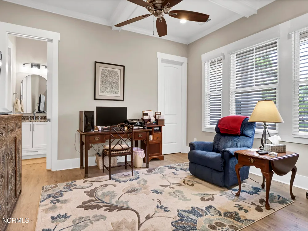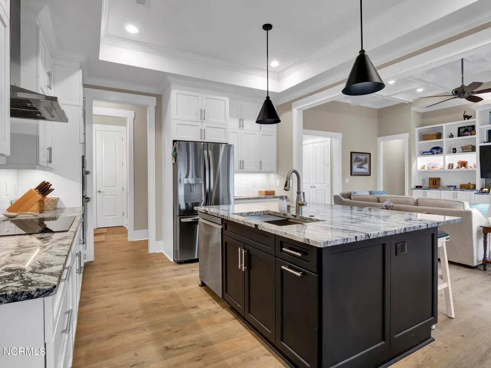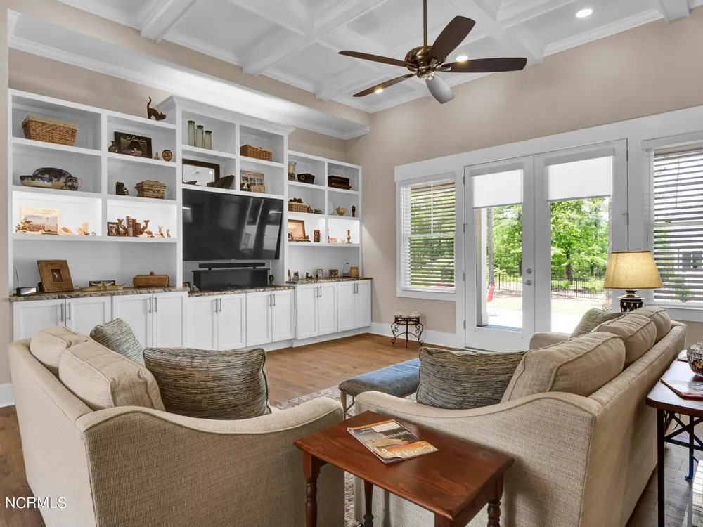 - Blinds/Shades, Tray Ceiling(s), Whole-Home Generator, Walk-In Closet(s), Walk-in Shower, Pantry, Master Downstairs, Kitchen Island, High Ceilings, Entrance Foyer, Ceiling Fan(s), Bookcases