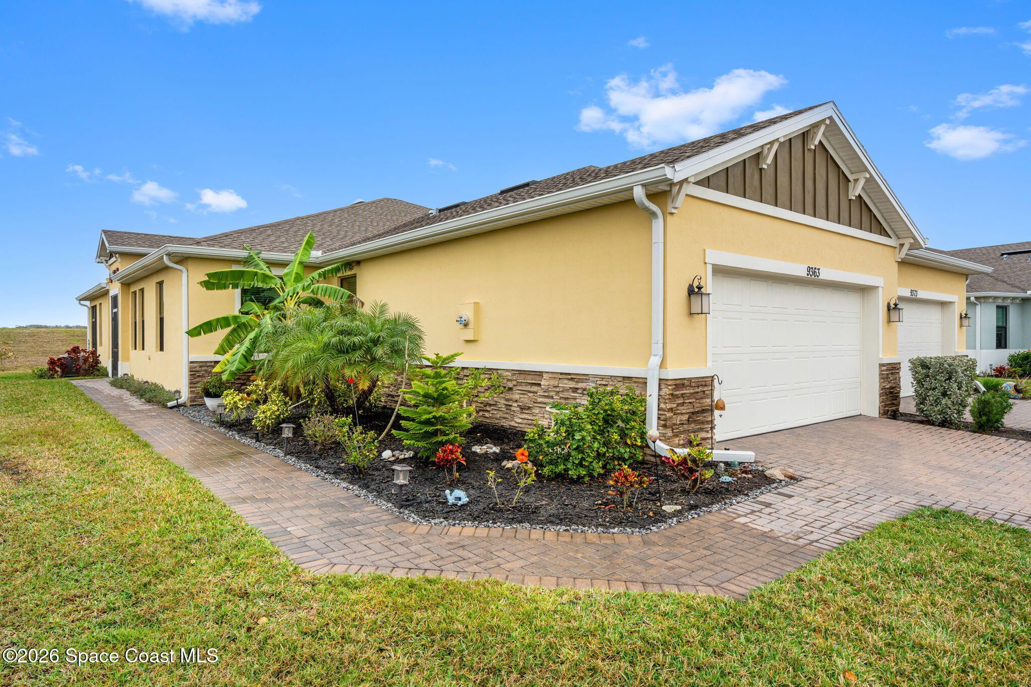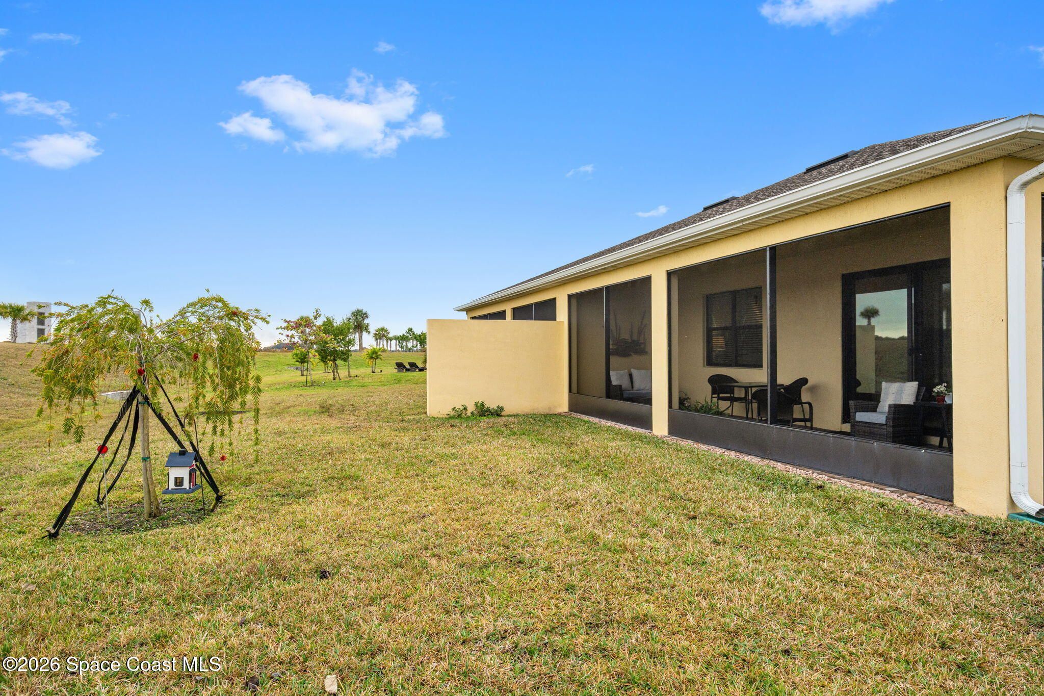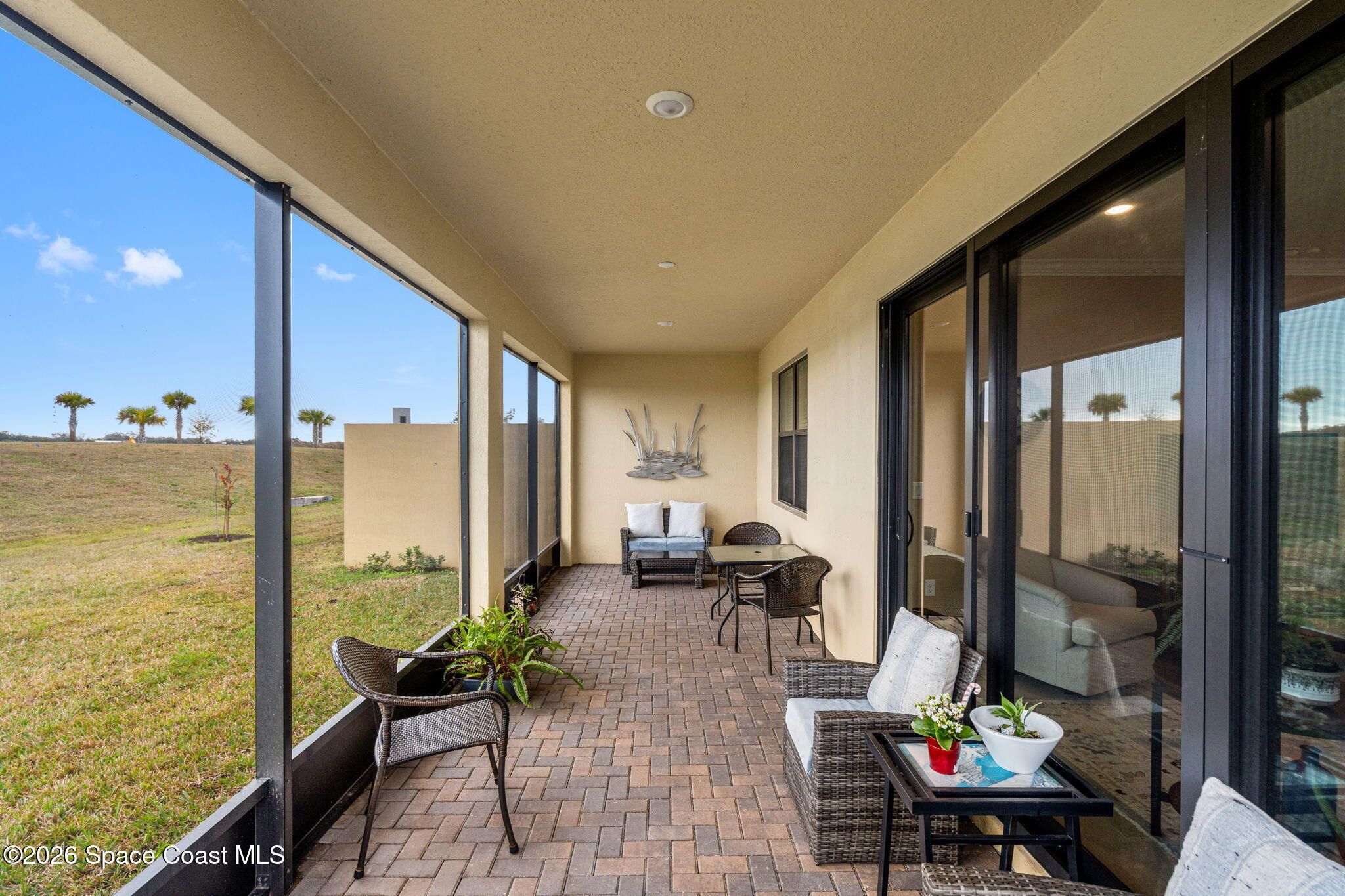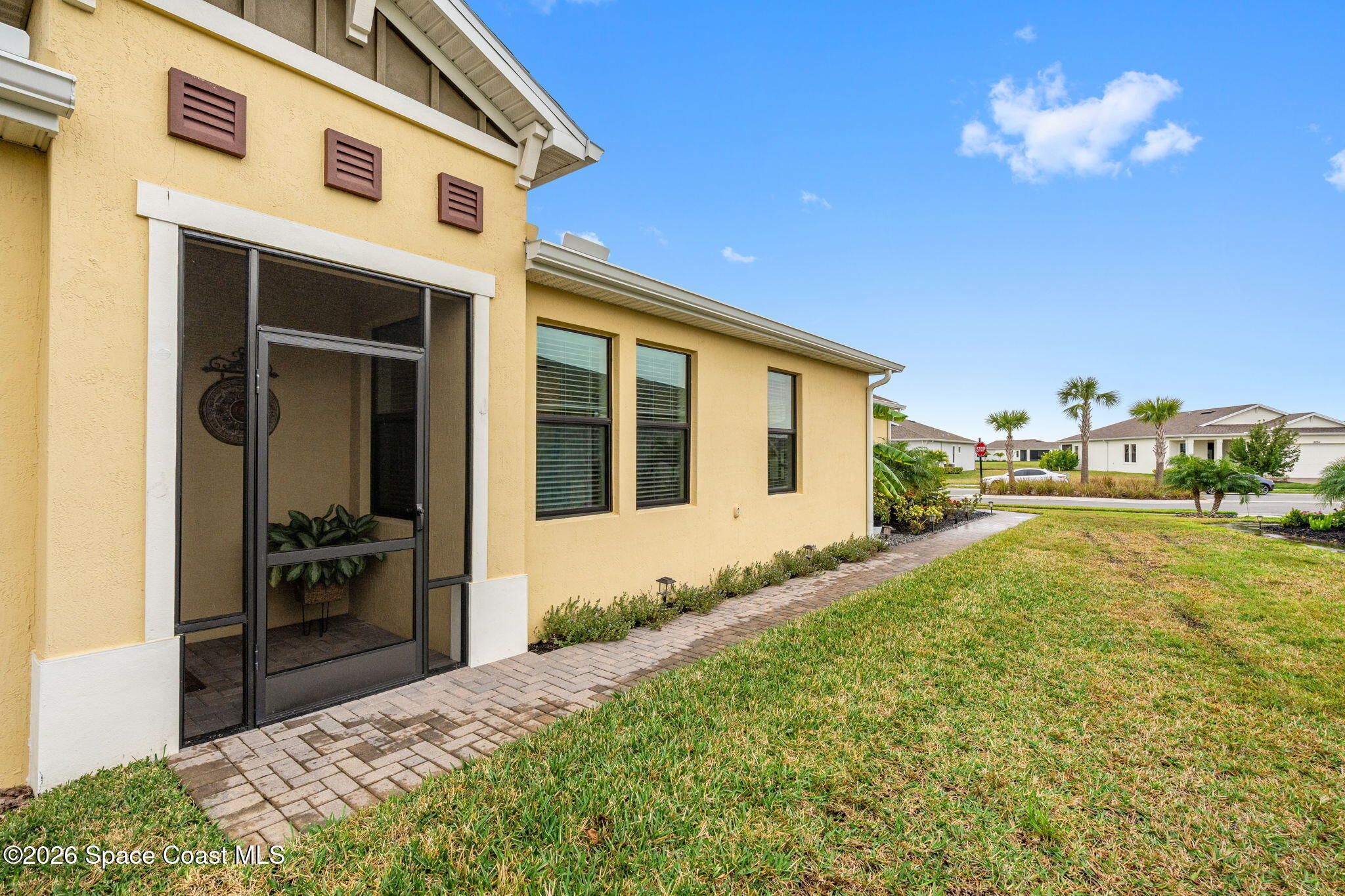 Welcome to Bridgewater of Viera, where low maintenance living meets modern coastal style. This beautifully designed 2 bedroom, 2 bath home with a dedicated office offers 1,557 square feet of open, updated space in one of Viera's most sought after 55 plus communities. Built in 2023 and finished with care, the home features walnut brown cabinets, a farmhouse sink, under cabinet lighting, crown molding, impact windows, and no carpet for easy living. The open layout feels bright and inviting, while the screened in back patio creates the perfect spot for morning coffee, evening breezes, or simply enjoying the Florida lifestyle. As a duplex, this home offers a more affordable way to enjoy Bridgewater without sacrificing comfort or quality. The washer and dryer are included, the HOA has recently been lowered, and lawn maintenance is covered so your weekends stay yours. From the resort style pool and clubhouse to tennis, pickleball, and nearby Viera shopping, everything you want is right outside your front door. A smart move today for a lifestyle you will love tomorrow.
