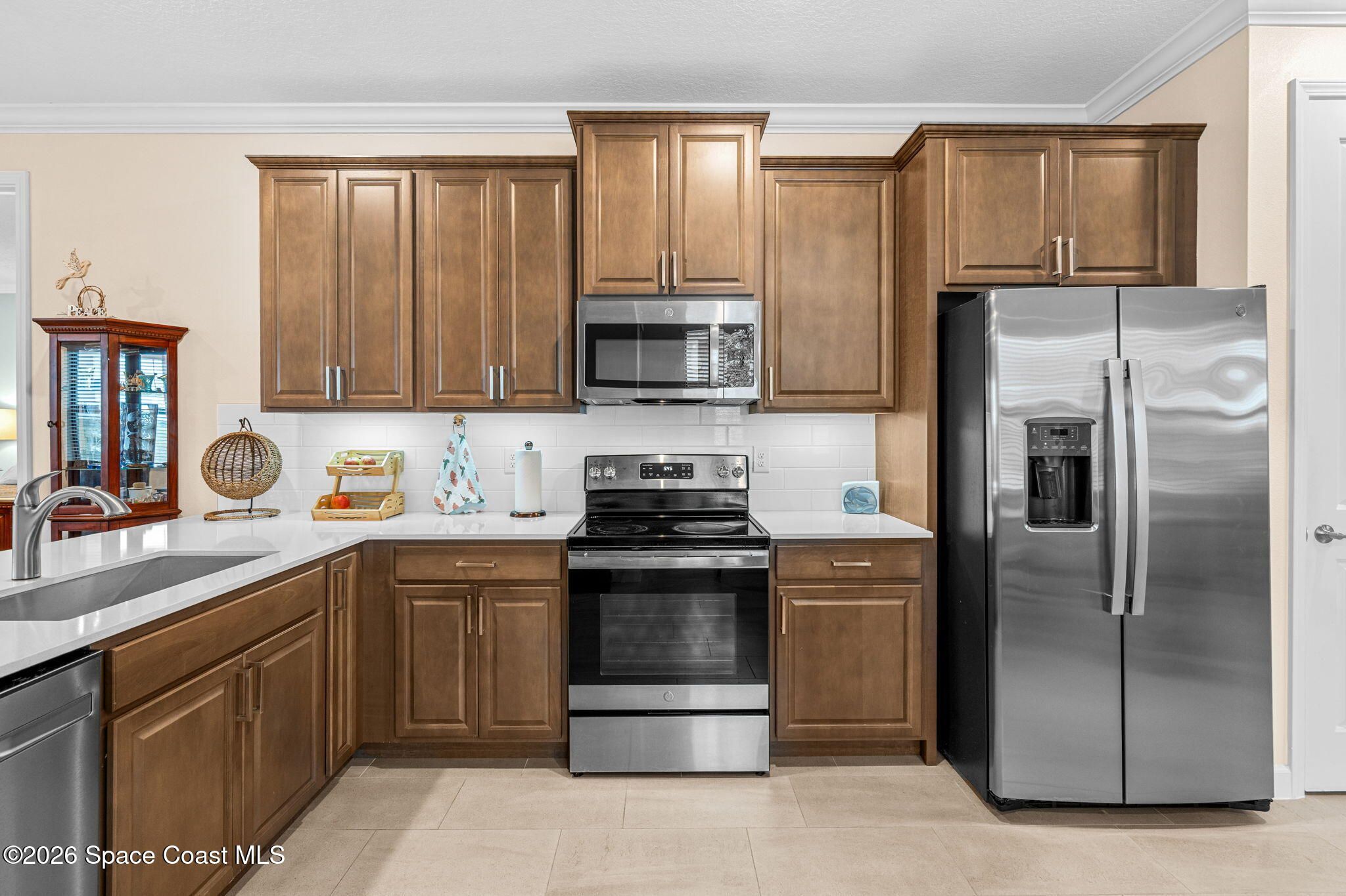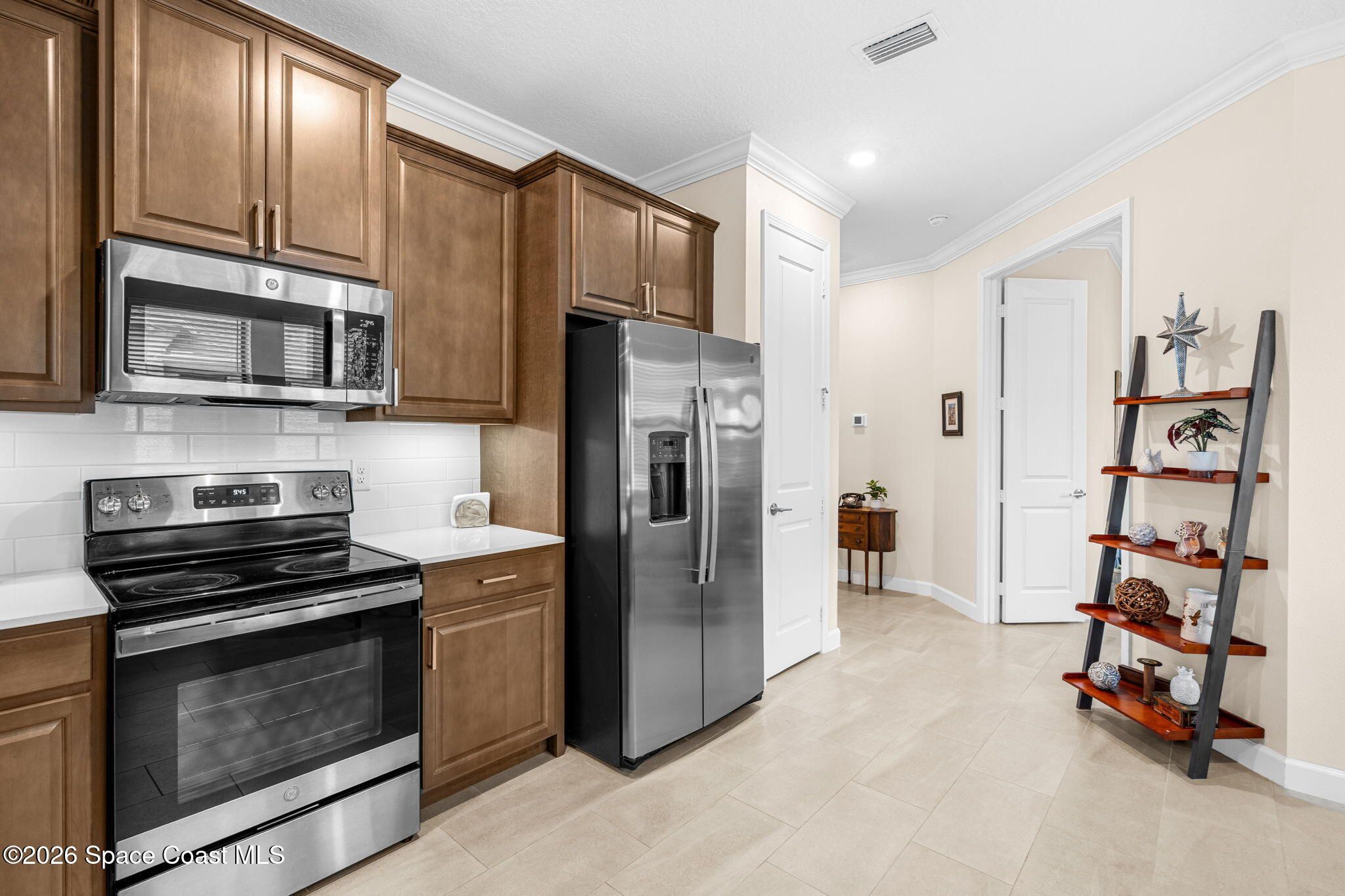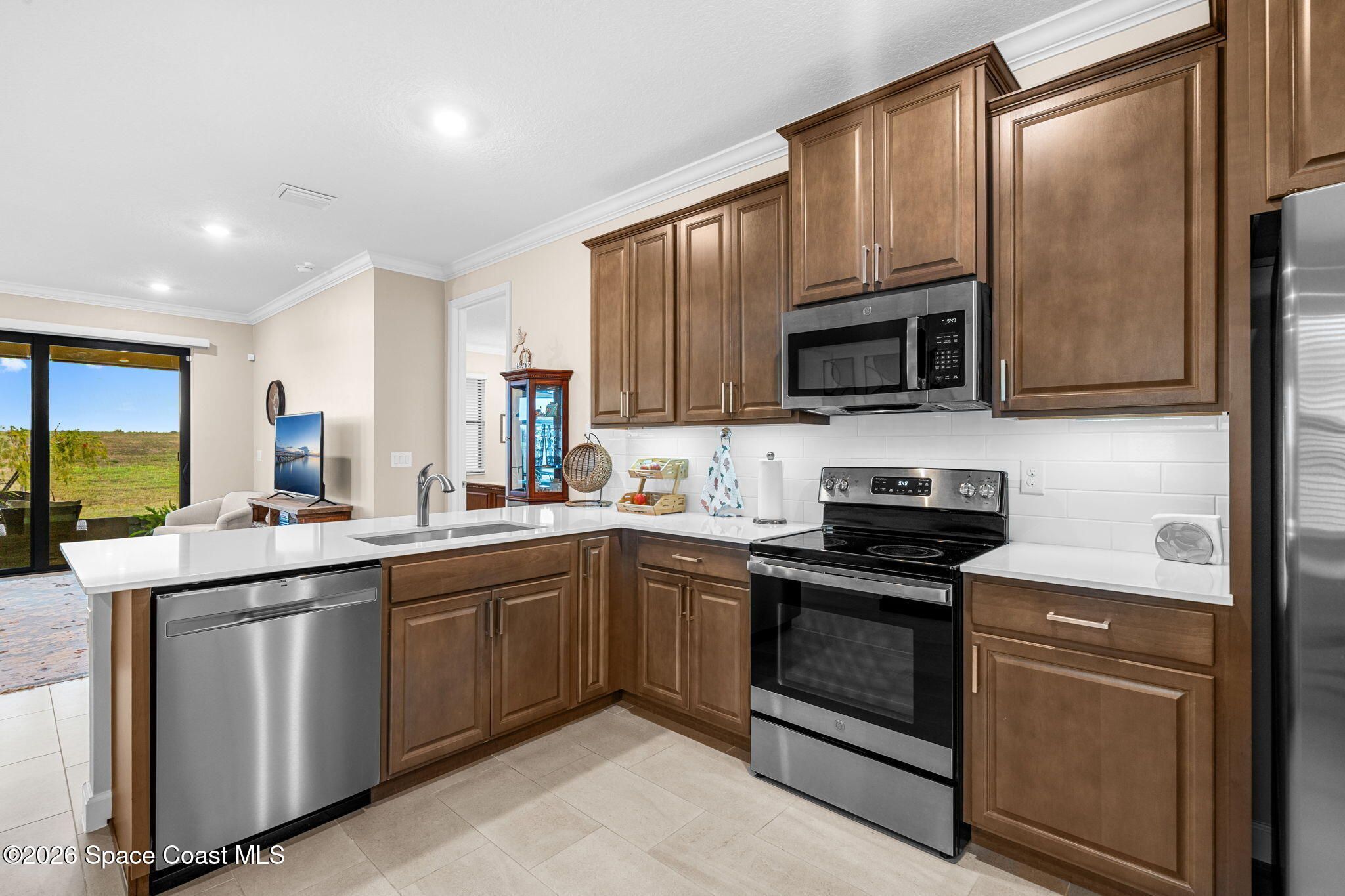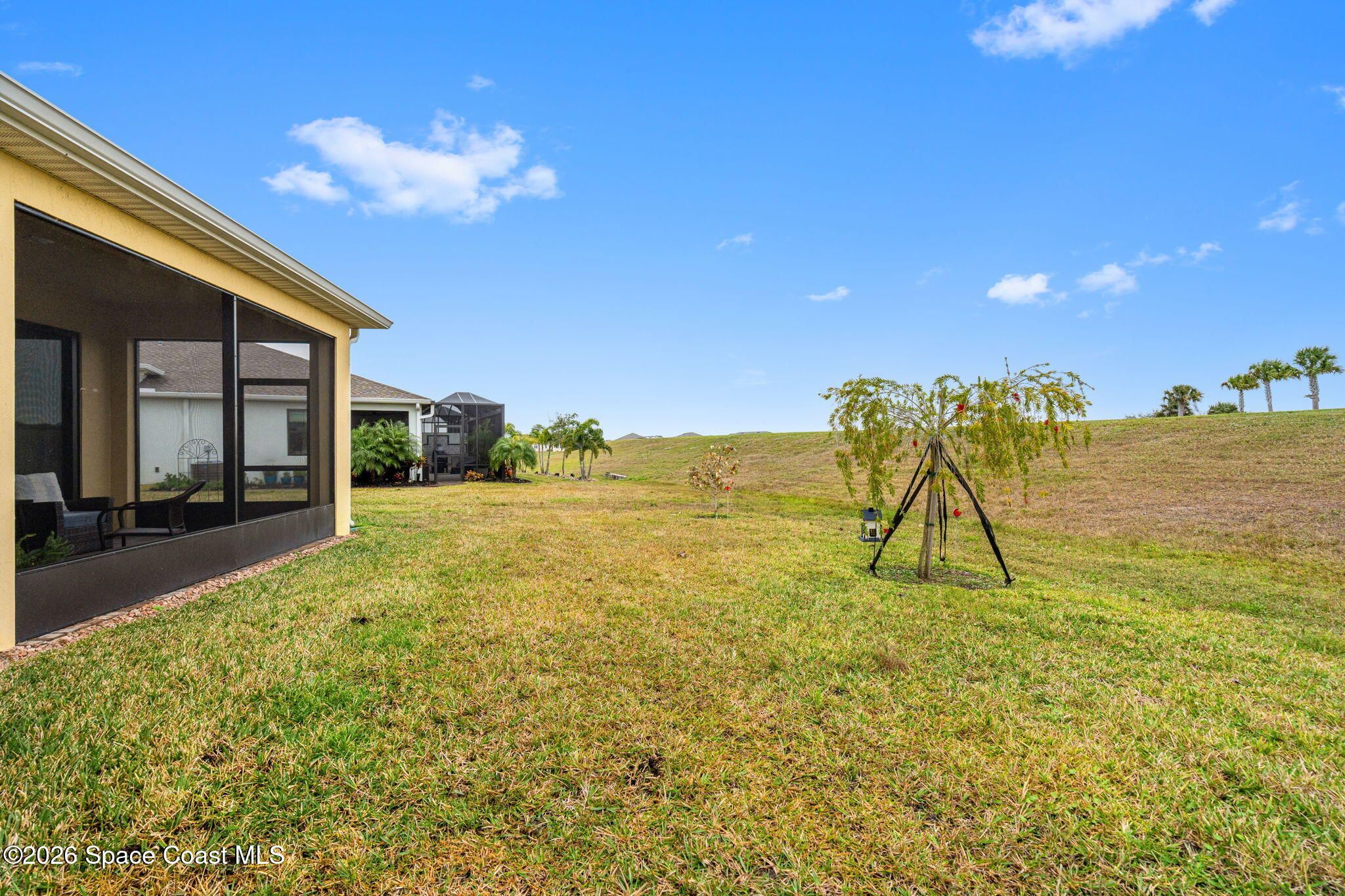 Welcome to Bridgewater of Viera, where low maintenance living meets modern coastal style. This beautifully designed 2 bedroom, 2 bath home with a dedicated office offers 1,557 square feet of open, updated space in one of Viera's most sought after 55 plus communities. Built in 2023 and finished with care, the home features walnut brown cabinets, a farmhouse sink, under cabinet lighting, crown molding, impact windows, and no carpet for easy living. The open layout feels bright and inviting, while the screened in back patio creates the perfect spot for morning coffee, evening breezes, or simply enjoying the Florida lifestyle. As a duplex, this home offers a more affordable way to enjoy Bridgewater without sacrificing comfort or quality. The washer and dryer are included, the HOA has recently been lowered, and lawn maintenance is covered so your weekends stay yours. From the resort style pool and clubhouse to tennis, pickleball, and nearby Viera shopping, everything you want is right outside your front door. A smart move today for a lifestyle you will love tomorrow.