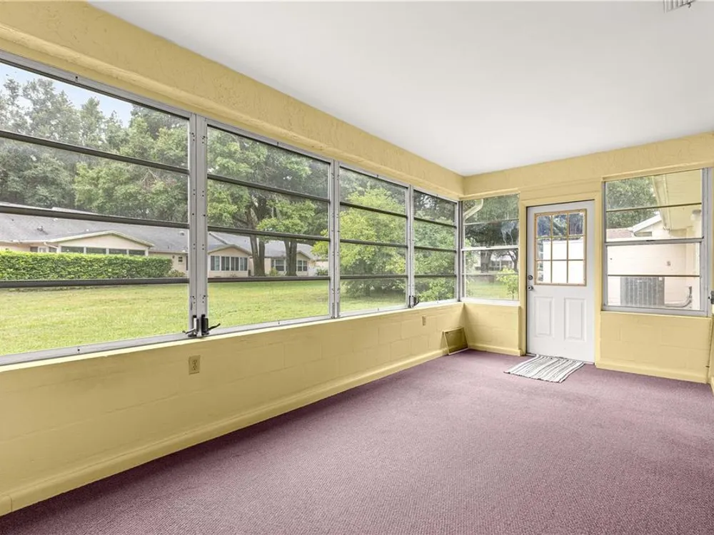 NEW PRICE - MOTIVATED SELLER! Very Popular Philadelphian Model Villa in the Friendship Colony Neighborhood of On Top of the World, a Premiere 55+ Gated Golf Community! GREEN SPACE IN FRONT! 2019 ROOF (30-year architectural shingles) & 2011 HVAC. With 2 bedrooms, 2 baths, 1.5 car garage (sufficient for a car & golf cart), and finished FL room this villa is centrally located within the community for easy access to the amenities, and front or “Lowes” gates! Cute front porch overlooking Green Space perfect for enjoying your morning coffee, or evening beverage, and meeting your neighbors! Step inside the spacious living room-dining room combo. To the right are the bedrooms with the guest bedroom in front with large-deep closet. Guest/hall bath divides the bedrooms. Guest/hall bath with tub, tile surround, and comfort height toilet. The primary bedroom is in the back right of the home for privacy and is large enough for king sized bed! There is also a large walk-in closet, and en suite bath with step-in shower and comfort height toilet! The eat-in kitchen is light and bright, with access to the 1.5 car garage, also where the laundry is located. The finished Florida room is off the kitchen. Lots of space/potential out back for patio and outside Florida living! The monthly HOA fee includes Basic Spectrum Cable, roof repair, exterior painting every seven years, irrigation water, exterior maintenance and insurance, landscaping, trash & recycling, 24/7 monitored gates and all the amenities that OTOW has to offer; three pools (2 outside & 1 inside & another under construction), two state of the art fitness centers, pickleball, billiards, archery range, corn hole, bocce ball, tennis, shuffleboard, horse shoes, remote control flying field and race cars, 175+ clubs, woodworking shop (extra fee), library, and much, much more! A golf cart community with access to three shopping centers. Centrally located 20 minutes from the World Equestrian Center, easy drive to 4 cruise ports and/or airports, and close proximity to entertainment complexes in Orlando.