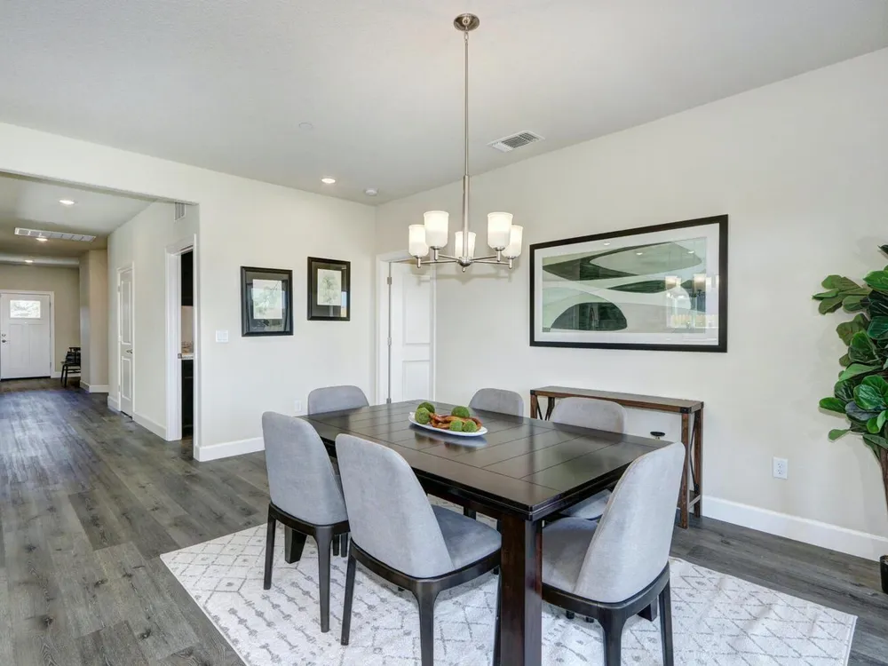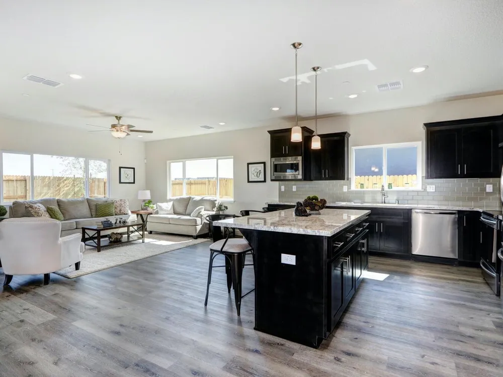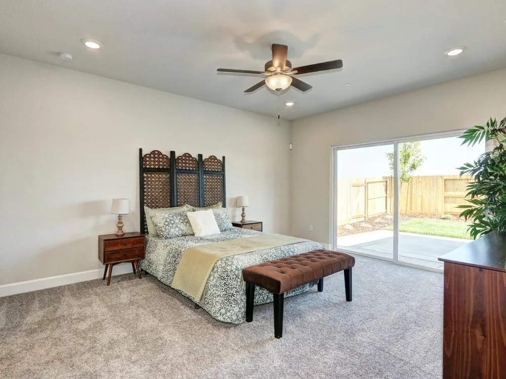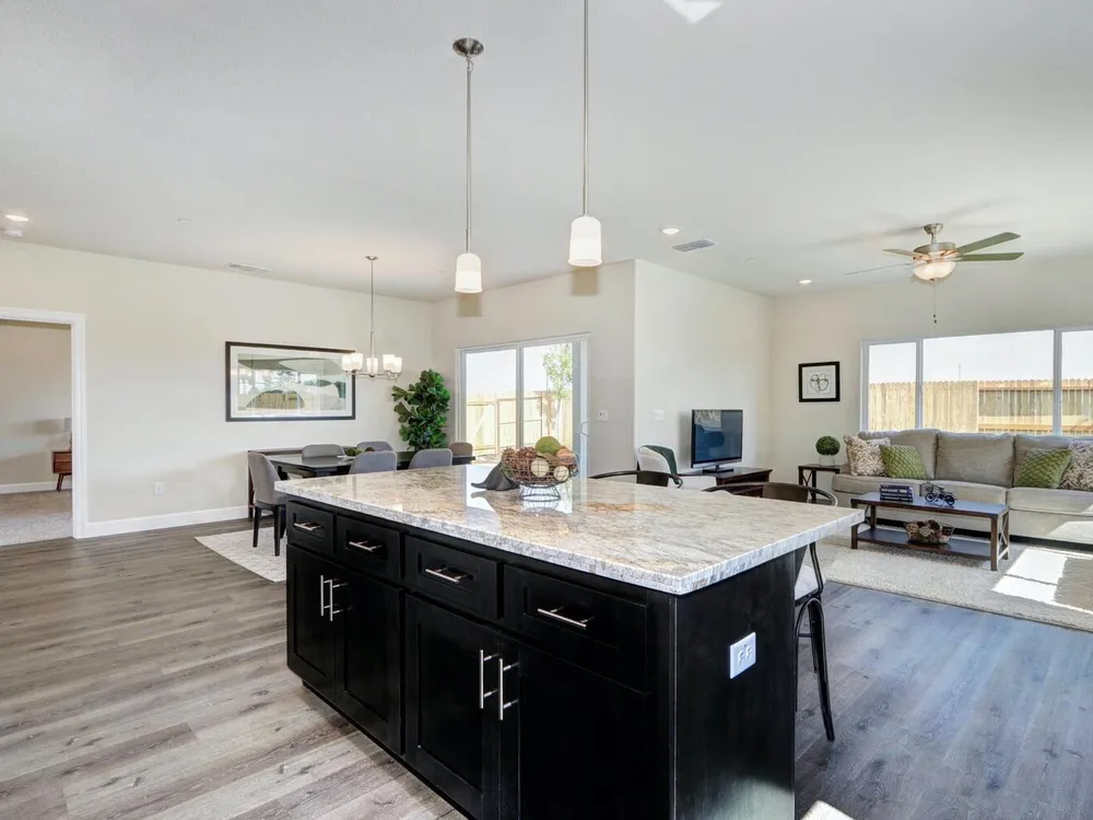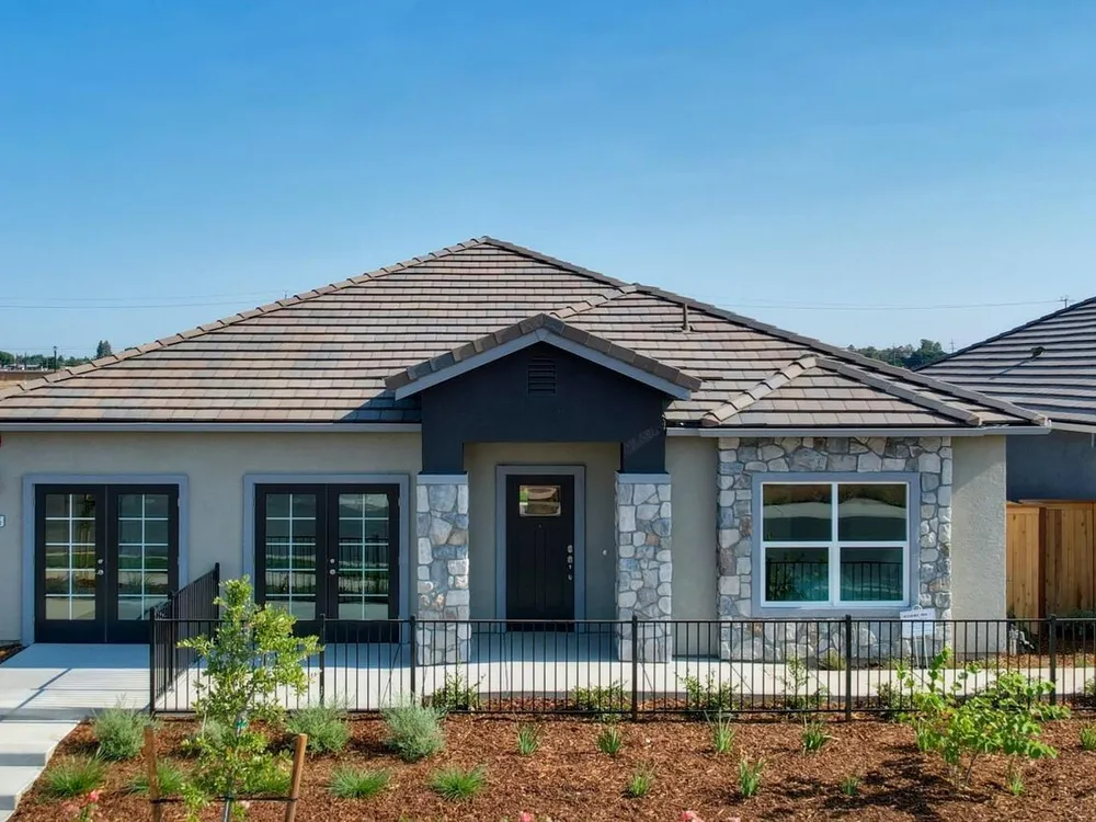 New Energy Efficient Single Story Home. This is the favorite floor-plan of many home buyers. Large suite upfront for guests, flex room (can be used as office, den, or another bedroom), open dinning & great room, beautiful owner's suite, and covered patio. Price INCLUDES fully landscaped backyard, granite counters, custom shaker cabinets, stainless steel appliances, luxury vinyl plank flooring. Dry Creek Oaks, a gated active adult community in Galt (short drive to Sacramento). 4,500 square foot clubhouse on-site with a swimming pool, pickle ball courts, bocce ball, putting green, horseshoes, walking trail. Pet friendly community with many events for residents to enjoy. Easy walk or cart ride to Dry Creek Golf Course.