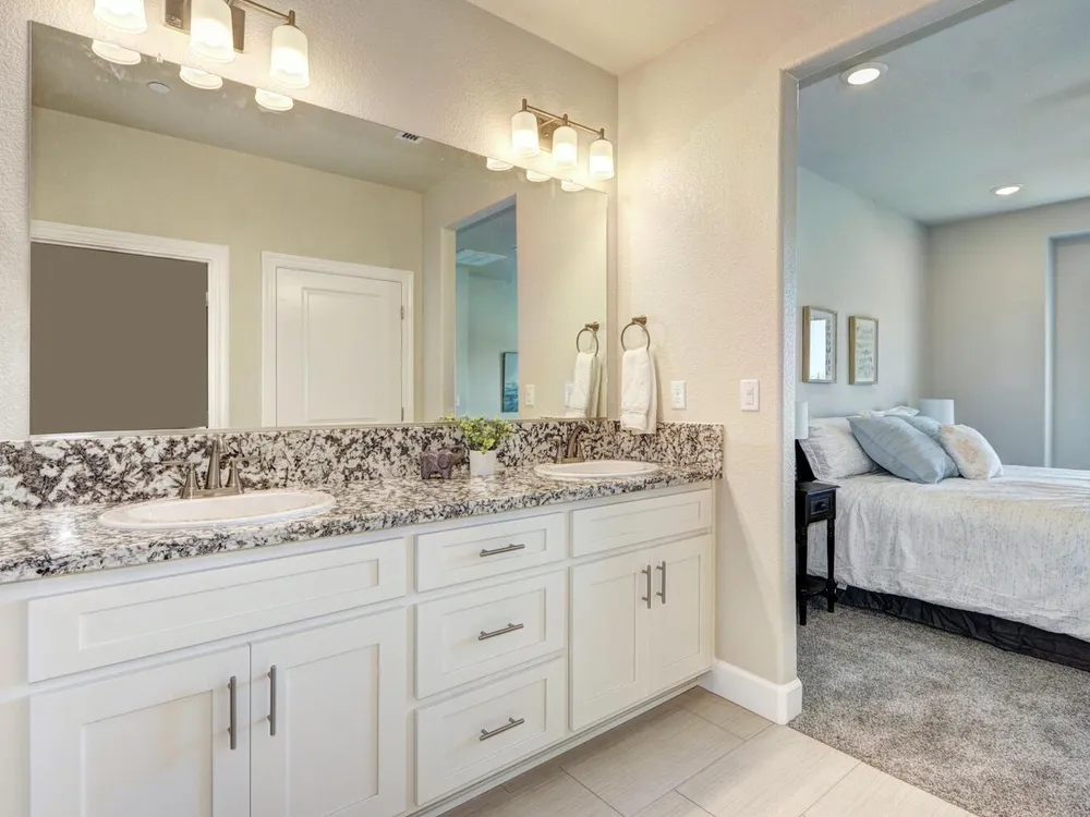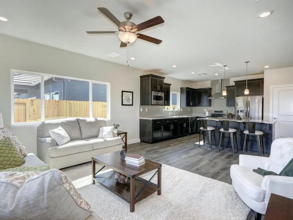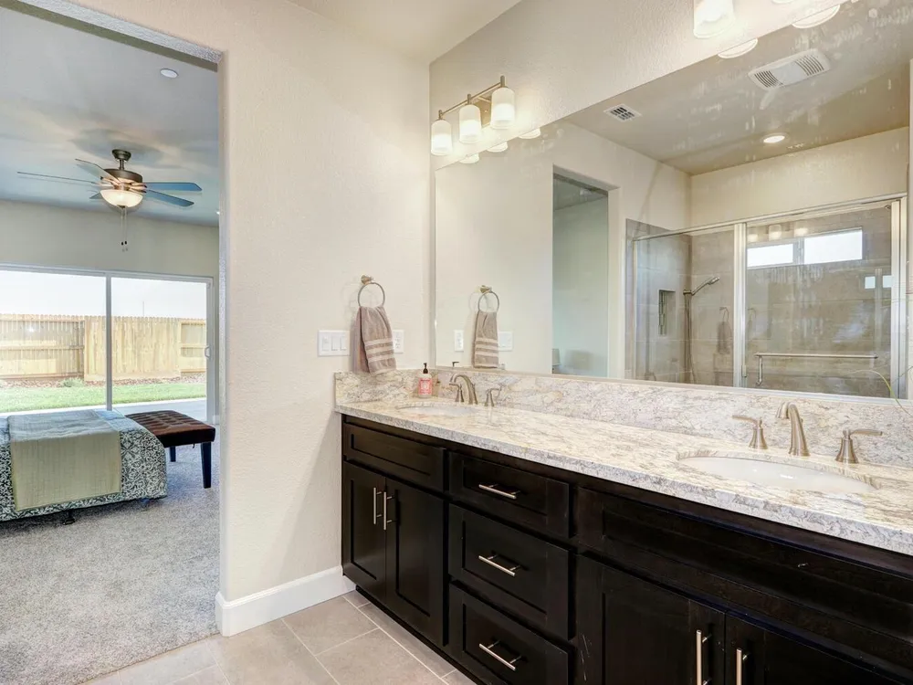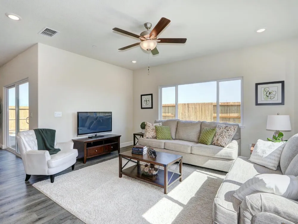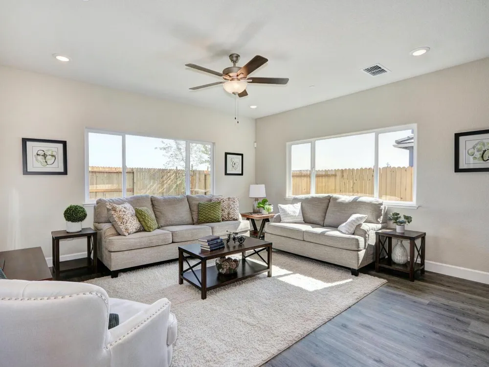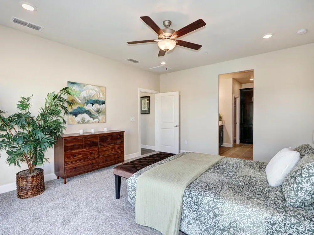 New Energy Efficient Single Story Home. This is the favorite floor-plan of many home buyers. Large suite upfront for guests, flex room (can be used as office, den, or another bedroom), open dinning & great room, beautiful owner's suite, and covered patio. Price INCLUDES fully landscaped backyard, granite counters, custom shaker cabinets, stainless steel appliances, luxury vinyl plank flooring. Dry Creek Oaks, a gated active adult community in Galt (short drive to Sacramento). 4,500 square foot clubhouse on-site with a swimming pool, pickle ball courts, bocce ball, putting green, horseshoes, walking trail. Pet friendly community with many events for residents to enjoy. Easy walk or cart ride to Dry Creek Golf Course.