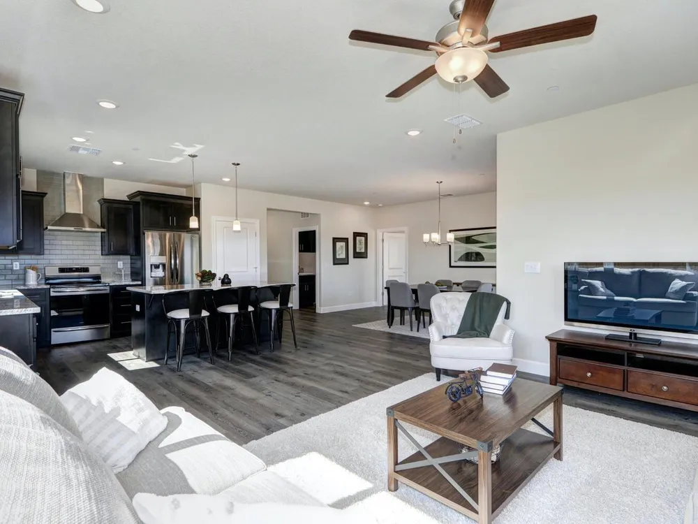 - Bedroom on Main Level, Dining Room, Family Room Lower Level, Primary Bedroom, Full Bathroom, Kitchen, Lower-Level Entry