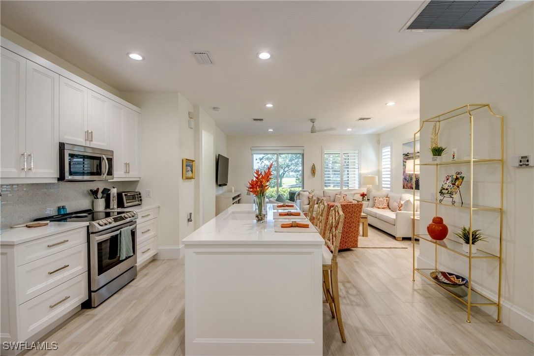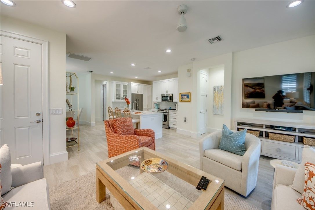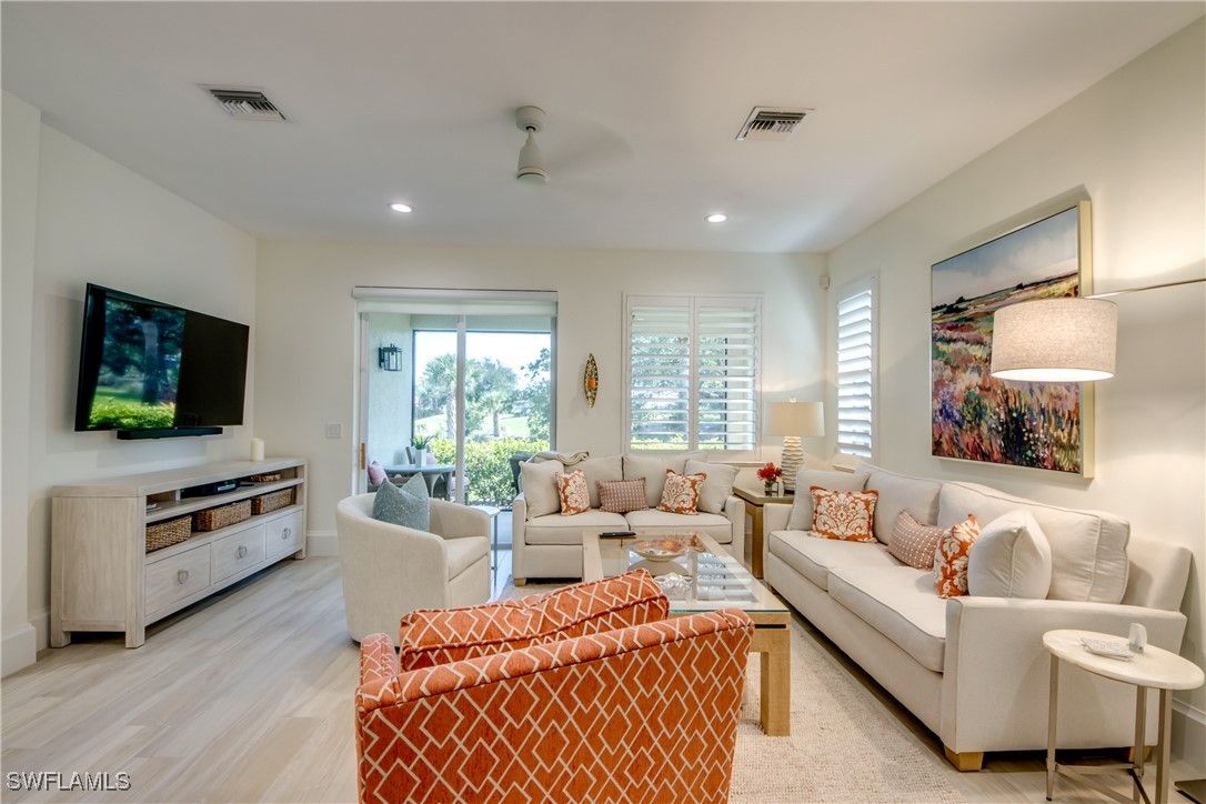 looking for something bigger than a condo with a garage? This Villa at Aviano in Pelican Preserve is just fabulous and has everything you need to feel at home! It has been fully updated with new cabinets, flooring, professionally decorated by a reknowed Naples Designer. The kitchen has a reconfigured new island for entertaining with white stone. top end appliances and new furniture. Elites floor in garage, 2nd bedroom is furnished as a comfortable den. laundry room is even well appointed! Located inside Pelican Preserve a top active over 55+ community! If you are looking for a classy comfortable space with attention to every detail but don’t need a big house and don’t want a giant price tag, this villa has everything you need. furnished turnkey with the new golf cart included. This home is waiting for the right owner who appreciates quality finishes and attention to every detail