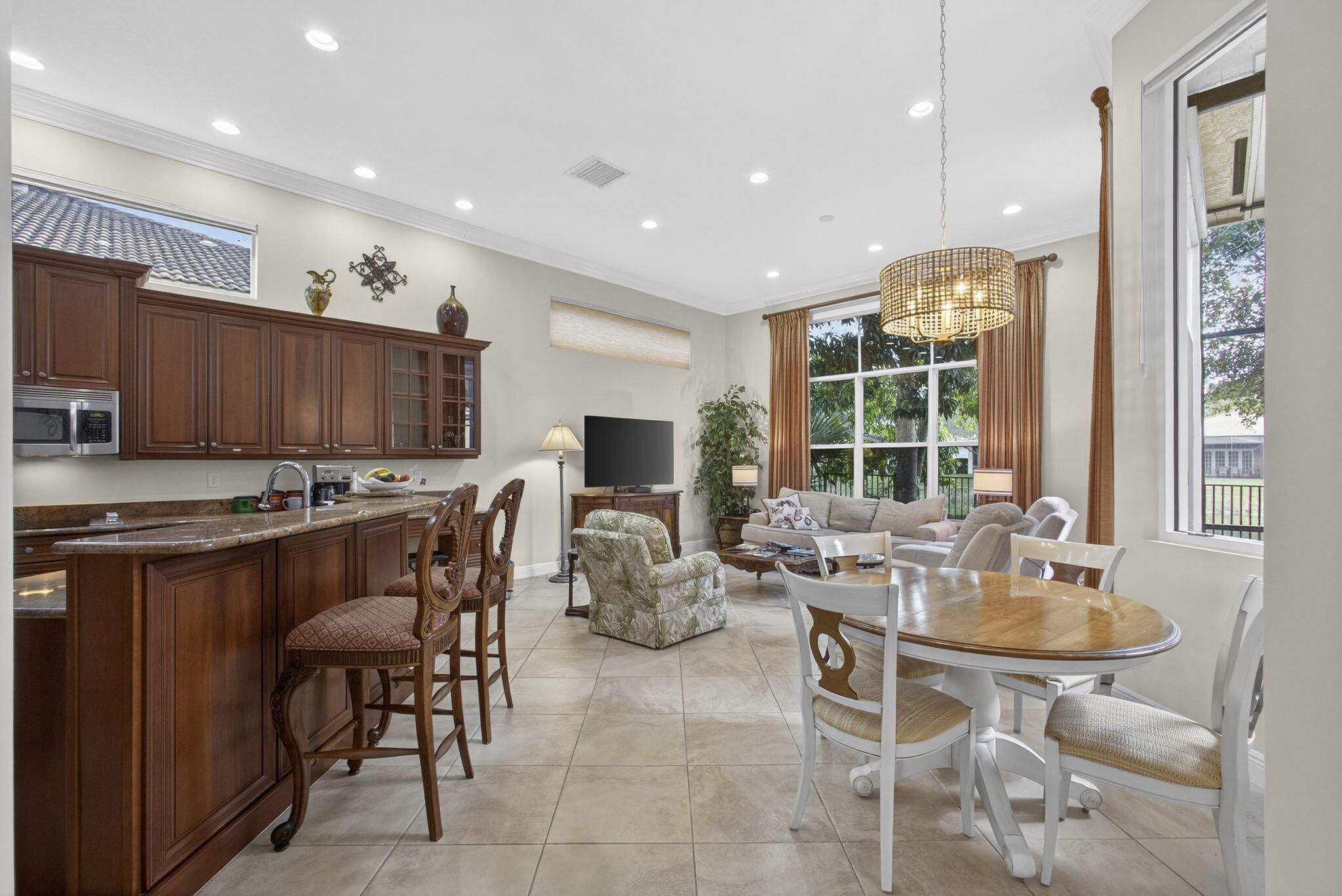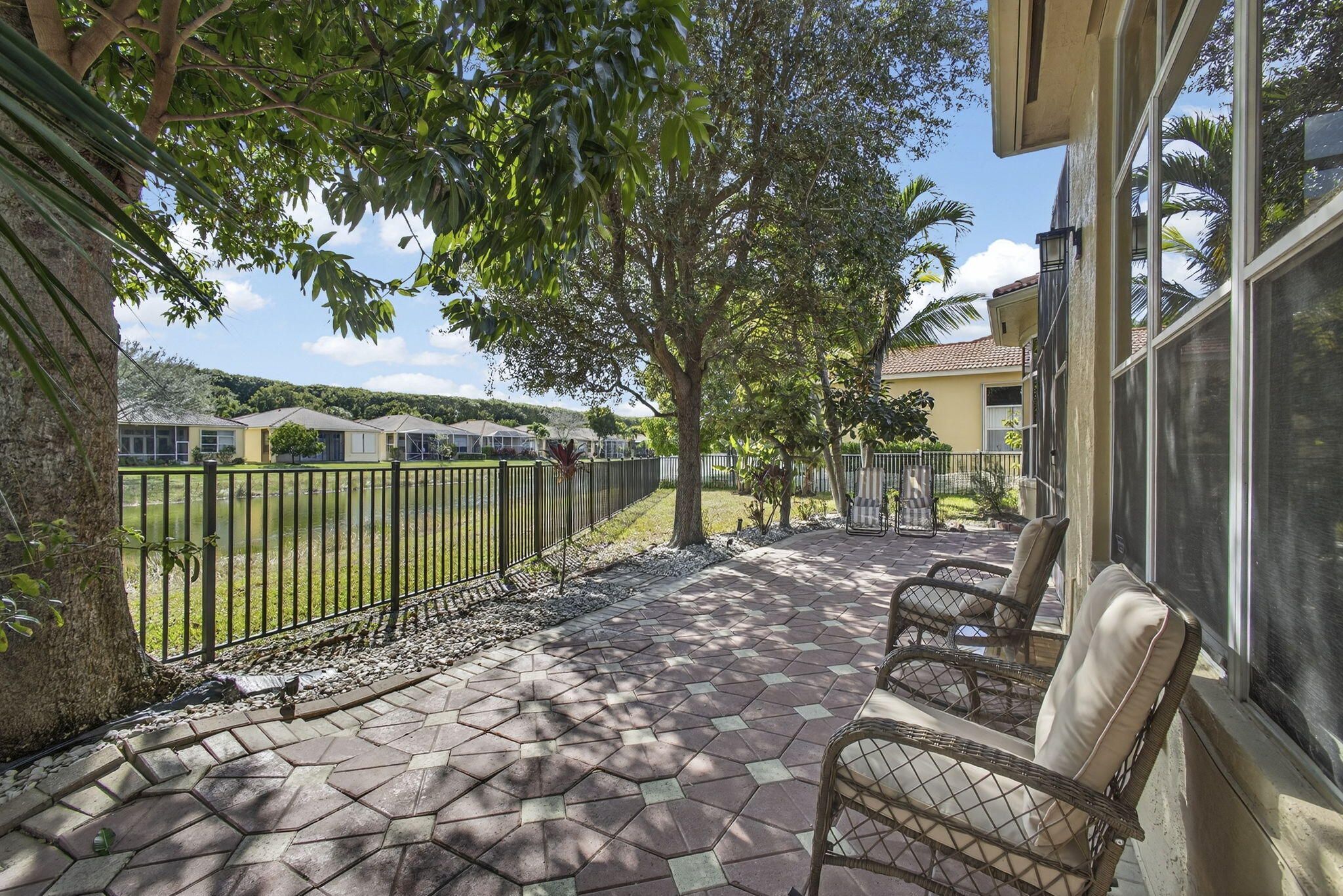 Wellington's Buena Vida community reflects the good life, with resort style community living. The featured home is one of the estate series properties offering 3 bedrooms, 2 full baths and one half bath with 2,708 SF of grand living space. This lakeside residence is elegantly appointed with a grand owners suite encompassing a spacious bedroom, attached sitting room, custom built dressing room & closet, and a richly designed owner bath. The grand kitchen area features granite counters and warm natural wood cabinets, and newer variety of stainless steel appliances. The split floor plan provides two guest bedrooms. At the hub of the home is a grand living room and formal dining area for perfection in your entertaining. Enjoy outdoor living from a screened lanai towards a tropical oasis.