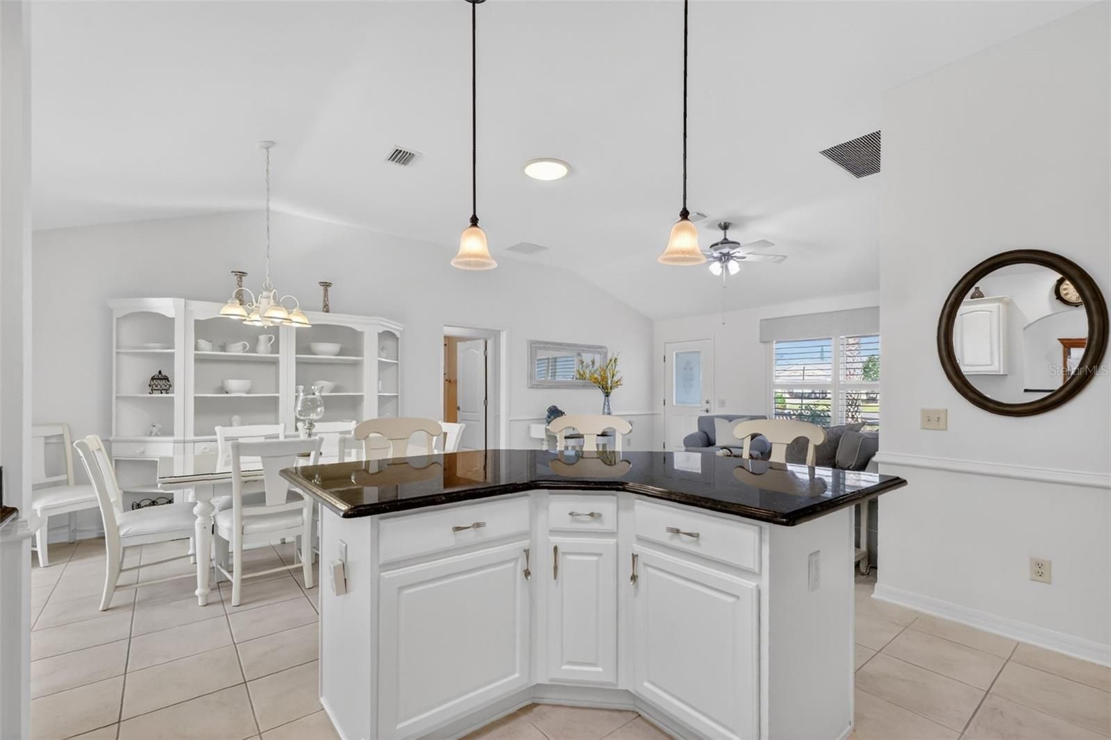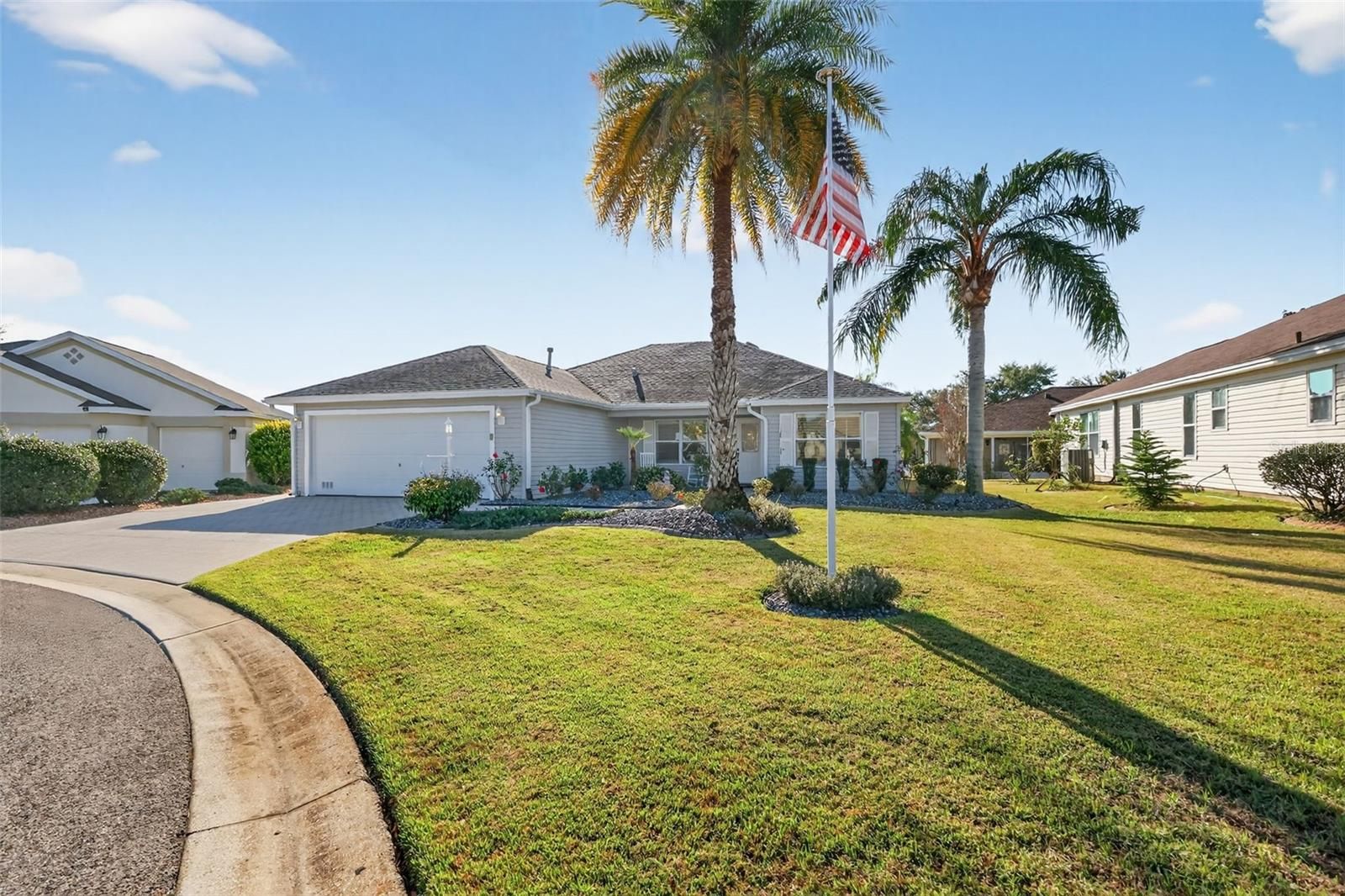 Welcome to this STUNNING, TURNKEY 3/2 Bougainvillea with an EXPANSIVE 29’x15’ ADDITION and an IMMENSE 841SF TWO-CAR + GOLF CART GARAGE, IDEALLY LOCATED on an EXPANSIVE CUL-DE-SAC LOT in the Village of Virginia Trace —between County Roads 466 and 466A and JUST MINUTES from Lake Sumter Landing with shopping, dining, and live nightly entertainment right at your fingertips! This MOVE-IN READY home truly has it all—BOND PAID! ROOF (2020), HVAC (2023) From the moment you arrive, you’ll be impressed by the DECORATIVELY PAINTED drive and walkways, stone-accented CURBED landscape beds, and CHARMING front porch—an inviting spot to relax and enjoy Florida’s beautiful weather! Inside, high VAULTED ceilings and an OPEN-CONCEPT design seamlessly connect the living, dining, and kitchen. TILE flooring flows seamlessly throughout the main living area, while two SOLAR TUBES provide abundant natural light, and CHAIR RAILING adorns the walls. For a touch of ELEGANCE, PLANTATION SHUTTERS can be found on the windows throughout the home. The AMAZING kitchen features WHITE cabinetry, PULL-OUTS, STAINLESS appliances with GAS cooking, and an U-shaped CENTER ISLAND with a EAT-IN counter-height breakfast bar—perfect for casual dining and entertaining. From the dining area, step into the EXPANSIVE 29’x15’ ADDITION of the combined dinette and family room boasting RICH, WOOD-GRAIN LAMINATE flooring. This FABULOUS room adds approximately 390SF of under-air living space! A set of French doors open to the SPACIOUS lanai with TILE floors and EXTENDED OUTDOOR PATIO with MATURE PRIVACY LANDSCAPING. This WONDERFUL OUTDOOR RETREAT offers the perfect spot to enjoy your morning coffee, sip an evening cocktail, or relax with a good book! Back inside, the luxurious primary suite offers RICH, WOOD-GRAIN LAMINATE floors, CROWN MOLDING, TWO WALK-IN closets, and an en-suite bath with WOOD cabinetry, GRANITE countertops, DUAL sinks, and a TILED WALK-IN shower. Designed with PRIVACY in mind, the SPLIT FLOOR PLAN includes a SEPARATE guest wing and/or home office behind a POCKET DOOR. Bedroom two features a built-in closet and a large window. The second bathroom includes a WOOD vanity with a GRANITE top, TILED tub and shower combination, and a convenient hallway LINEN closet. The third bedroom offers double windows and a built-in closet. A centrally located interior laundry room provides additional storage with WHITE cabinetry and an extra refrigerator. Just beyond, the OVERSIZED two-car garage features PAINTED flooring, WHITE cabinetry, UTILITY sink, and a WORKBENCH. There’s also an ADJACENT GOLF CART GARAGE boasting EPOXIED flooring, attic access with pull-down stairs, and a convenient door to the lanai. Together, both garages total approximately 841SF of parking and storage area! DON’T MISS YOUR OPPORTUNITY TO MAKE THIS INCREDIBLE TURNKEY HOME YOUR OWN! The Village of Virginia Trace offers an UNBEATABLE LOCATION - JUST MINUTES to Lake Sumter Landing - where you’ll find an array of shopping, dining, and live nightly entertainment! You’ll also be close to Mallory Hill and Arnold Palmer Country Clubs and Championship Golf Courses. Health enthusiasts will love the proximity to the Lake Miona Regional Recreation Center and Fitness Trail. This home is truly a gem, located in one of the most desirable neighborhoods in The Villages! PLEASE WATCH OUR WALKTHROUGH VIDEO of this GORGEOUS, MOVE-IN READY HOME in a FANTASTIC LOCATION and call today to schedule your Private Showing or Virtual Tour!