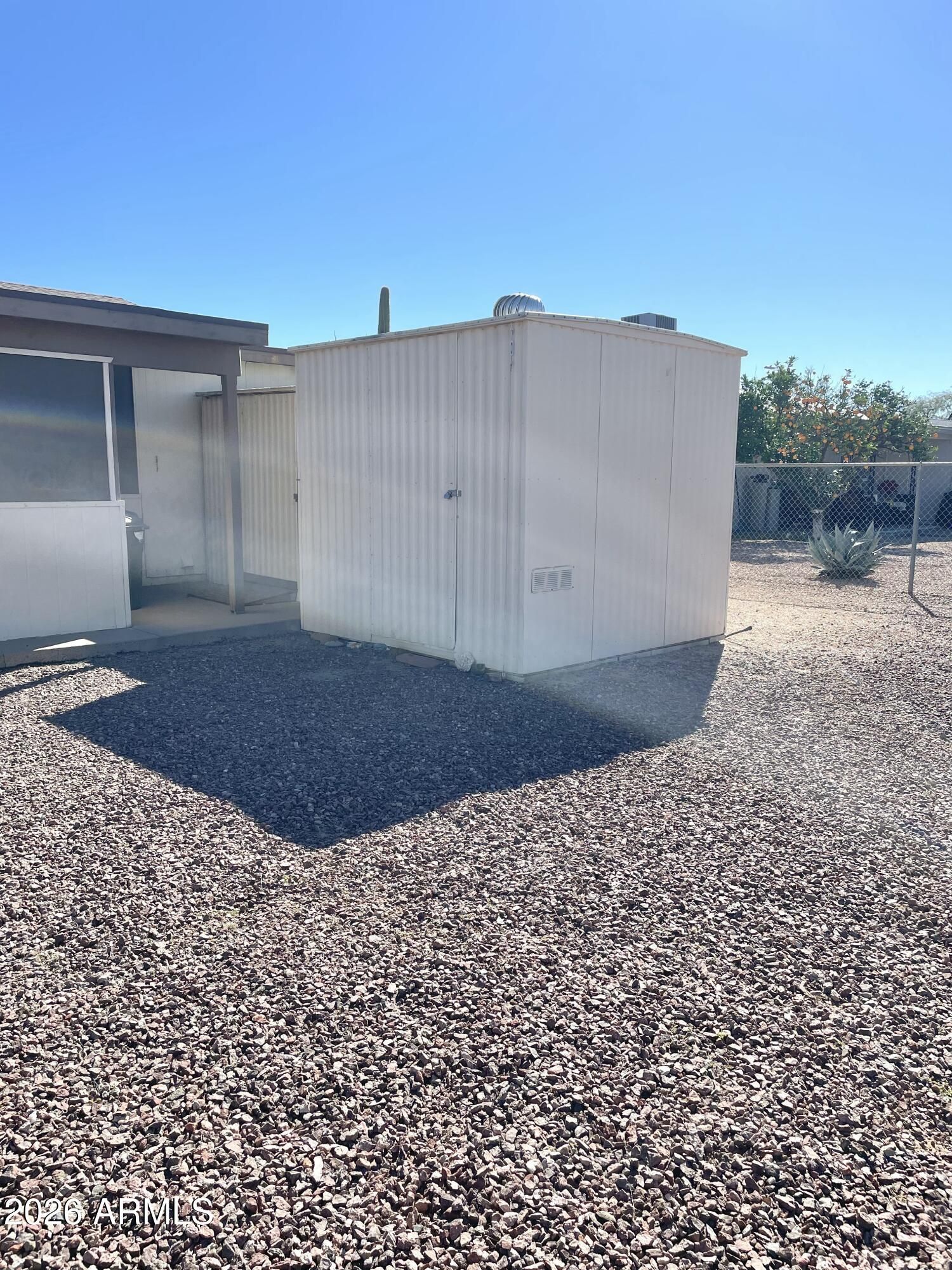 Don't miss this highly desirable 2-bedroom, 2-bath home in Apache Villa, a sought-after 55+ community and the HOA membership is optional. Pride of ownership shines throughout this move-in ready home remodeled in 2012. Wood-look flooring flows through the main living areas, with tile in all the right places. The eat-in kitchen is well appointed with newer appliances, beautiful wood cabinetry and granite countertops. The spacious primary bedroom features a walk-in closet and an adjacent full bath. The second bedroom offers an en-suite bath, two closets, and additional storage, ideal for guests. The dining area, currently used as a home office, opens to a covered, screened-in patio perfect for indoor-outdoor living. Step outside to a large, low maintenance backyard with endless potential. The property includes a screened-in patio, two storage sheds with power (one currently used as a workshop), an RV gate with RV storage and hookups, and plenty of room to make it your own. HOA membership is optionaljoin to enjoy access to pickleball, a heated pool and spa, fitness center, billiards, water aerobics, library, and a wide variety of clubs and activities. Major updates include a newer roof, HVAC, water heater, and exterior paint. Enjoy comfortable living and a true resort-style lifestylethis one is not to be missed!