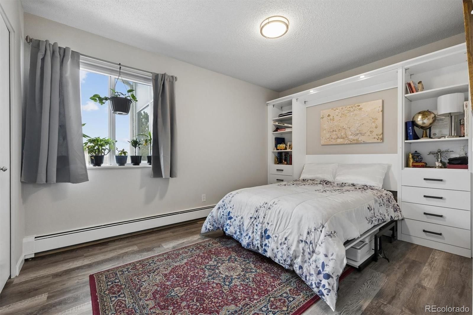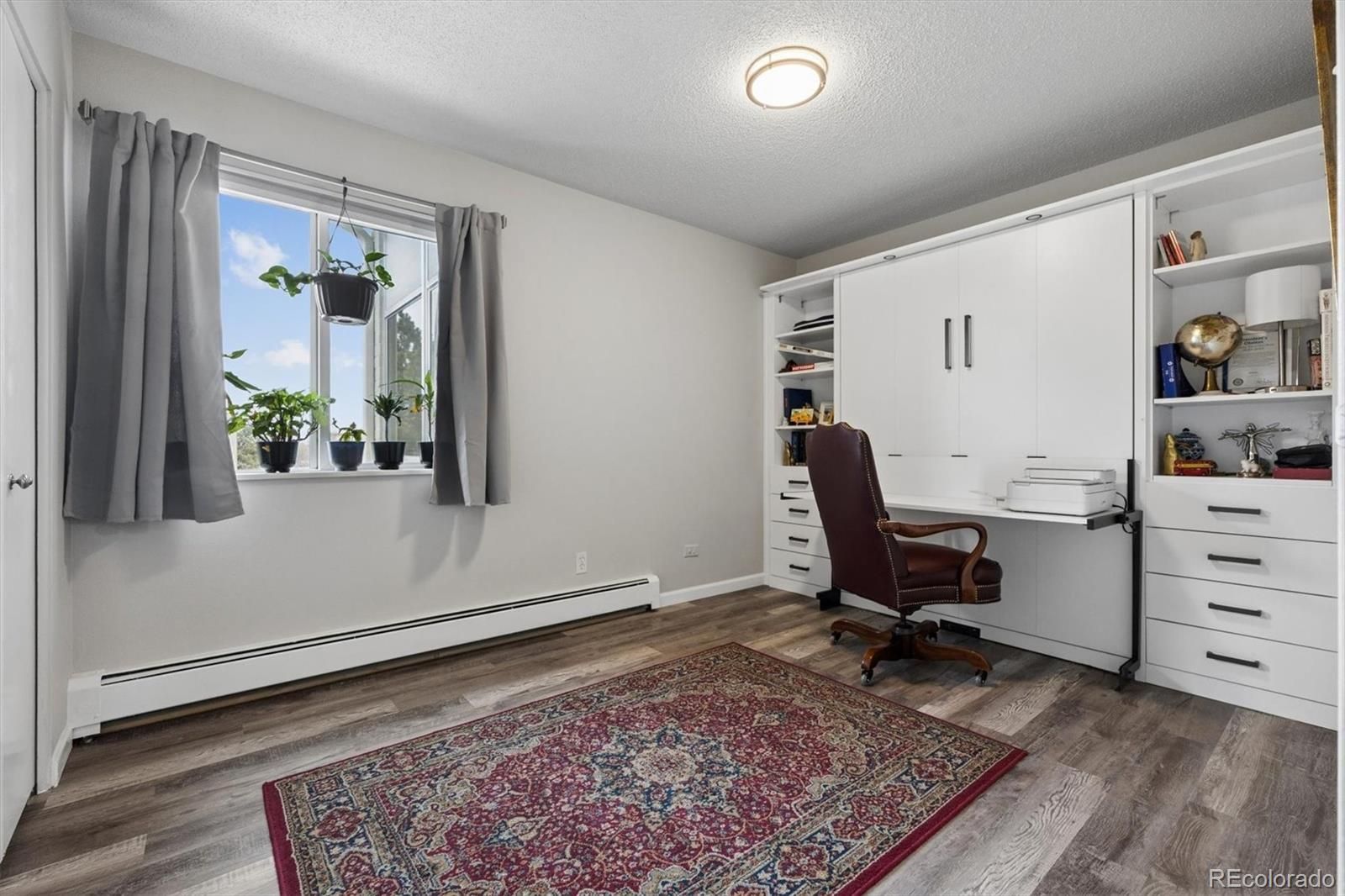 Welcome home to 9385 E Center Ave #12D, a beautifully updated 945 sq ft residence in Windsor Gardens — Denver’s premier 55+ community offering resort-style amenities and an active, maintenance-free lifestyle.Located on the 4th floor, this desirable home features vaulted ceilings that create an airy, spacious feel rarely found in the community. The elevated position not only enhances privacy but also fills the home with wonderful natural light.Convenience begins the moment you arrive, with underground parking space #88 ideally situated right next to the building entrance — making daily living effortless in every season.Inside, you’ll appreciate the thoughtful upgrades throughout. The kitchen showcases warm golden/honey-toned oak cabinetry with under-cabinet lighting and a decorative backsplash, paired with a stainless steel appliance package. The convection cooktop/oven includes air fry and conduction features, blending modern functionality with classic style.Beautiful LVT wood flooring flows seamlessly throughout the home, complemented by updated lighting for a bright, cohesive look. The bathroom has been completely renovated with a stunning walk-in shower, featuring a new shower pan and surround, upgraded plumbing, and added grab bars for comfort and peace of mind.The versatile second bedroom includes a custom-built bookcase and dresser system with an integrated Murphy bed — perfect for hosting guests while maintaining ideal office or hobby space. In the primary bedroom, enjoy a brand-new GE A/C unit, a new ceiling fan with remote, and enhanced front door security for added confidence and comfort. The enclosed lanai is highlighted by a high-end, double-pane Pella sliding door, providing energy efficiency while inviting in natural light and extending your living space year-round.Living in Windsor Gardens means access to golf, a fitness center, clubhouse, pools, activities, and beautifully maintained grounds. Schedule your showing today!