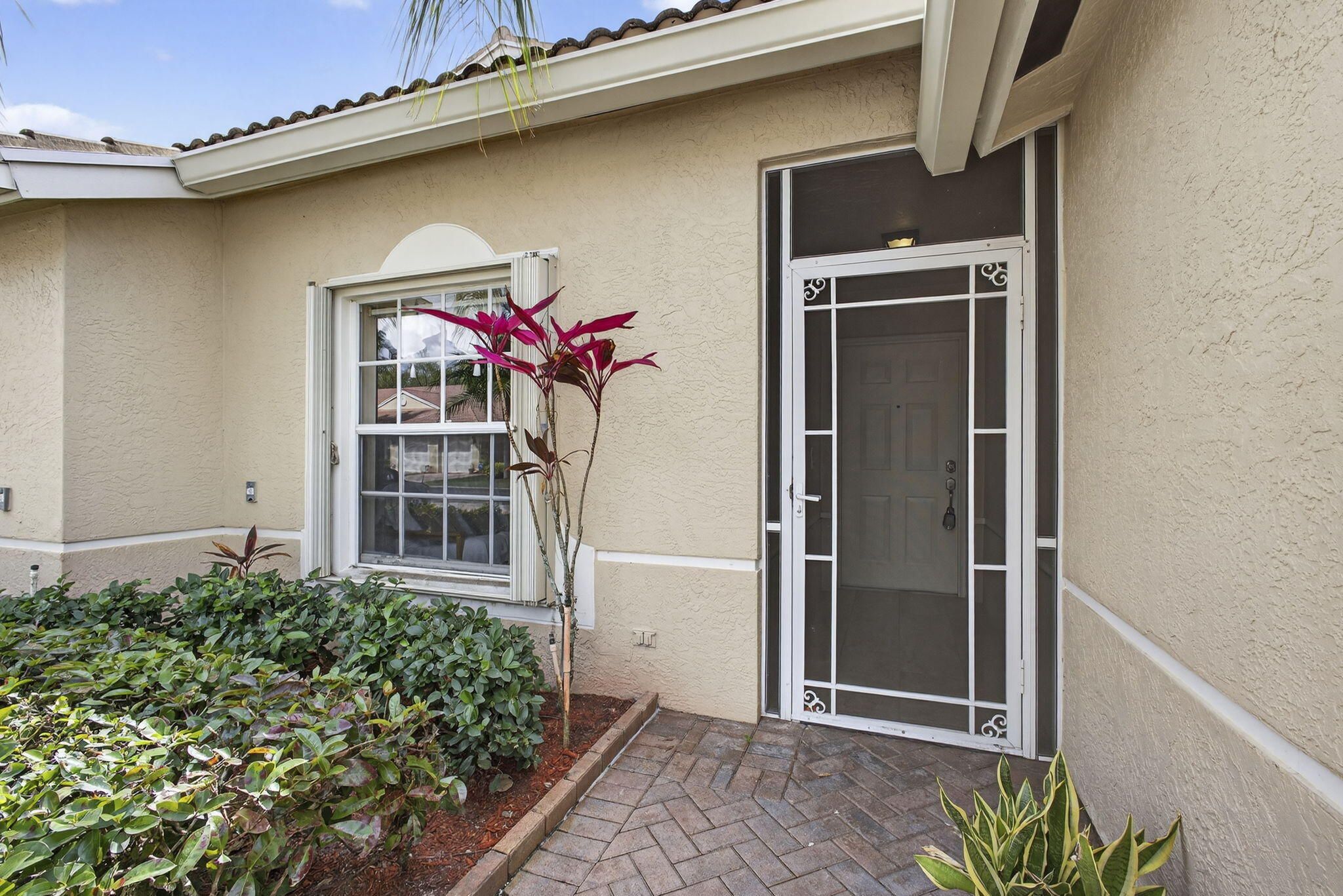 Ideally situated in Bridgeport directly across from the clubhouse, this charming 2BR/2BA villa with den and 1 car garage offers comfort, convenience, and serene lake views. Enjoy peace of mind with a 2021 roof and water heater, 2023 A/C, plus accordion shutters throughout. The home features an open-concept layout, vaulted ceilings, a split-bedroom design for privacy, a spacious eat in kitchen with ample cabinetry, a den/office with built ins, and a large great room with sliders leading to an extended screened patio overlooking the lake perfect for year round or seasonal living. Maintenance fee includes ADT security, cable, internet, and landline. All in a prime location near shopping, dining, downtown West Palm Beach, the Turnpike, I 95, PBI Airport, beaches, golf, and cultural venues.