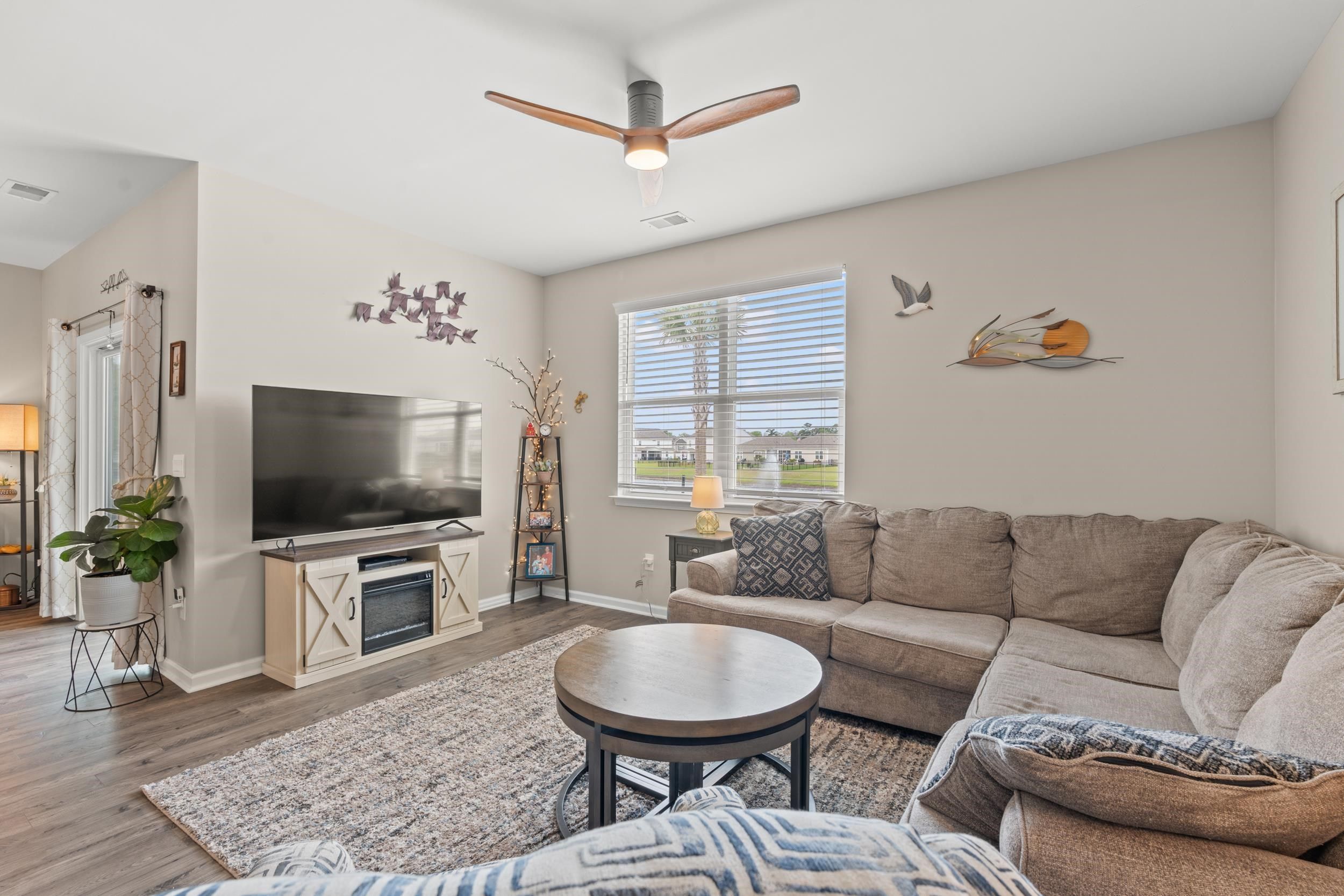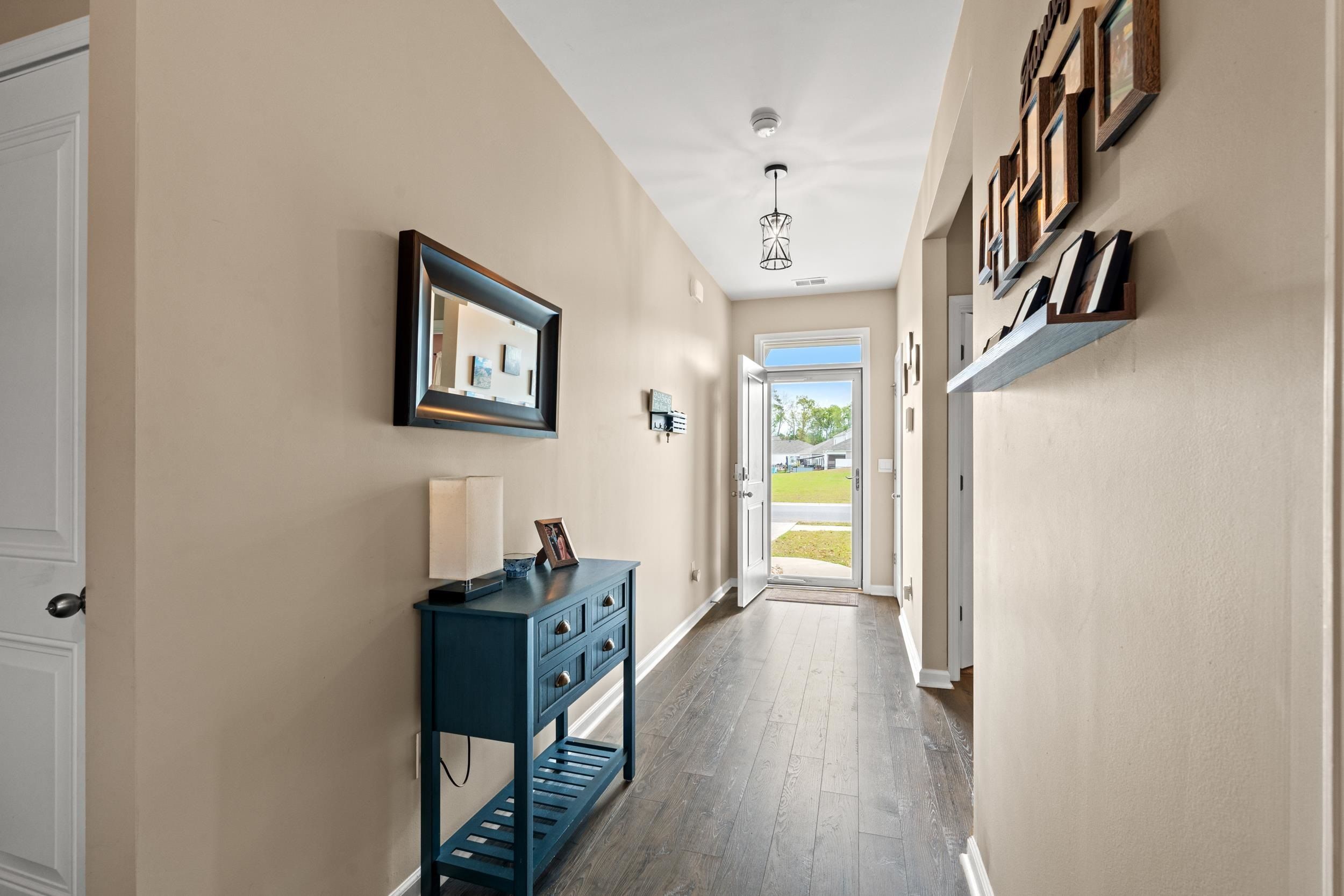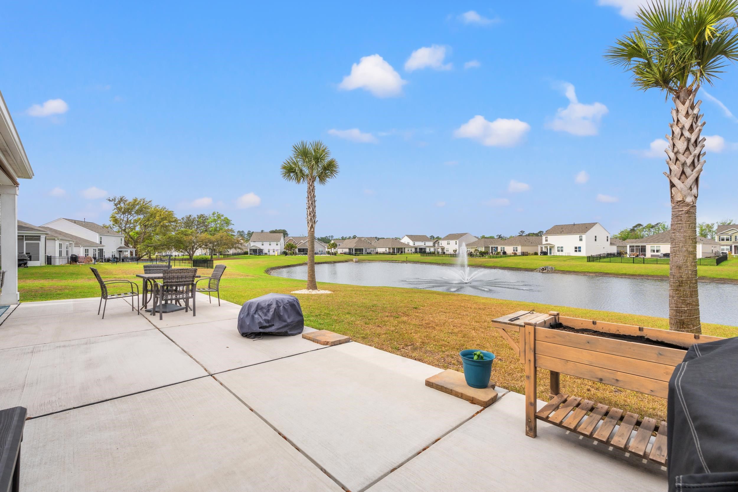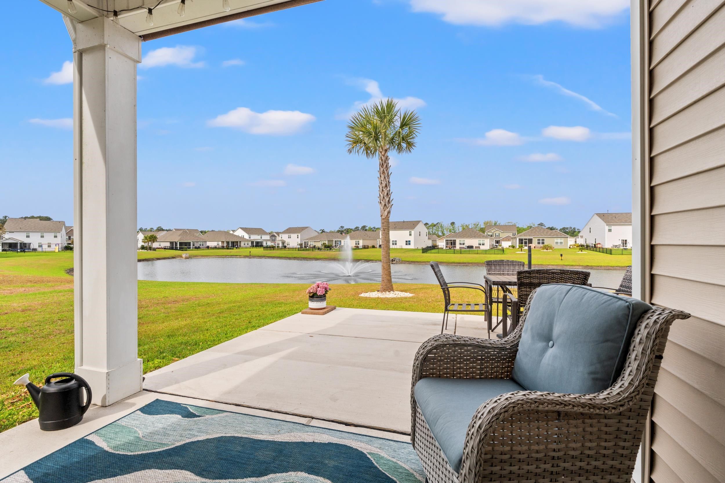 This beautiful Cali floor plan is a desirable layout that is one of the best sellers. You'll fall in love with this floor plan in this sought-after natural gas community. This home features an open concept living room and kitchen that are great for entertaining. You will be able to visualize yourself hosting an event from this kitchen featuring stainless steel appliances, including a gas range with a custom stove hood and exterior vent. This home features 9'ceilings, 36" painted cabinets, a tankless water heater, granite countertops, tile backsplash in the kitchen, laminate wood floors flowing throughout the main living space, extended concrete patio overlooking the pond. The garage has been finished, painted and has a polysporic floor. There's a full house surge protector, an automatic sensor for HVAC, and a sprinkler system with a Rain Bird App and sensor.