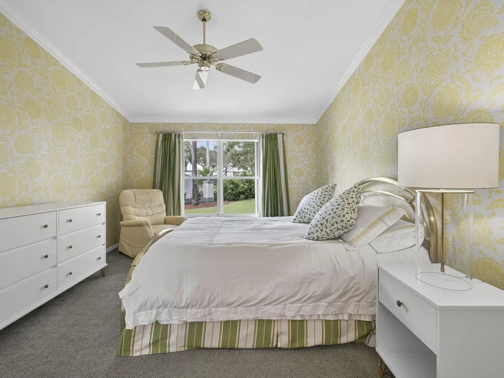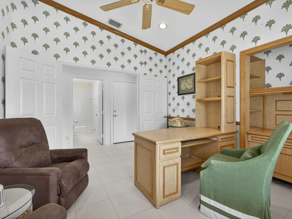 - Built-in Shelving, Cathedral Ceiling(s), Entry Level Living Area, Pantry, Split Bedrooms, Walk-In Closet(s), Converted Bedroom, Home Office, Breakfast Area, Eat-in Kitchen, Blinds, Primary Downstairs, Storm Shutters