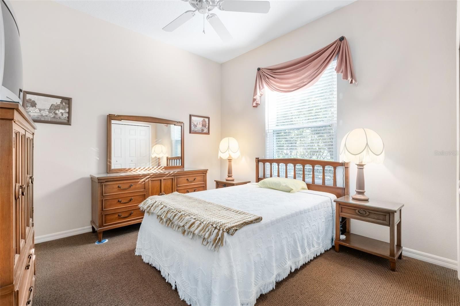 - Ceiling Fan(s), Eat-in Kitchen, High Ceilings, Kitchen/Family Room Combo, Main Level Primary, Thermostat, Walk-In Closet(s), Window Treatments