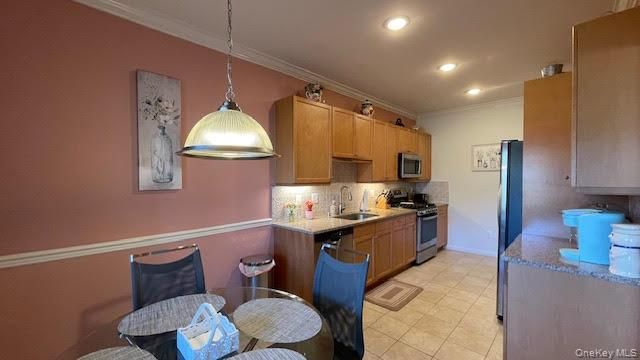 - Bedroom on Main Level, Crown Molding, Eat-in Kitchen, Entrance Foyer, Granite Counters, Primary Bathroom, Recessed Lighting, Storage, Walk-In Closet(s), Washer/Dryer Hookup
