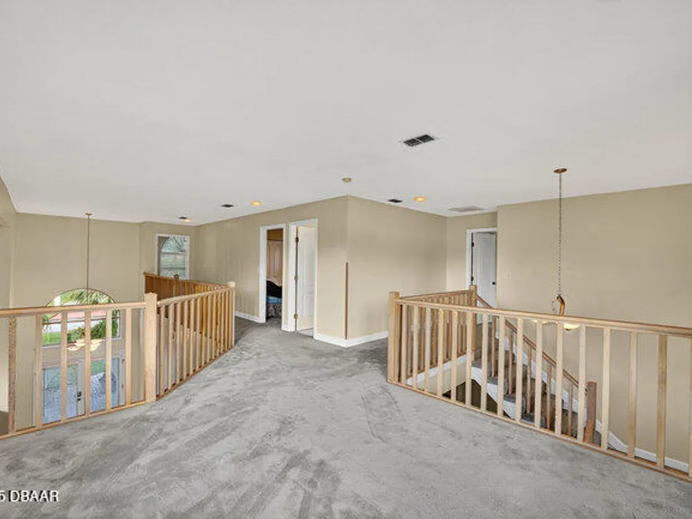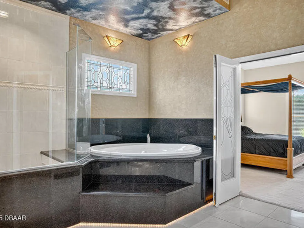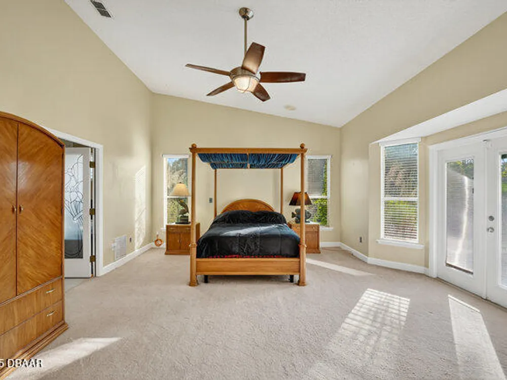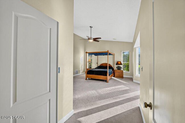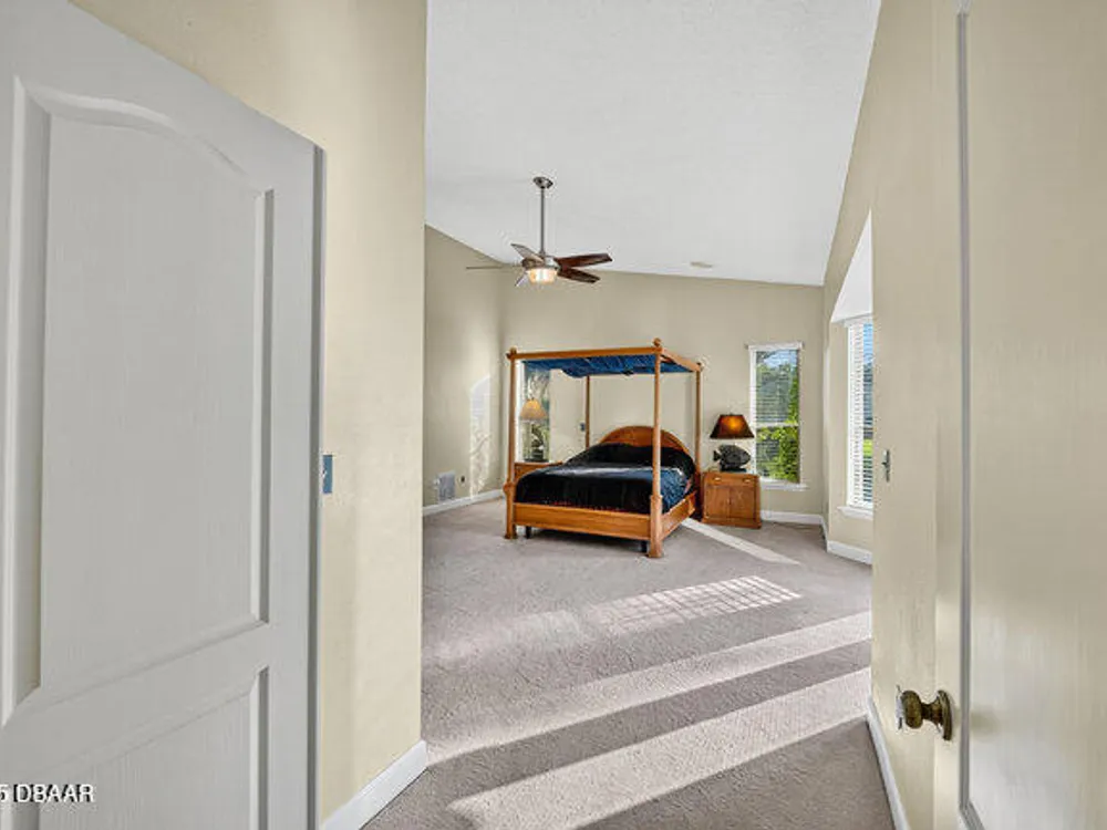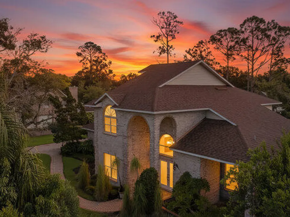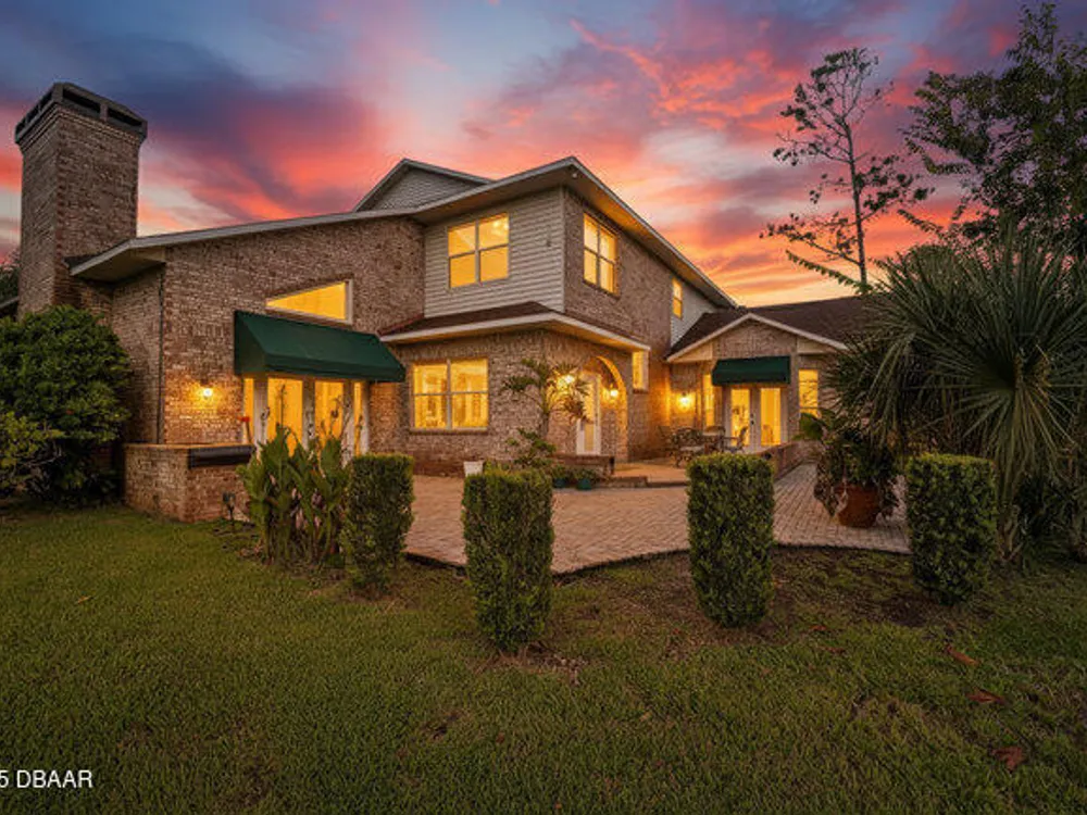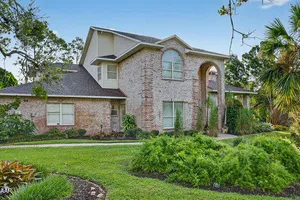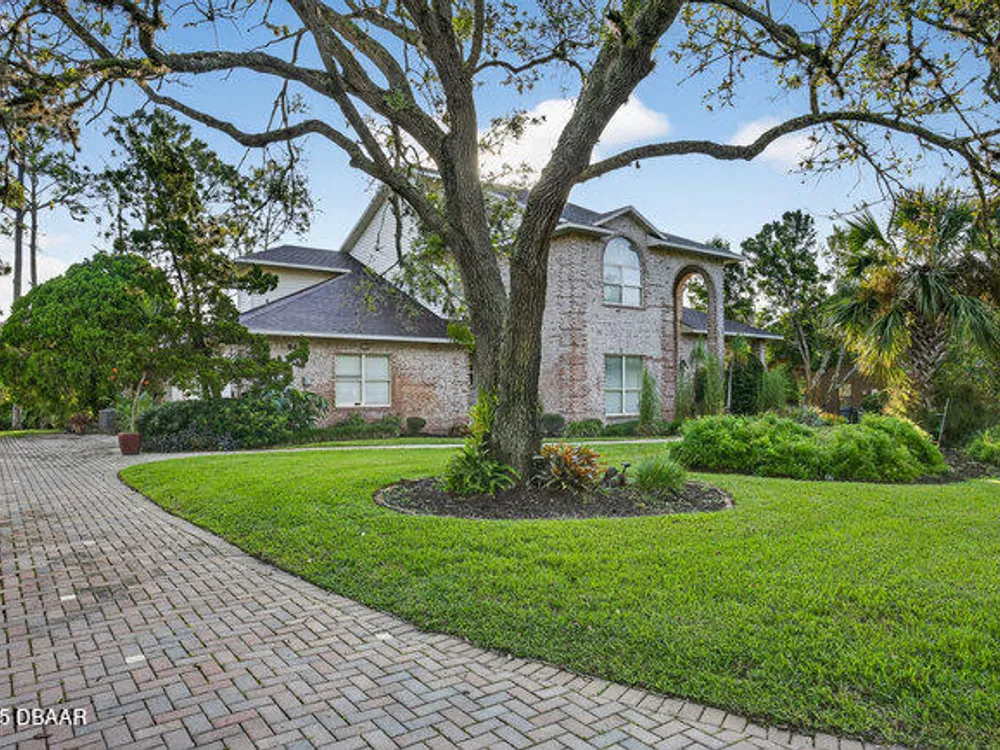 Experience the best of Ormond Beach living in the exclusive Breakaway Trails community, where privacy, security, and recreation come together. This stunning brick estate is designed with entertainers in mind, showcasing soaring ceilings, a spacious open layout, a sunken living room with a striking brick fireplace, and French doors that open to a peaceful patio overlooking the lake. The gourmet kitchen is ideal for any chef, offering granite countertops, a center island, walk-in pantry, and a welcoming breakfast nook perfect for casual meals or morning coffee. The main floor highlights a luxurious owner's suite featuring a walk-in tiled shower and dual sinks, along with a formal dining room and stylish half bath made for hosting. Upstairs, you'll find three generously sized bedrooms and a versatile loft that can serve as an office or family space. The oversized side-entry garage provides abundant storage and parking, and also includes a climate-controlled flex room perfect for hobbies or projects. All of this is set in a vibrant, amenity-rich community featuring 24-hour gated security, a resort-style pool, tennis courts, scenic parks, and a variety of social events all just minutes from the beach, dining, and top-rated schools.