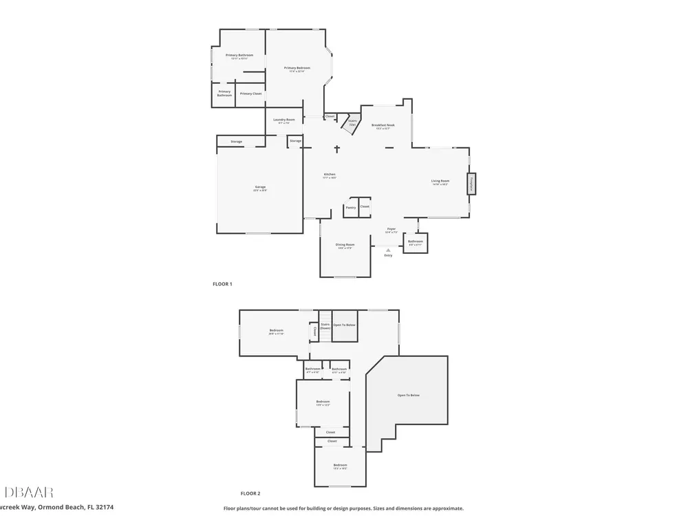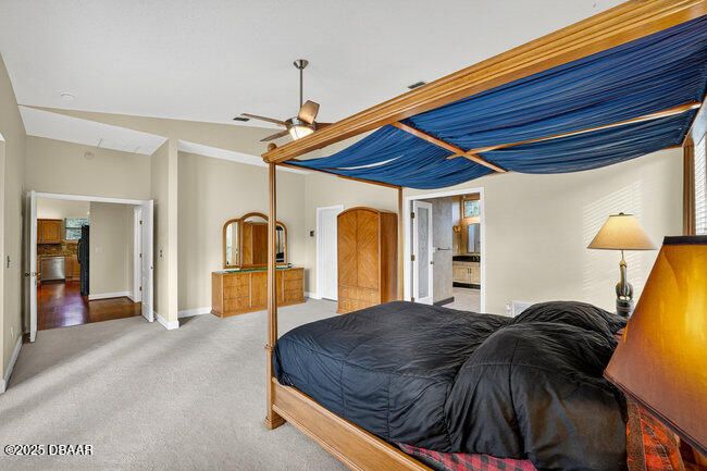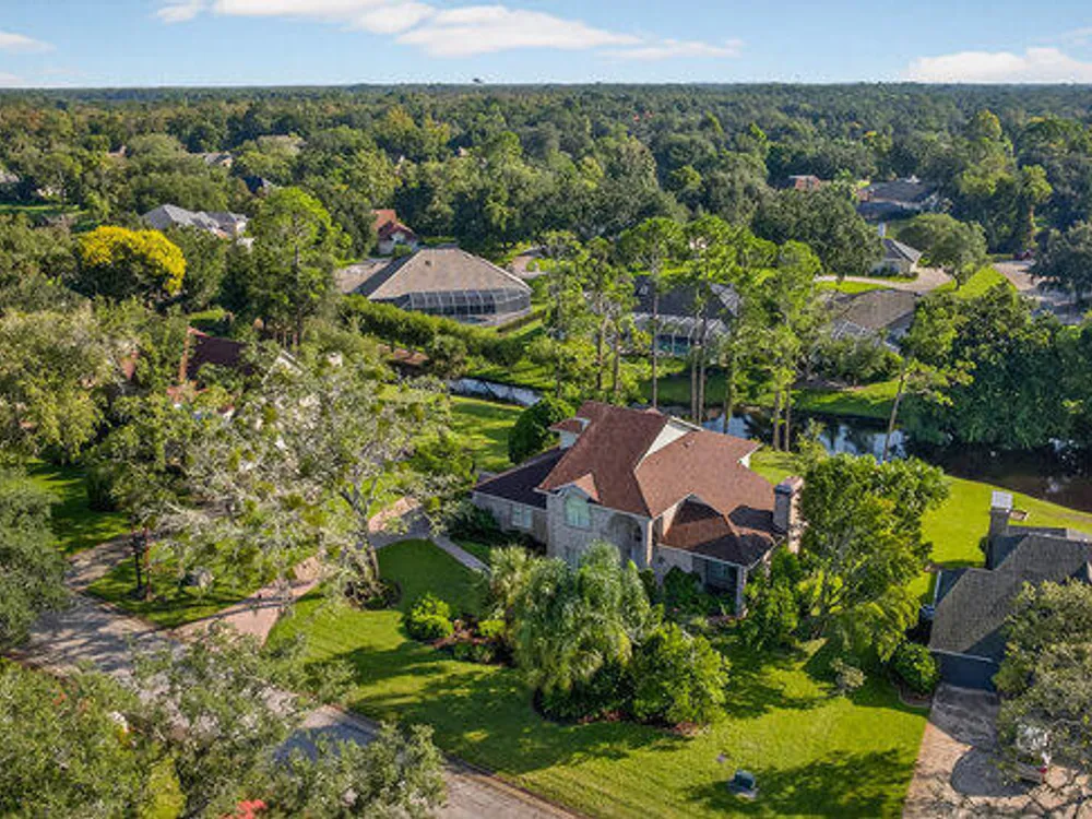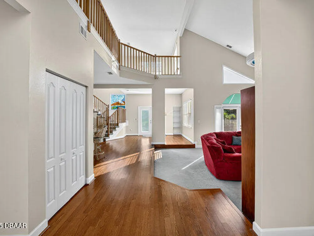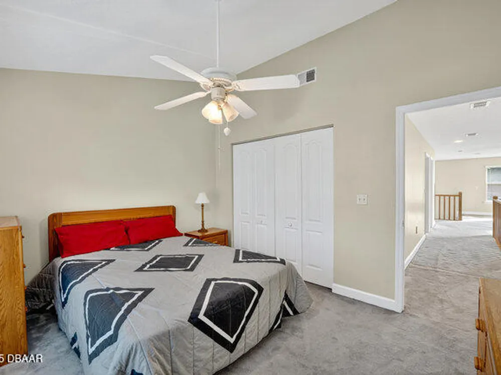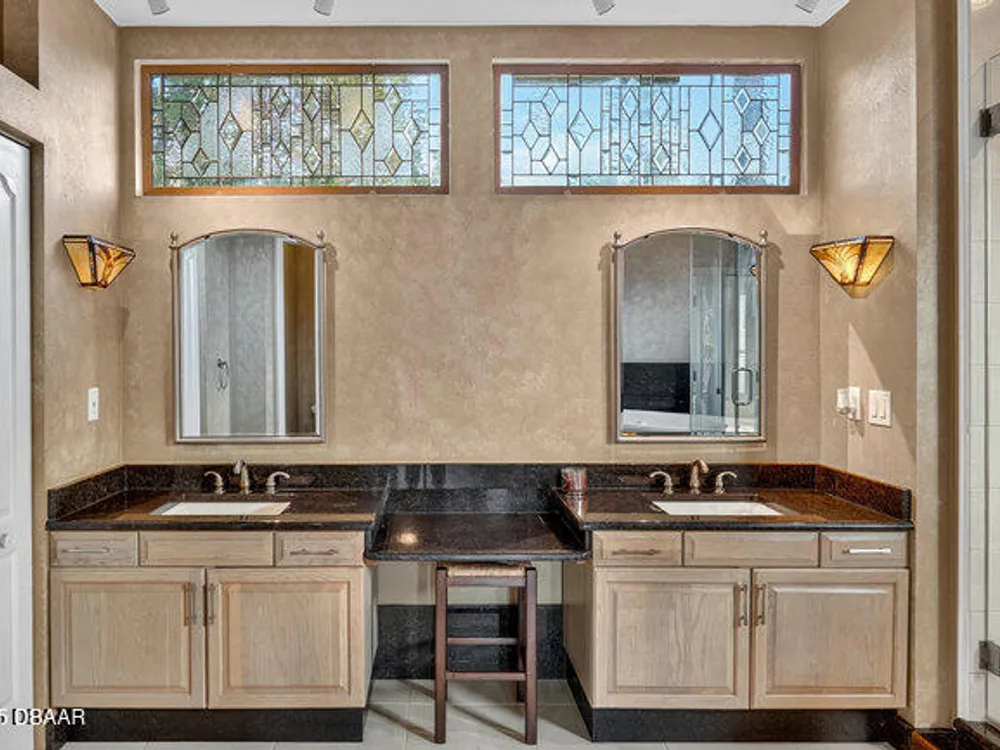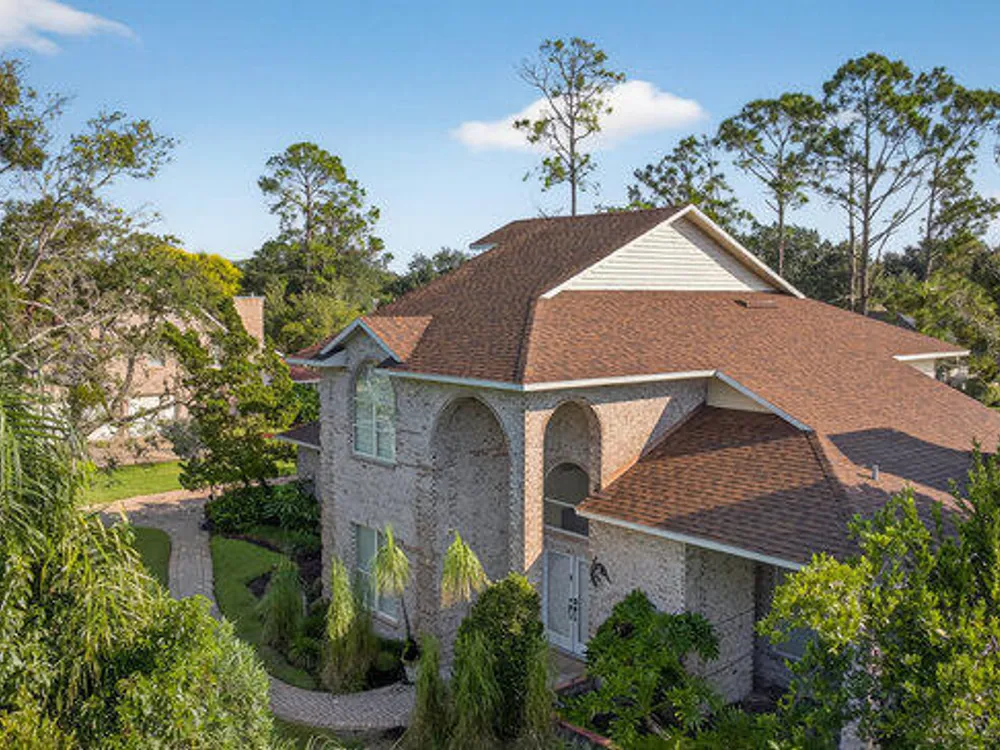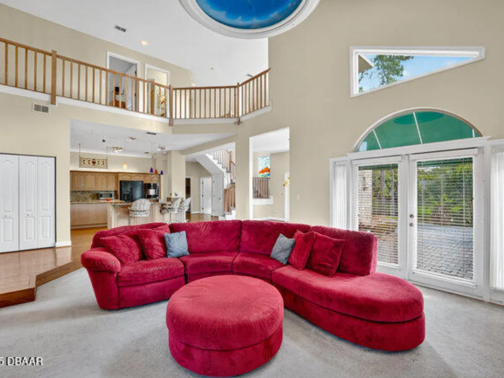 Experience the best of Ormond Beach living in the exclusive Breakaway Trails community, where privacy, security, and recreation come together. This stunning brick estate is designed with entertainers in mind, showcasing soaring ceilings, a spacious open layout, a sunken living room with a striking brick fireplace, and French doors that open to a peaceful patio overlooking the lake. The gourmet kitchen is ideal for any chef, offering granite countertops, a center island, walk-in pantry, and a welcoming breakfast nook perfect for casual meals or morning coffee. The main floor highlights a luxurious owner's suite featuring a walk-in tiled shower and dual sinks, along with a formal dining room and stylish half bath made for hosting. Upstairs, you'll find three generously sized bedrooms and a versatile loft that can serve as an office or family space. The oversized side-entry garage provides abundant storage and parking, and also includes a climate-controlled flex room perfect for hobbies or projects. All of this is set in a vibrant, amenity-rich community featuring 24-hour gated security, a resort-style pool, tennis courts, scenic parks, and a variety of social events all just minutes from the beach, dining, and top-rated schools.
