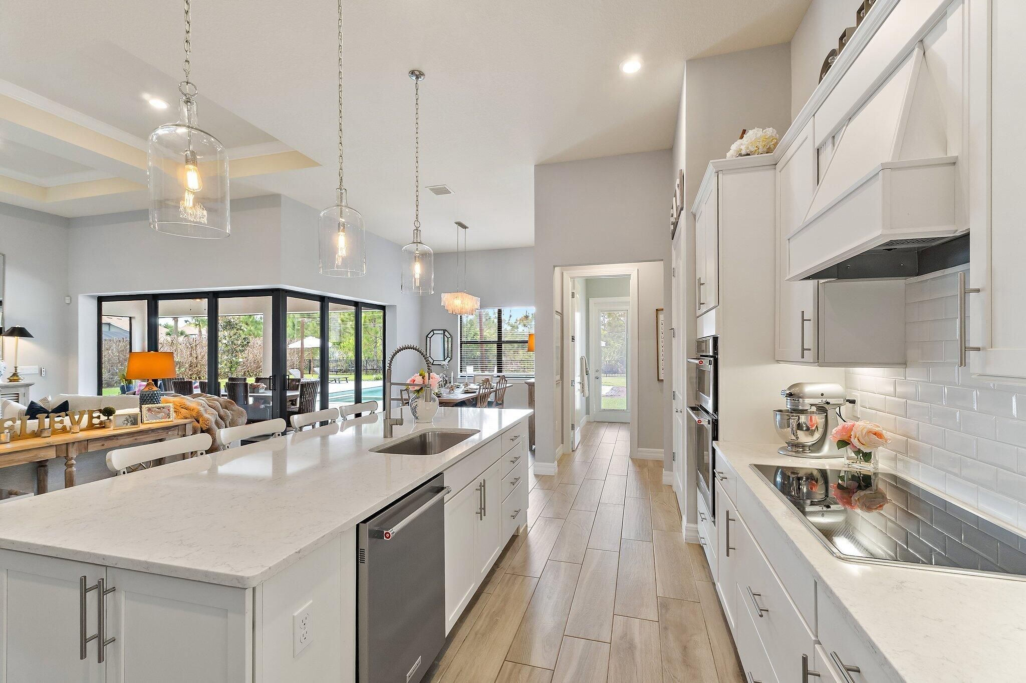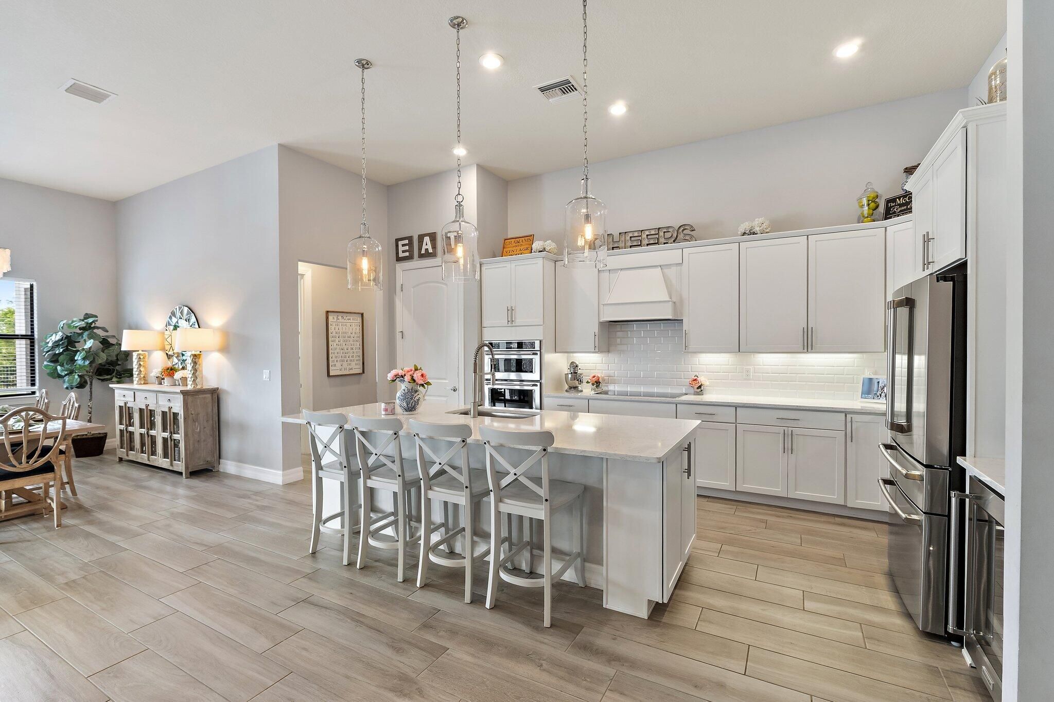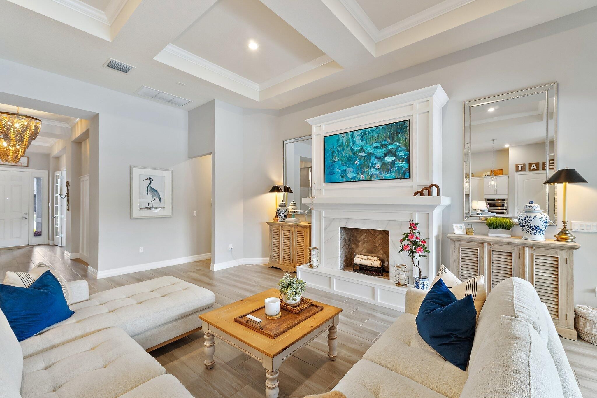 4 bed/3 bath + den preserve-view luxury on a rare .58-acre fully fenced homesite in Phase 4 of Copperleaf's exclusive private gated enclave with rear gate access. Solid CBS construction with impact windows and doors, dramatic zero-corner pocketing impact sliders that open fully to a resort-caliber outdoor retreat. Inside, the home continues to impress with a sophisticated open layout, coffered ceiling in great room, newly installed 12x60 wood-look tile flooring in the bedrooms, and a 2023 built-out electric fireplace that adds warmth and contemporary elegance. The kitchen is beautifully appointed with an upgraded beverage center, induction cooktop, and a new refrigerator (2025). The primary suite is elevated by a tray ceiling and dual walk-in closets, offering a luxurious retreat within the home. The oversized laundry room features a new washer and dryer (2025), and additional space to convert to a hobby room / storage space. Step outside to your own private sanctuary, where an oversized 16x33 pool, 7x7 spa, cabana bath, new salt cell system, and expansive lanai with motorized screens create the ultimate setting for refined relaxation and entertaining. Framed by serene preserve views, the outdoor space offers a rare combination of beauty, privacy, and functionality. Additional highlights include a freshly painted exterior (2025), full epoxy garage floor, and an extended roof warranty with 3 years remaining. Copperleaf is an upscale gated community in the heart of Palm City. With its resort style amenities, Fitness Center updated in 2025, Clubhouse Renovated 2025 with modern finishes, Library, Tennis/Pickleball courts, and a Basketball hoop. This community offers monthly activities such as Food Truck Nights, Game Nights, Community BBQ's, Visits from Easter Bunny, and Santa making this a wonderful community, fun for all ages. Located within an A-rated Martin County school district and offering easy access to I-95 and the Florida Turnpike. This remarkable home combines exclusivity, elegance, and convenience in one extraordinary package. **Landscaping around pool being revamped next week and will update photos**
