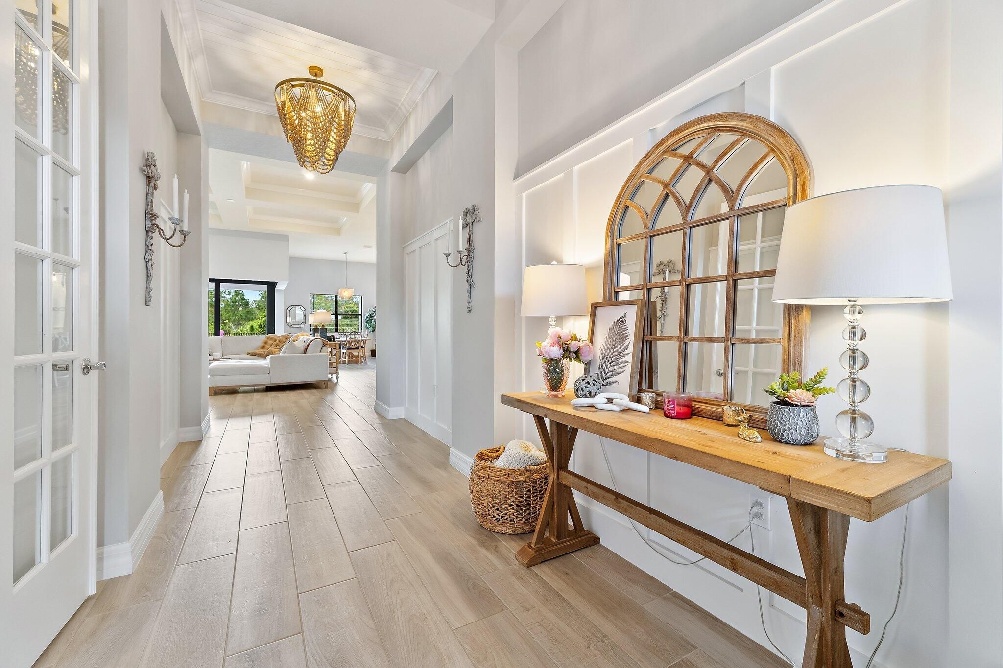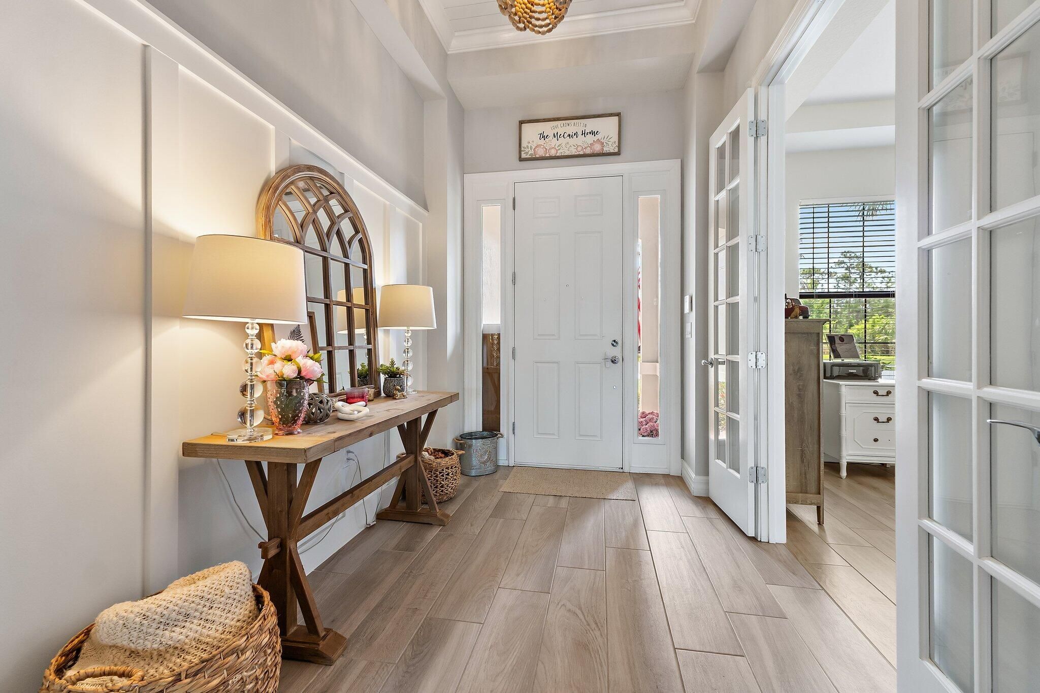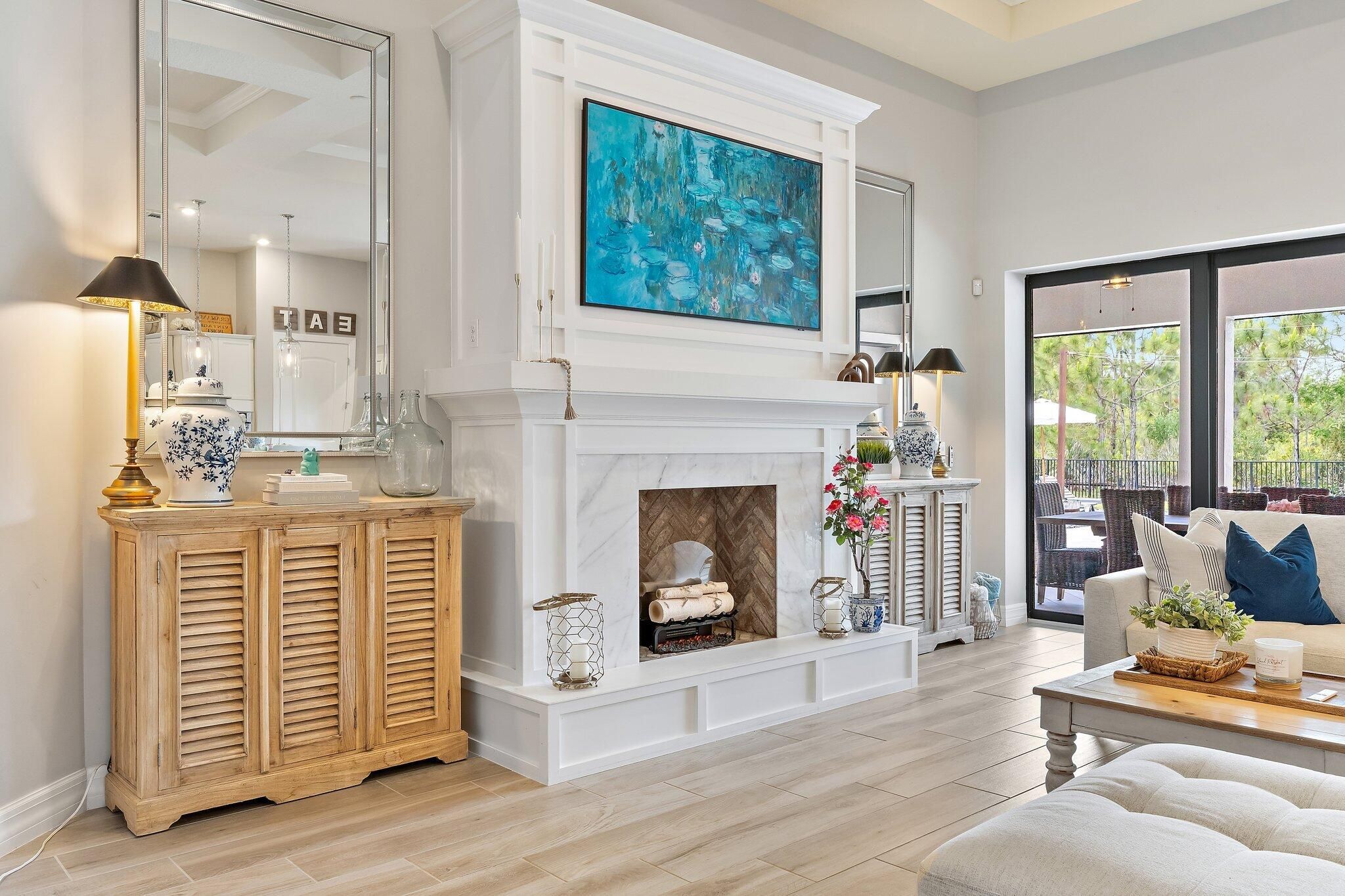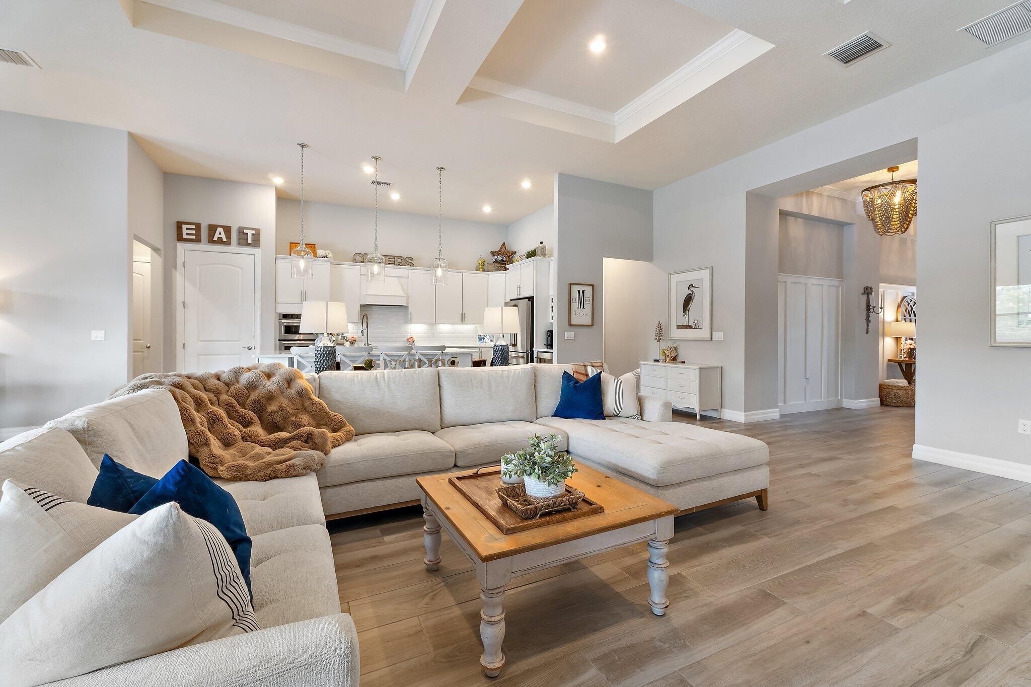 4 bed/3 bath + den preserve-view luxury on a rare .58-acre fully fenced homesite in Phase 4 of Copperleaf's exclusive private gated enclave with rear gate access. Solid CBS construction with impact windows and doors, dramatic zero-corner pocketing impact sliders that open fully to a resort-caliber outdoor retreat. Inside, the home continues to impress with a sophisticated open layout, coffered ceiling in great room, newly installed 12x60 wood-look tile flooring in the bedrooms, and a 2023 built-out electric fireplace that adds warmth and contemporary elegance. The kitchen is beautifully appointed with an upgraded beverage center, induction cooktop, and a new refrigerator (2025). The primary suite is elevated by a tray ceiling and dual walk-in closets, offering a luxurious retreat within the home. The oversized laundry room features a new washer and dryer (2025), and additional space to convert to a hobby room / storage space. Step outside to your own private sanctuary, where an oversized 16x33 pool, 7x7 spa, cabana bath, new salt cell system, and expansive lanai with motorized screens create the ultimate setting for refined relaxation and entertaining. Framed by serene preserve views, the outdoor space offers a rare combination of beauty, privacy, and functionality. Additional highlights include a freshly painted exterior (2025), full epoxy garage floor, and an extended roof warranty with 3 years remaining. Copperleaf is an upscale gated community in the heart of Palm City. With its resort style amenities, Fitness Center updated in 2025, Clubhouse Renovated 2025 with modern finishes, Library, Tennis/Pickleball courts, and a Basketball hoop. This community offers monthly activities such as Food Truck Nights, Game Nights, Community BBQ's, Visits from Easter Bunny, and Santa making this a wonderful community, fun for all ages. Located within an A-rated Martin County school district and offering easy access to I-95 and the Florida Turnpike. This remarkable home combines exclusivity, elegance, and convenience in one extraordinary package. **Landscaping around pool being revamped next week and will update photos**