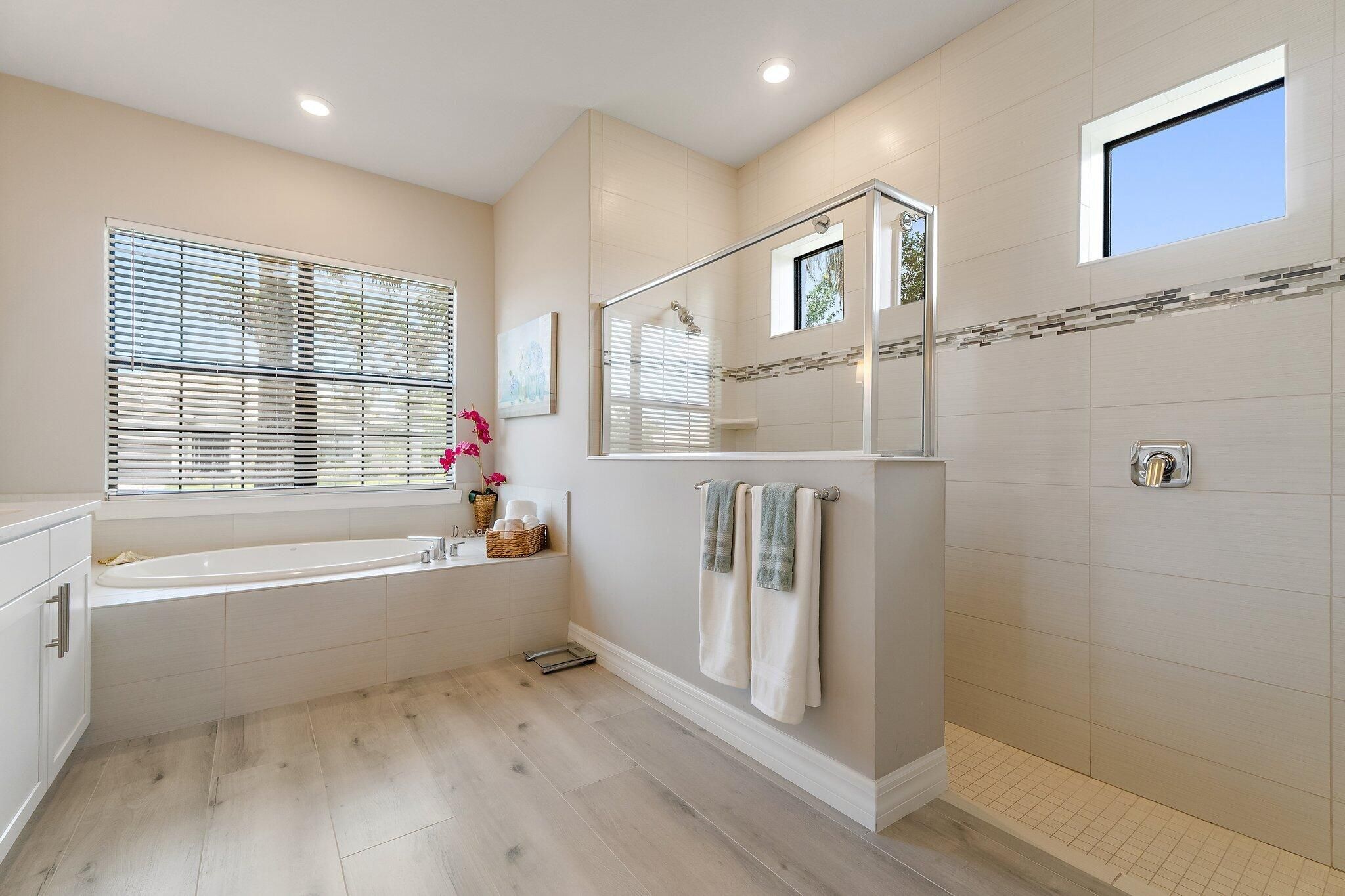 - Built-in Features, Entrance Foyer, High Ceilings, Kitchen Island, Pantry, Vaulted Ceiling(s), Walk-In Closet(s), Split Bedrooms, Garden Tub/Roman Tub, Cabana Bath, Storage, Impact Glass, Family/Dining Room, Entry Level Living Area, Dual Sinks, Main Level Primary, Separate Shower, Soaking Tub