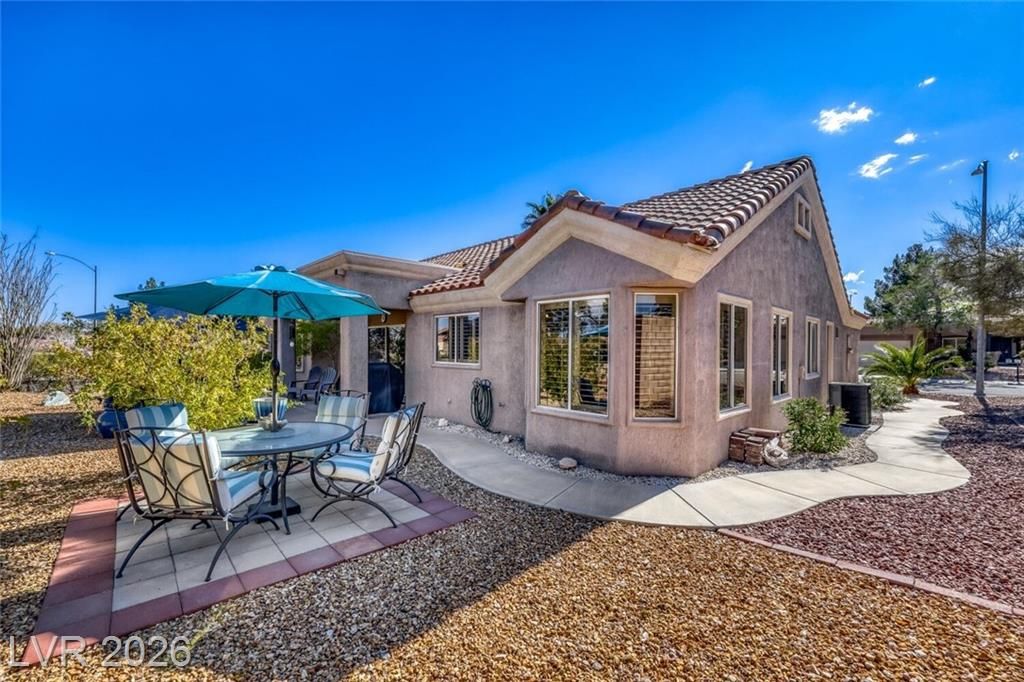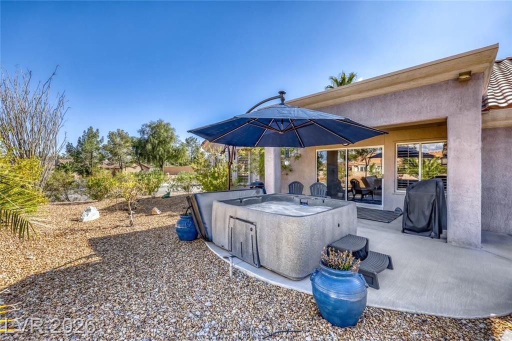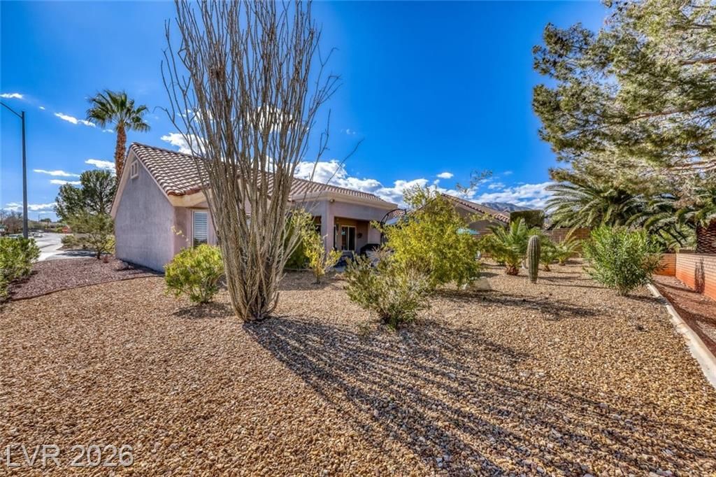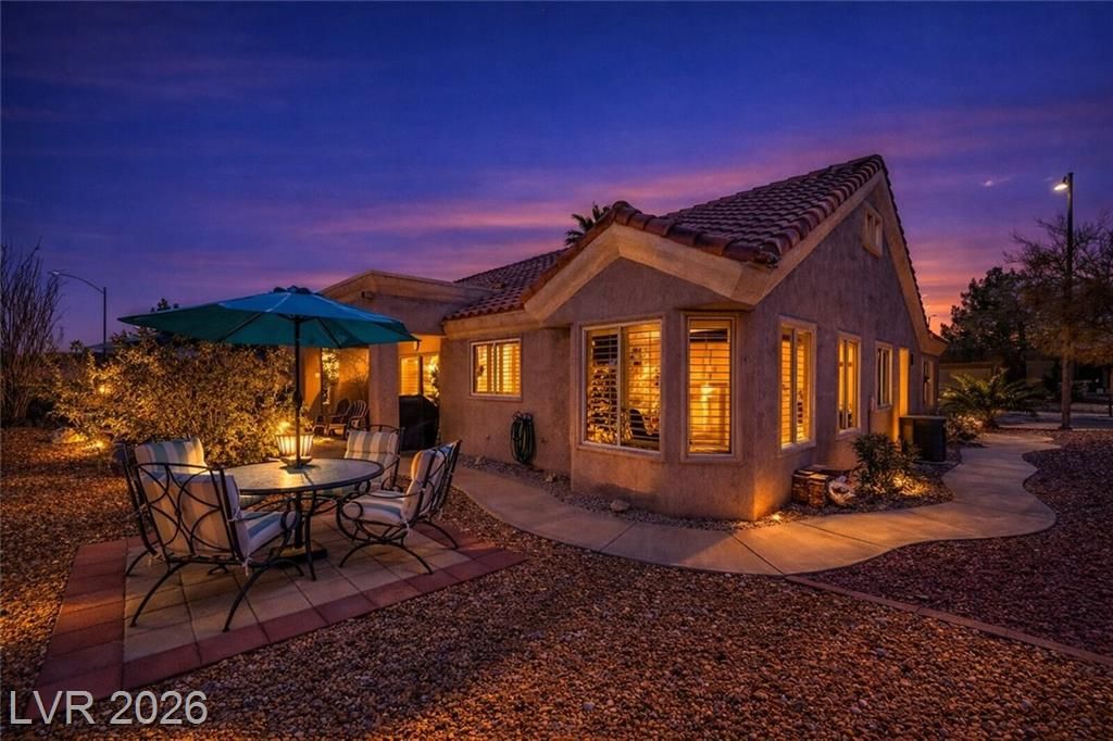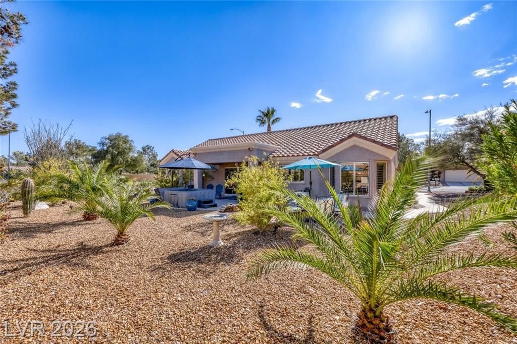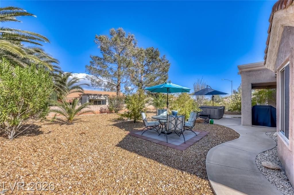 GORGEOUS SINGLE STORY HOME LOCATED ON A CORNER LOT IN THE PRESTIGIOUS SUN CITY SUMMERLIN COMMUNITY. LIVING ROOM FILLED WITH NATURAL LIGHT WITH THE DINING ROOM JUST OFF THE LIVING AREA. THE KITCHEN FEATURES A GARDEN WINDOW, GRANITE COUNTERTOPS, DINING NOOK & LOW-MAINTENANCE TILE FLOORING. THE PRIMARY SUITE INCLUDES A CEILING FAN, PLUSH CARPET & WALK-IN CLOSET. THE PRIMARY BATHROOM OFFERS A MAKEUP VANITY & WALK-IN SHOWER. ADDITIONAL UPGRADES: ALL NEW BATHROOM COUNTERTOPS WITH TILE BACKSPLASH, TOILETS, SINKS & FAUCETS, IRRIGATION SYSTEM & LANDSCAPING WITH FRUIT TREES, WATER HEATER & SOFTENER, EXTERIOR & INTERIOR PAINT, LIGHT FIXTURES, DECORA PLUGS & SWITCHES, PLANTATION SHUTTERS & REMODELED KITCHEN LIGHTING. LARGE BACKYARD FEATURES A SPA, COVERED PATIO & LOW-MAINTENANCE LANDSCAPING. 2 CAR GARAGE WITH BUILT-IN CABINETS, CEILING STORAGE & 220 OUTLET. RESORT-STYLE COMMUNITY AMENITIES: POOL, SPA, TENNIS, FITNESS CENTER, GOLF & CLUBHOUSE. LOCATED NEAR SHOPPING, DINING, ENTERTAINMENT & FREEWAY