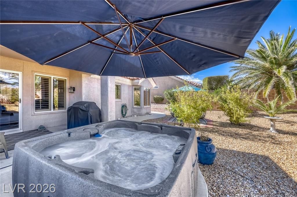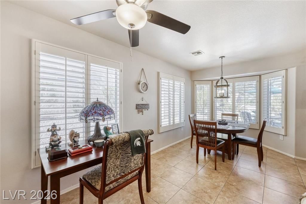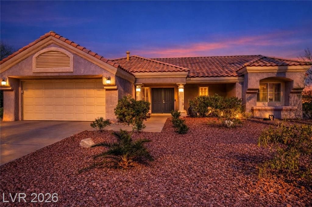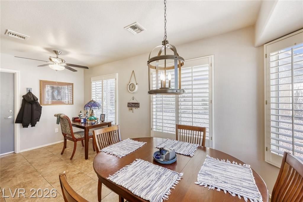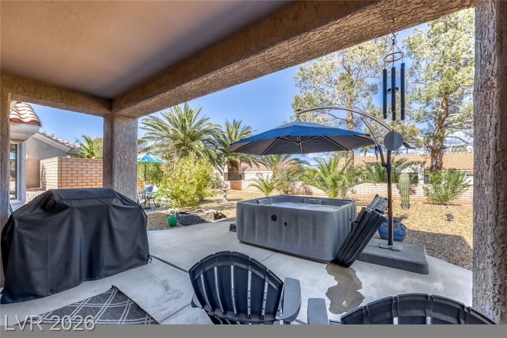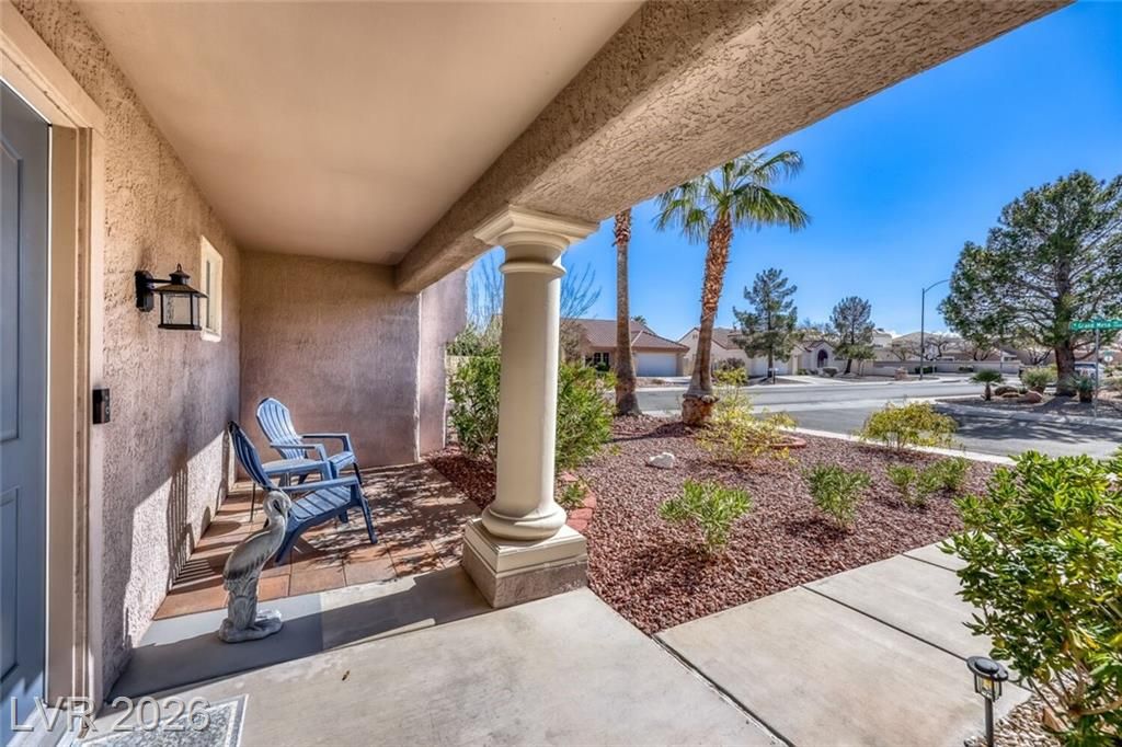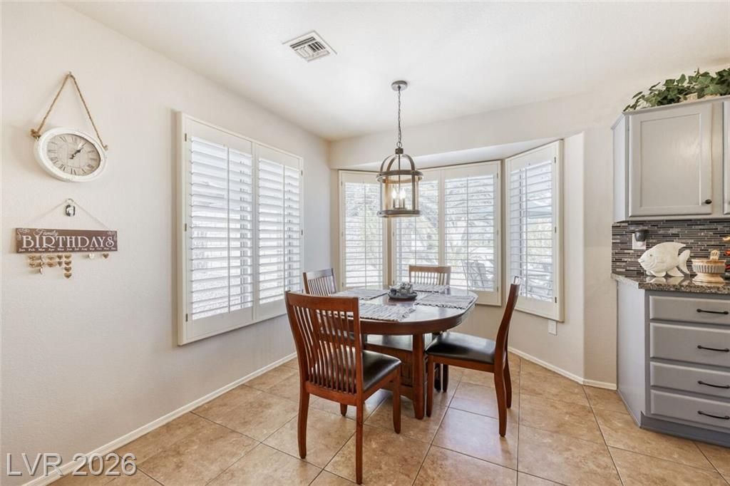 GORGEOUS SINGLE STORY HOME LOCATED ON A CORNER LOT IN THE PRESTIGIOUS SUN CITY SUMMERLIN COMMUNITY. LIVING ROOM FILLED WITH NATURAL LIGHT WITH THE DINING ROOM JUST OFF THE LIVING AREA. THE KITCHEN FEATURES A GARDEN WINDOW, GRANITE COUNTERTOPS, DINING NOOK & LOW-MAINTENANCE TILE FLOORING. THE PRIMARY SUITE INCLUDES A CEILING FAN, PLUSH CARPET & WALK-IN CLOSET. THE PRIMARY BATHROOM OFFERS A MAKEUP VANITY & WALK-IN SHOWER. ADDITIONAL UPGRADES: ALL NEW BATHROOM COUNTERTOPS WITH TILE BACKSPLASH, TOILETS, SINKS & FAUCETS, IRRIGATION SYSTEM & LANDSCAPING WITH FRUIT TREES, WATER HEATER & SOFTENER, EXTERIOR & INTERIOR PAINT, LIGHT FIXTURES, DECORA PLUGS & SWITCHES, PLANTATION SHUTTERS & REMODELED KITCHEN LIGHTING. LARGE BACKYARD FEATURES A SPA, COVERED PATIO & LOW-MAINTENANCE LANDSCAPING. 2 CAR GARAGE WITH BUILT-IN CABINETS, CEILING STORAGE & 220 OUTLET. RESORT-STYLE COMMUNITY AMENITIES: POOL, SPA, TENNIS, FITNESS CENTER, GOLF & CLUBHOUSE. LOCATED NEAR SHOPPING, DINING, ENTERTAINMENT & FREEWAY