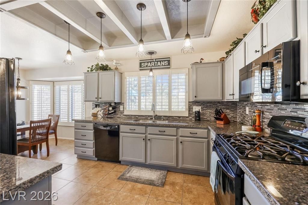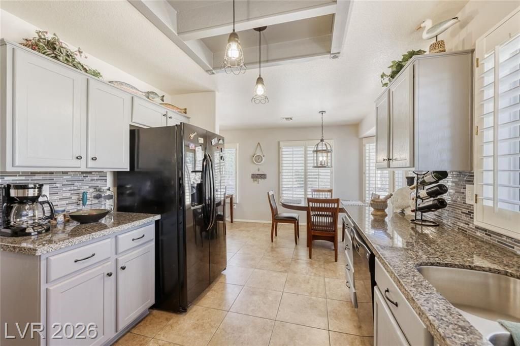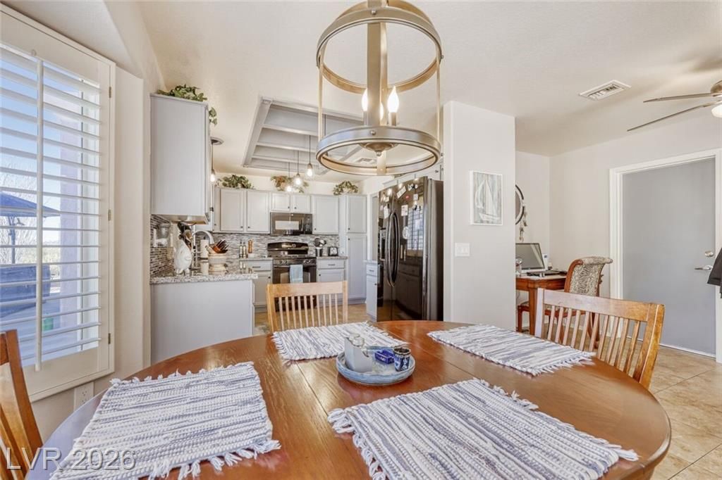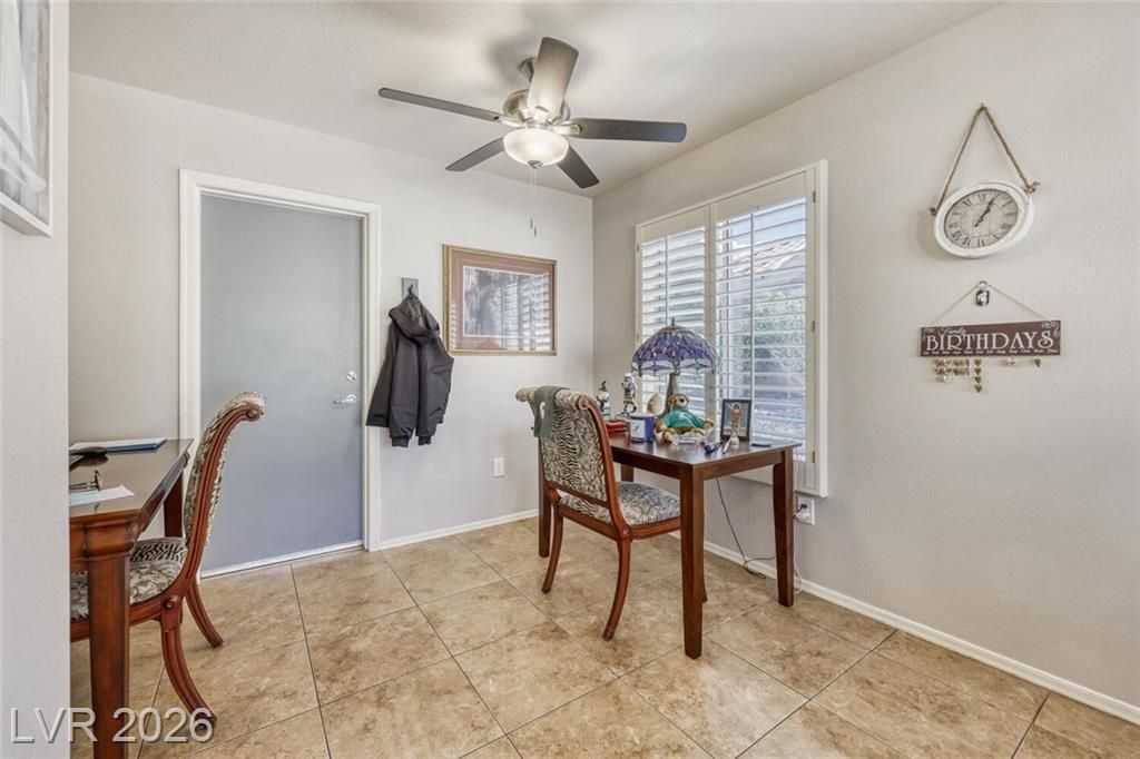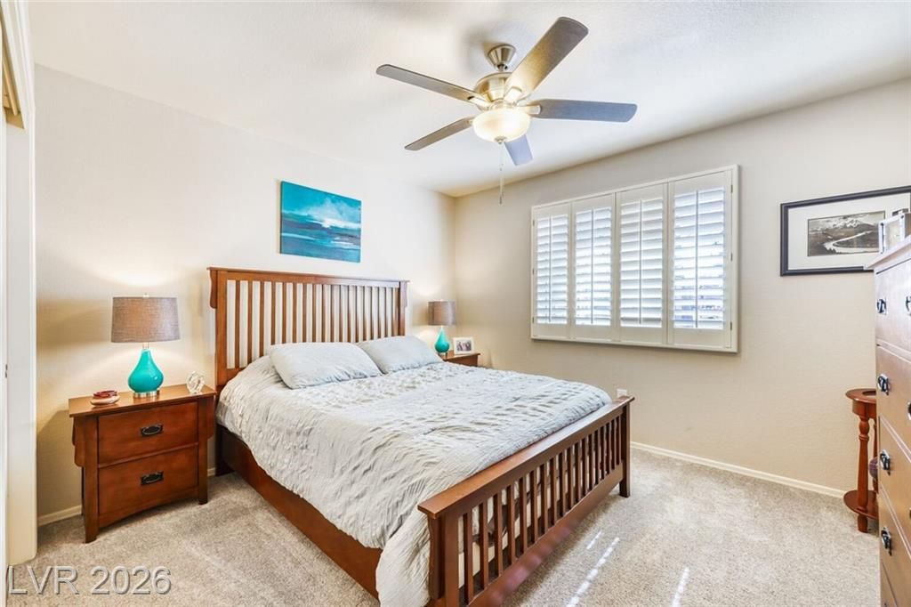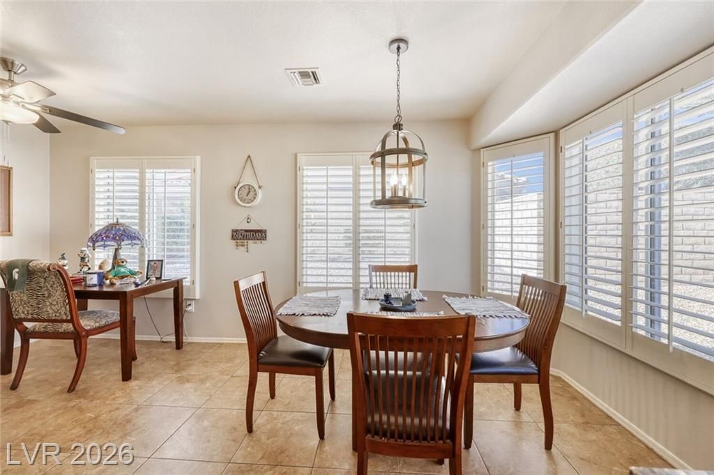 GORGEOUS SINGLE STORY HOME LOCATED ON A CORNER LOT IN THE PRESTIGIOUS SUN CITY SUMMERLIN COMMUNITY. LIVING ROOM FILLED WITH NATURAL LIGHT WITH THE DINING ROOM JUST OFF THE LIVING AREA. THE KITCHEN FEATURES A GARDEN WINDOW, GRANITE COUNTERTOPS, DINING NOOK & LOW-MAINTENANCE TILE FLOORING. THE PRIMARY SUITE INCLUDES A CEILING FAN, PLUSH CARPET & WALK-IN CLOSET. THE PRIMARY BATHROOM OFFERS A MAKEUP VANITY & WALK-IN SHOWER. ADDITIONAL UPGRADES: ALL NEW BATHROOM COUNTERTOPS WITH TILE BACKSPLASH, TOILETS, SINKS & FAUCETS, IRRIGATION SYSTEM & LANDSCAPING WITH FRUIT TREES, WATER HEATER & SOFTENER, EXTERIOR & INTERIOR PAINT, LIGHT FIXTURES, DECORA PLUGS & SWITCHES, PLANTATION SHUTTERS & REMODELED KITCHEN LIGHTING. LARGE BACKYARD FEATURES A SPA, COVERED PATIO & LOW-MAINTENANCE LANDSCAPING. 2 CAR GARAGE WITH BUILT-IN CABINETS, CEILING STORAGE & 220 OUTLET. RESORT-STYLE COMMUNITY AMENITIES: POOL, SPA, TENNIS, FITNESS CENTER, GOLF & CLUBHOUSE. LOCATED NEAR SHOPPING, DINING, ENTERTAINMENT & FREEWAY