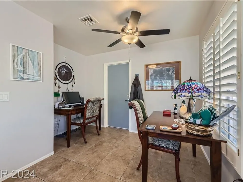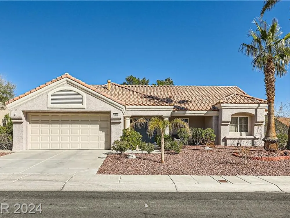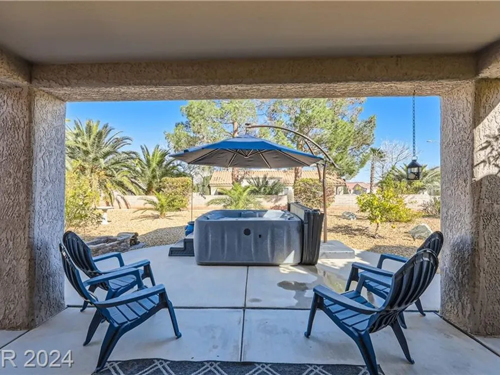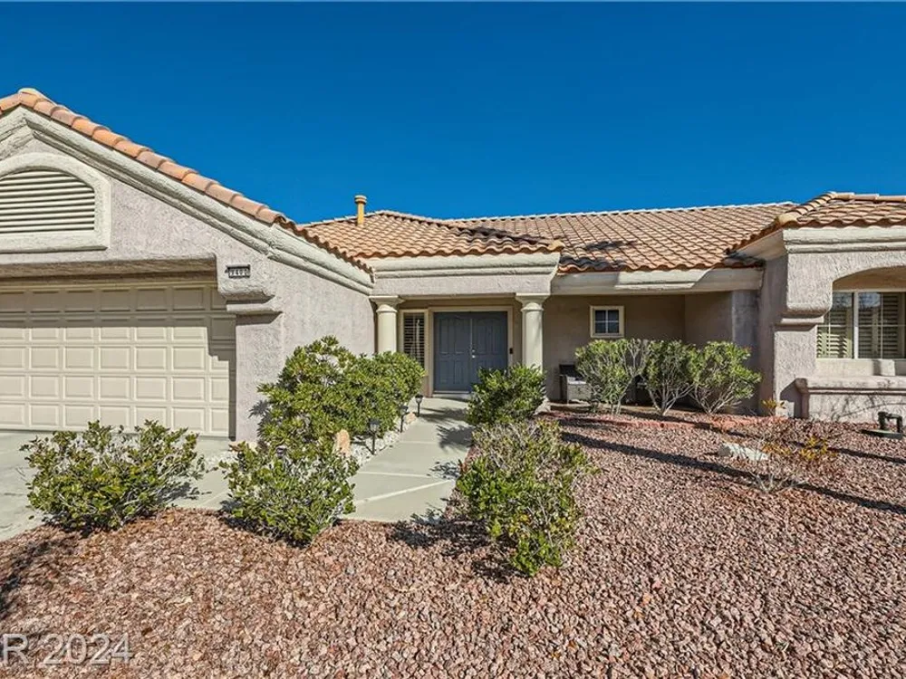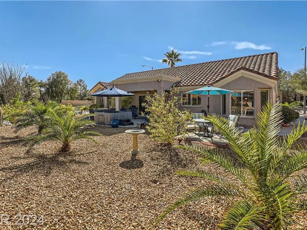 Price reduction!No detail has been overlooked in creating this exquisite residence. In a premier golf course community, this home is a testament to the marriage of elegance and functionality. Nestled in the heart of Sun City Summerlin this is not just a home but a lifestyle. Prime location sets the stage for an idyllic living experience, combining tranquility with the convenience of being part of a vibrant and exclusive neighborhood. This two bedroom has been highly upgraded! Granite counter tops, new 10,000 hot tub included, newcountertops in bathrooms w/ tile backsplash. New toilets, sinks and faucets. New irrigation system/landscaping w/fruit trees. New water heater/softener. New exterior/interior paint. New light fixtures/decora plugs/switches. Plantation shutters. Remodeled kitchen lights. Ceiling fans. Sealed 2 car garage holds a golf cart with 220 outlet that also is run to jacuzzi costing $3000. Large corner lot! Great location! FURNTURE INCLUDED! Patio furniture also included!