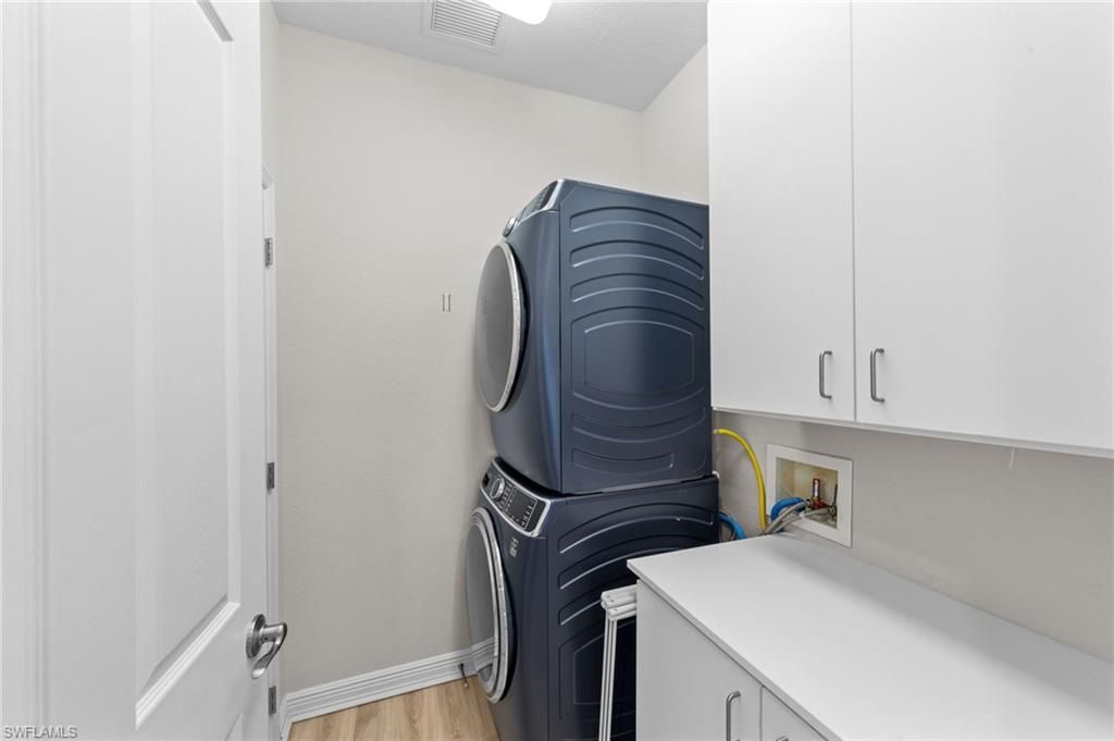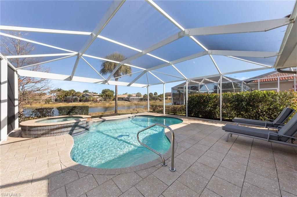 Welcome to this beautifully updated 3-bedroom, 2-bath saltwater pool home, ideally situated on a private lakefront lot in the highly sought-after, gated community of The Reserve at Estero. Offering tranquil water views and enhanced privacy, this residence delivers the perfect blend of luxury, comfort, and Florida lifestyle living.Designed for relaxation and entertaining, the home features a heated saltwater pool and spa overlooking the lake, with functions that can be controlled remotely via a phone app. Inside, enjoy luxury vinyl plank flooring throughout, quartz countertops, stainless steel appliances, designer finishes, and a thoughtfully designed open layout. The primary suite is a true retreat with a custom walk-in closet and en-suite bath featuring a walk-in shower and dual his-and-hers vanities. Impact windows and doors provide storm protection, and the two-car garage adds everyday convenience.A rare highlight is natural gas service provided by TECO Gas, powering the range, outdoor grill, hot water heater, pool heater, and a portable generator capable of powering the entire home and pool equipment.Major systems have been updated, including HVAC (2023), hot water heater (2021), pool heater (2022), pool pump (2025), pool salt cell (2025), and a Kinetico water filtration system (2020).Residents enjoy resort-style amenities including a pool and spa, clubhouse, fitness center, tennis and pickleball courts, and an active community lifestyle. Conveniently located near premier shopping and dining at Coconut Point, Miromar Outlets, and Gulf Coast Town Center, with Naples’ Mercato, Waterside Shops, and Fifth Avenue South just a short drive away. Close to RSW International Airport and Southwest Florida’s renowned beaches. (NO FLOOD INSURANCE REQUIRED)