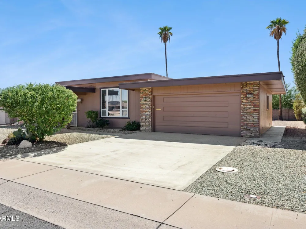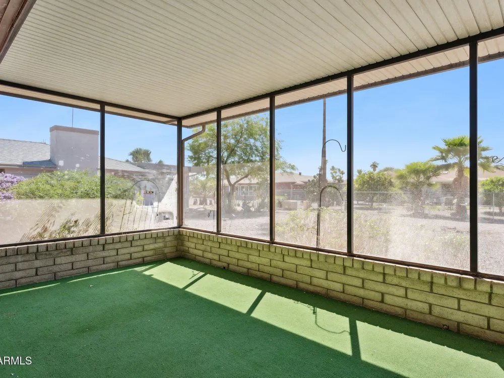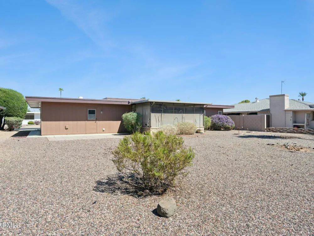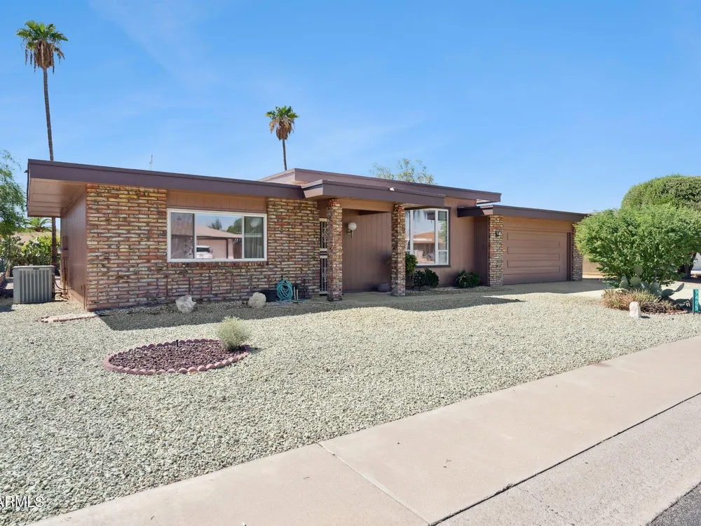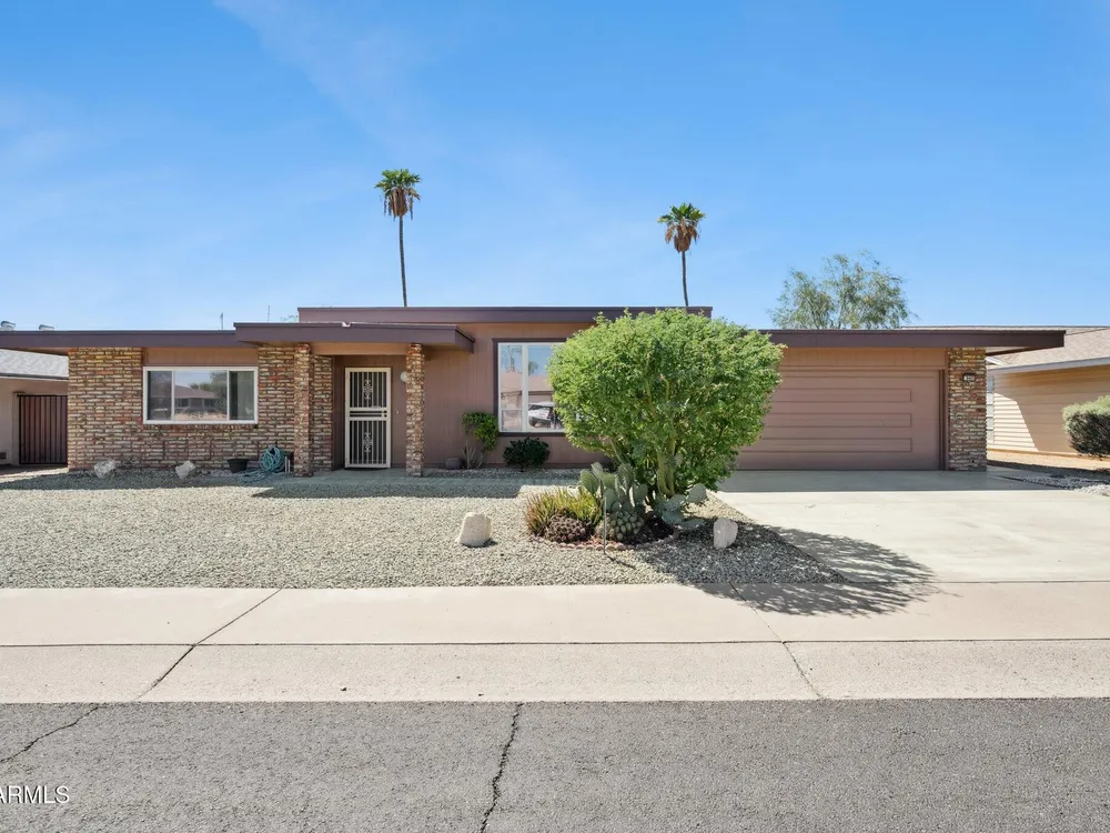 Welcome to this beautifully updated home in the sought after Sun City active adult community. This 2 bedroom, 1 bathroom residence features fresh new carpet and interior/exterior paint, along with upgraded Anderson windows for energy efficiency and comfort. The oversized 2 car garage offers ample space plus built-in storage cabinets. Enjoy Arizona living year-round in the screened-in Arizona room, overlooking the spacious yard, perfect for relaxing or entertaining. As part of Sun City, you'll have access to multiple community centers, social clubs, pools, restaurants, and world-class golf courses, all designed for an active and vibrant lifestyle.