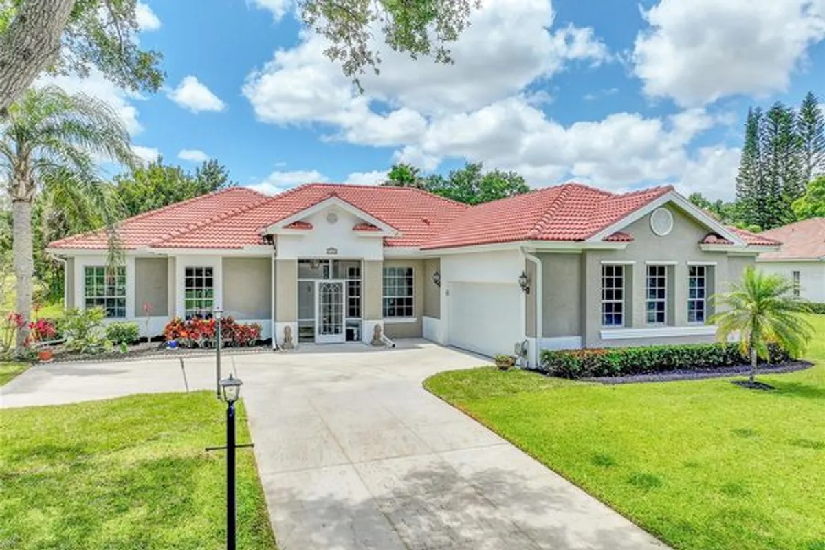 Beautiful home situated on a serene canal front estate lot in Meadowood Golf & Tennis Club Community. From the moment you step inside, the expansive 12-foot ceilings and abundance of windows, highlights the stunning backyard space. This solid block construction home features 2030 square feet with three bedrooms two full bathrooms, an office or den, and additional dining area. You will appreciate the abundance of natural light illuminating the entire home. Split floor plan featuring a spacious primary bedroom with two walk-in closets and a private bath for added privacy. Over $70K in upgrades for your convenience include Italian porcelain tile throughout, new light fixtures, fingerprint-resistant stainless-steel appliances, two new air conditioning units installed in 2022, electric shades, a new garage door and gutters, and a pool converted to saltwater. Roof 2014. Within this serene and private community your new sanctuary awaits. Savor your morning coffee or unwind in the evening embraced by the nature's beauty. If you choose you can join the MWGTC for more adventure. If you enjoy golfing, going on walks or bike rides, you will not be disappointed. Make this hidden treasure yours. Owners are licensed Florida realtors. Furnishings are negotiable. Call today for your own private showing.