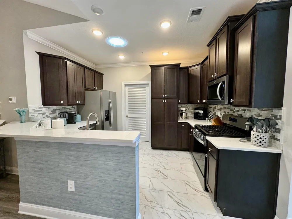 WOW! This condo has it all! A very unique location with no one above or below you! Only 3 years old, brand NEW LVP flooring throughout with tile in bathrooms and laundry room. The screened in deck backs to wetlands offering extreme privacy. Boasting 14' cathedral ceiling in the living area and a tray ceiling in owners suite. This beautiful condo has many unique touches such as a Craftsman Style Entryway, wall lighting, custom backsplash with upgraded Quartz Counters. Stainless Steel Appliances with Natural Gas cooking, heat and dryer. Tankless Hot Water Heater. Luxury Owners Bath with Glass Surround, Walk In Closet and Large Linen Closet. Solar tube brings natural light into the kitchen. Access to Screened In Deck from both the Living Room and Owners Suite. Another added bonus is the 10x10 conditioned storage Room around back. This one won't last long!